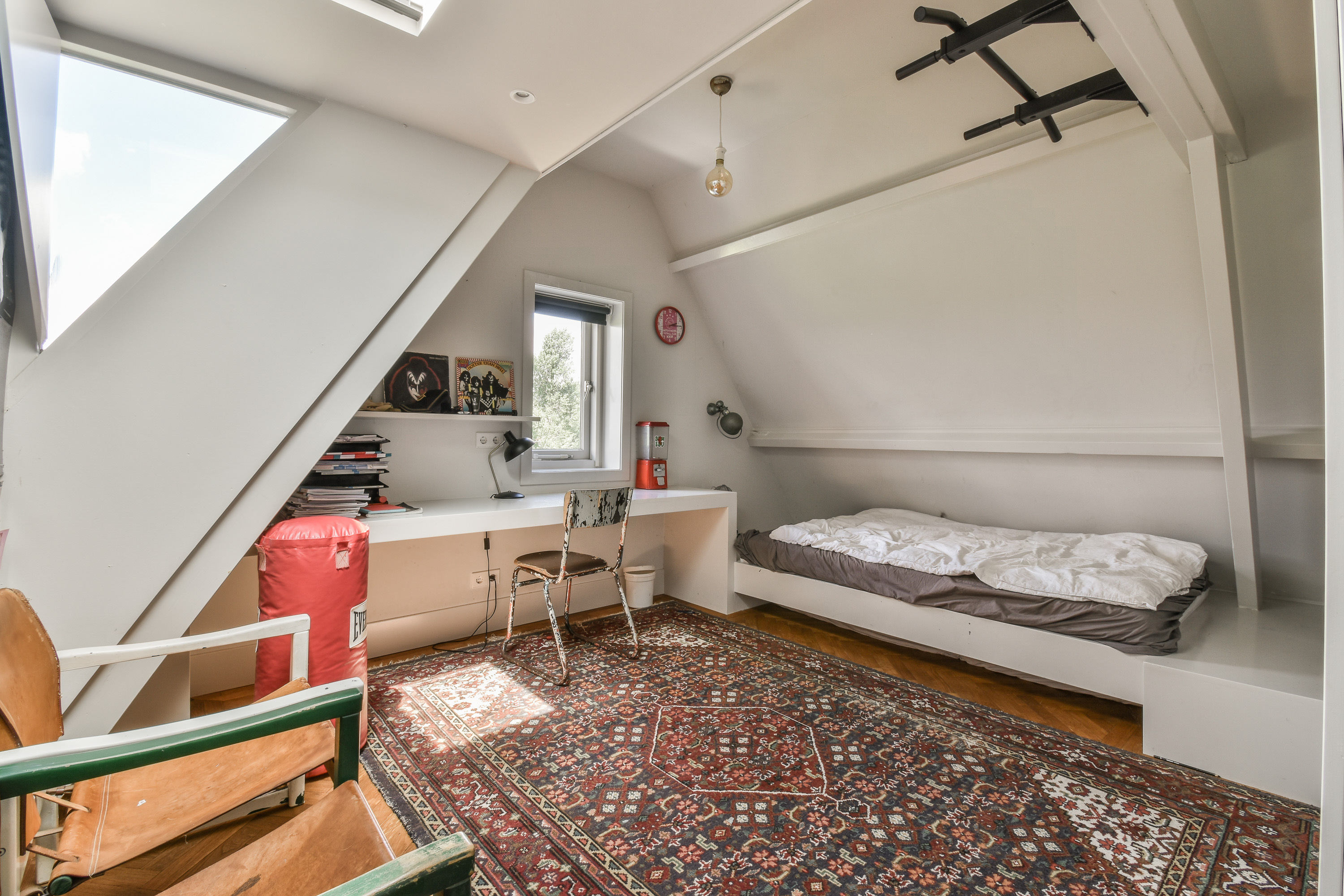 Het souterrain vormt een verrassend royale leefruimte met diverse gebruiksmogelijkheden. Hier bevindt zich een grote woon-/leefruimte die momenteel in gebruik is als speel- en tv-kamer, perfect voor gezinnen of ontspanning. Aansluitend is er een zeer ruime studio met eigen badkamer – ideaal als gastenverblijf, au-pairruimte of zelfstandige werkplek. Daarnaast beschikt het souterrain over een aparte wasruimte, een praktische berging en een fijne werkhoek, direct verbonden aan de speel-/woonruimte. Een verdieping met veel comfort en flexibiliteit.