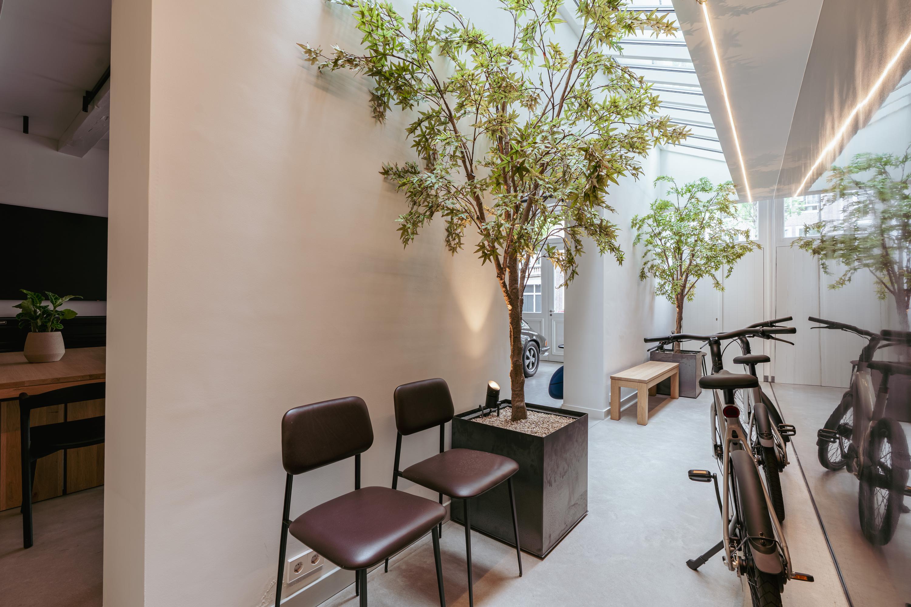 De entree van het pand biedt toegang tot zowel de woning als de multifunctionele bedrijfsruimte op de begane grond. Deze ruimte is met oog voor detail afgewerkt en ademt karakter dankzij de houten elementen, zichtbare plafondbalken en hoogwaardige materialen. Grote openslaande deuren aan de voorzijde maken het mogelijk om de volledige gevel te openen, wat zorgt voor een uitnodigende uitstraling en veel natuurlijk licht. Binnen is de ruimte praktisch en stijlvol ingedeeld. Een compacte maar luxe uitgevoerde kitchenette, een keurig toilet en een aparte was- en technische ruimte maken deze verdieping compleet. Een groot dakraam aan de achterzijde laat overvloedig daglicht binnen en geeft de ruimte een open en lichte sfeer. U heeft aan de achterzijde tevens toegang tot een buitenruimte. Daarnaast is er een tweede toegangsdeur vanaf de straatzijde, wat extra flexibiliteit biedt voor gebruik als praktijkruimte, atelier of kantoor aan huis.