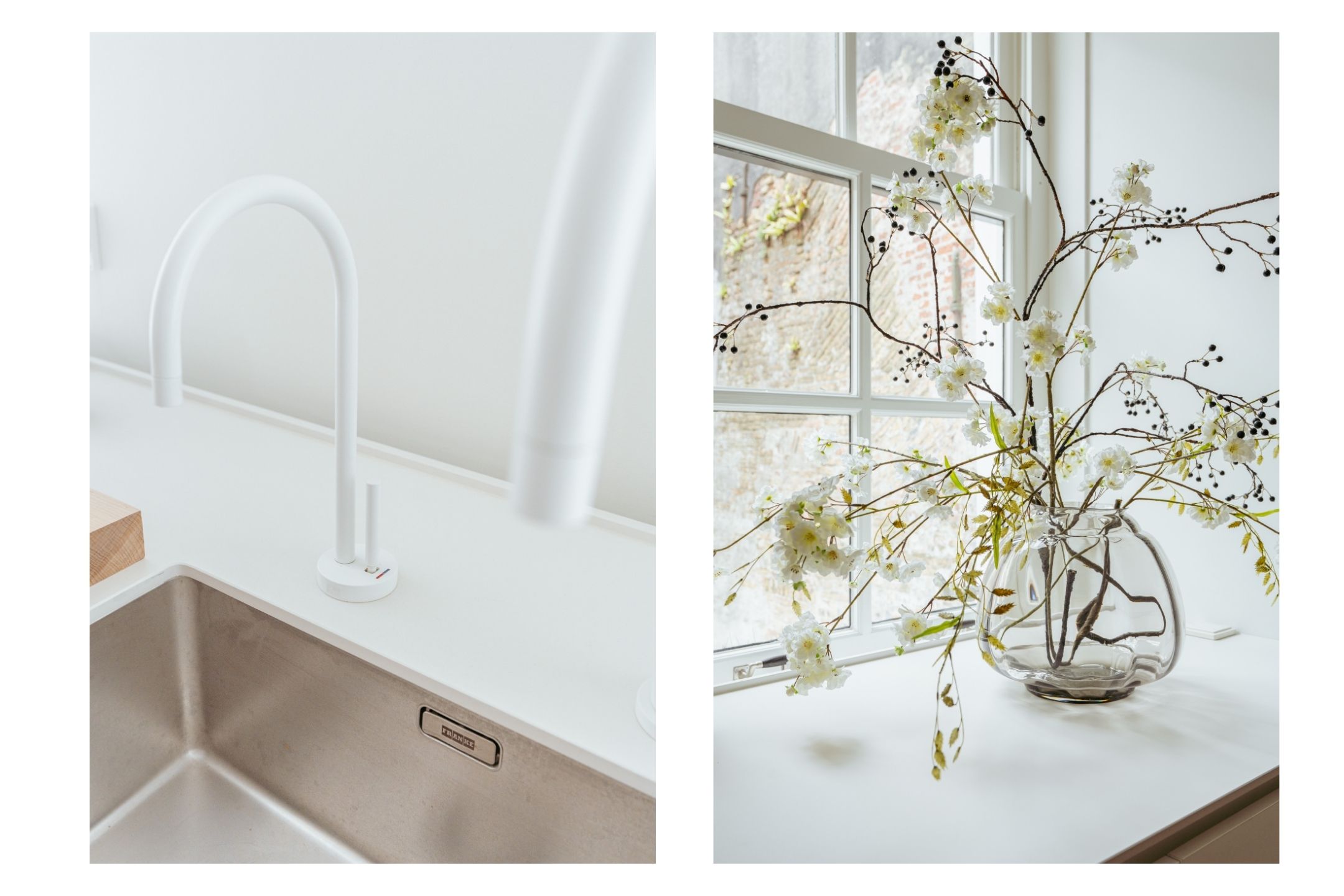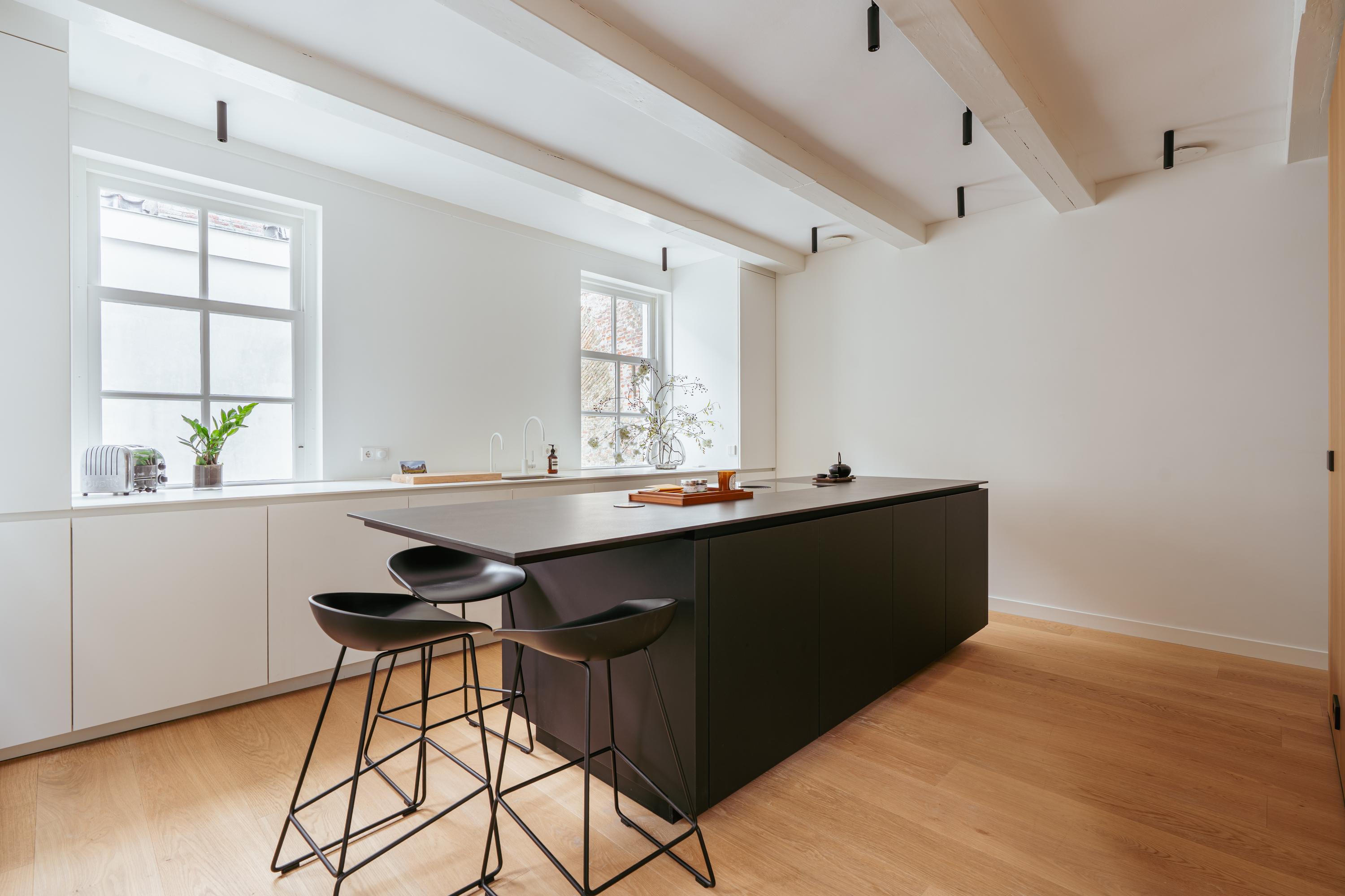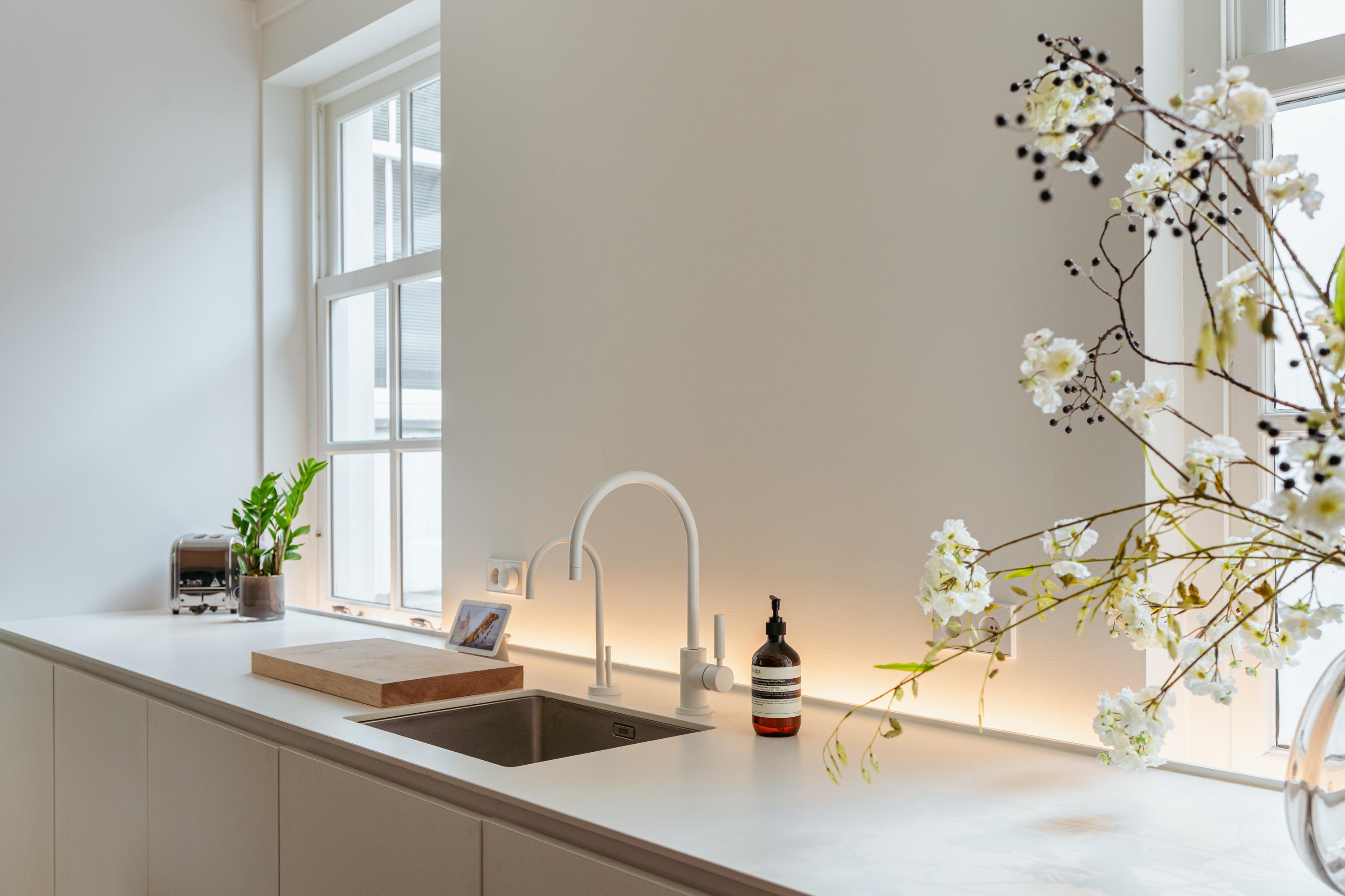 De tweede verdieping van het pand is volledig ingericht als royale leefruimte, met een prachtige balans tussen comfort, luxe en karakter. Aan de achterzijde bevindt zich de modern uitgevoerde woonkeuken, waar koken en samenkomen centraal staan. De keuken is uitgerust met hoogwaardige inbouwapparatuur: een koelkast, vriezer, combi-oven en magnetron, een spoelbak met Quooker-kraan en een strakke inductiekookplaat met geïntegreerd afzuigsysteem. De vele opbergmogelijkheden zorgen voor een opgeruimde, minimalistische uitstraling. Blikvanger is het centraal geplaatste kookeiland met een gezellig bargedeelte. Aan de voorzijde van de verdieping vindt u het zitgedeelte, waar de grote raampartijen zorgen voor een weids uitzicht over de gracht. De overvloed aan daglicht in combinatie met de warme houten vloer en de rustige afwerking creëren een aangename, uitnodigende sfeer. Via openslaande deuren bereikt u de hal waar zich een separaat toilet bevindt. Vanuit deze hal leidt een vaste trap naar de derde verdieping.