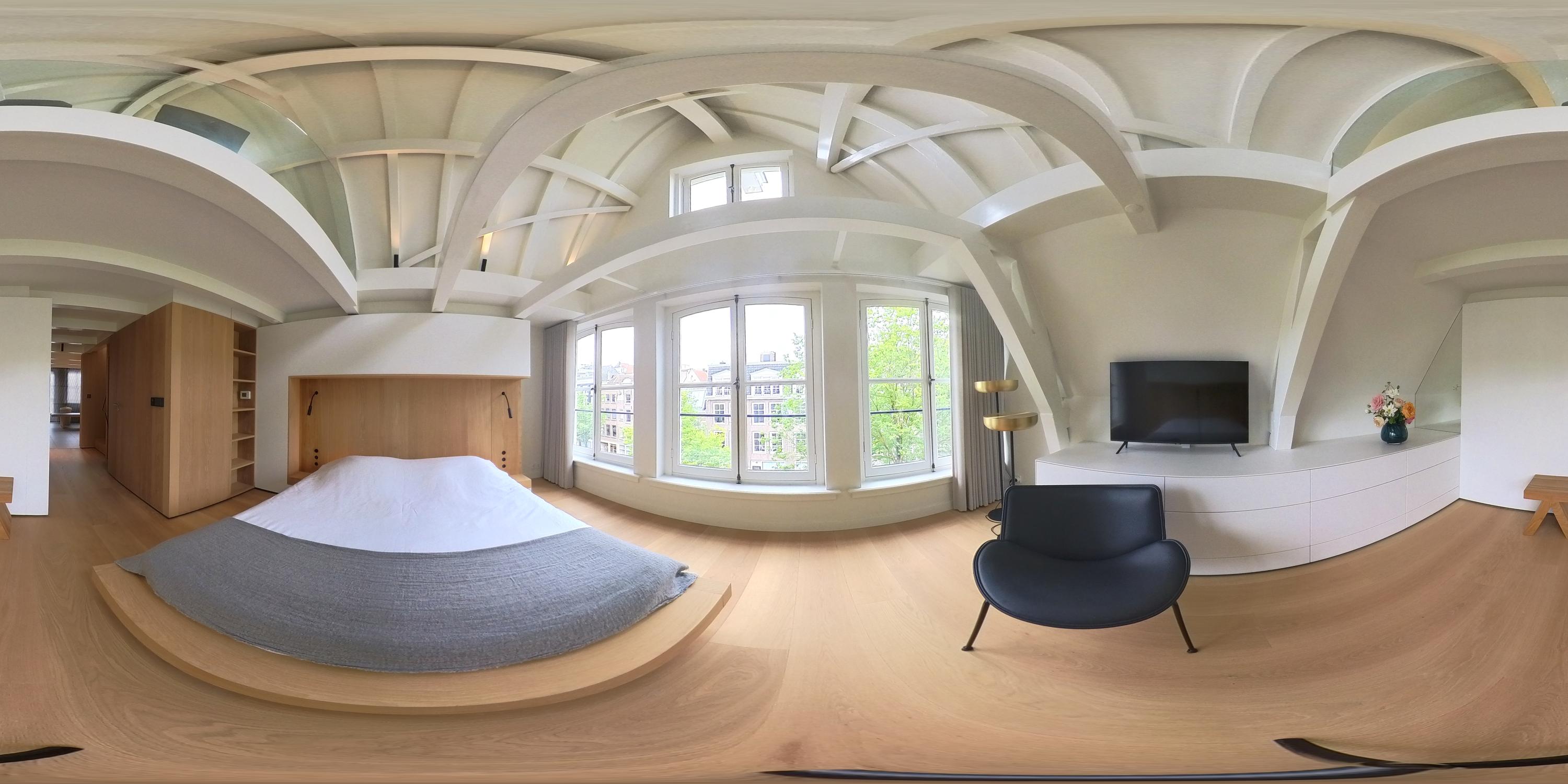 De vierde verdieping, gelegen in de nok van het pand, is momenteel in gebruik als gym. Dankzij de vide is er een directe verbinding met de master bedroom op de verdieping eronder, wat een prettig gevoel van openheid en ruimtelijkheid creëert. De kapconstructie met de schuine daklijnen geeft deze ruimte karakter, terwijl het royale plafond en de grote raampartijen zorgen voor een lichte en aangename sfeer. Dit is een multifunctionele ruimte die eenvoudig aan te passen is naar wens – denk aan een werkplek, hobbyruimte, extra slaapkamer of ontspanningsruimte. Aan de achterzijde bieden openslaande deuren toegang tot een rustig gelegen balkon. Hier geniet u van volledige privacy, een fraai uitzicht en de zon, een ideale plek voor een moment van rust in het hart van de stad.