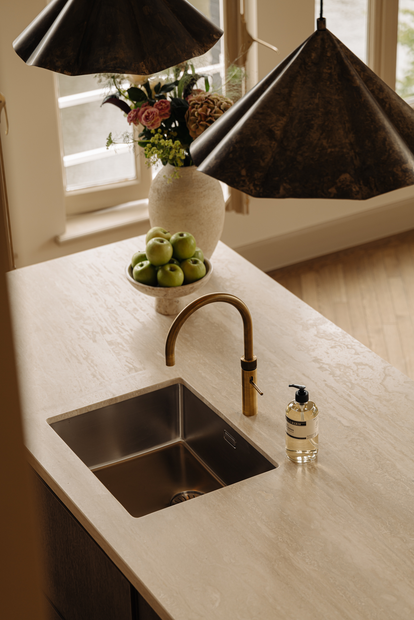 Het appartement is volledig gerenoveerd volgens de hoogste standaarden en voorzien van zeldzame, hoogwaardige materialen zoals natuursteen. De praktische indeling omvat een ruime woonkamer met plafonds van 3,44 meter hoog, een moderne open keuken met geïntegreerde apparatuur en een privé-slaapkamer met en-suite badkamer op de benedenverdieping. Grote ramen laten overvloedig daglicht binnenstromen, waardoor het zorgvuldig ontworpen interieur prachtig tot zijn recht komt en de historische omgeving extra wordt benadrukt. Op de bovenverdieping bevinden zich twee royale slaapkamers, waarvan één met toegang tot het balkon, een tweede luxe badkamer en een aparte wasruimte. Een separaat toilet op beide verdiepingen zorgt voor extra gemak. Het zuidwestelijk gelegen terras en balkon bieden een sereen uitzicht op de iconische bezienswaardigheden van de stad en creëren een harmonieuze verbinding tussen binnen- en buitenleven.