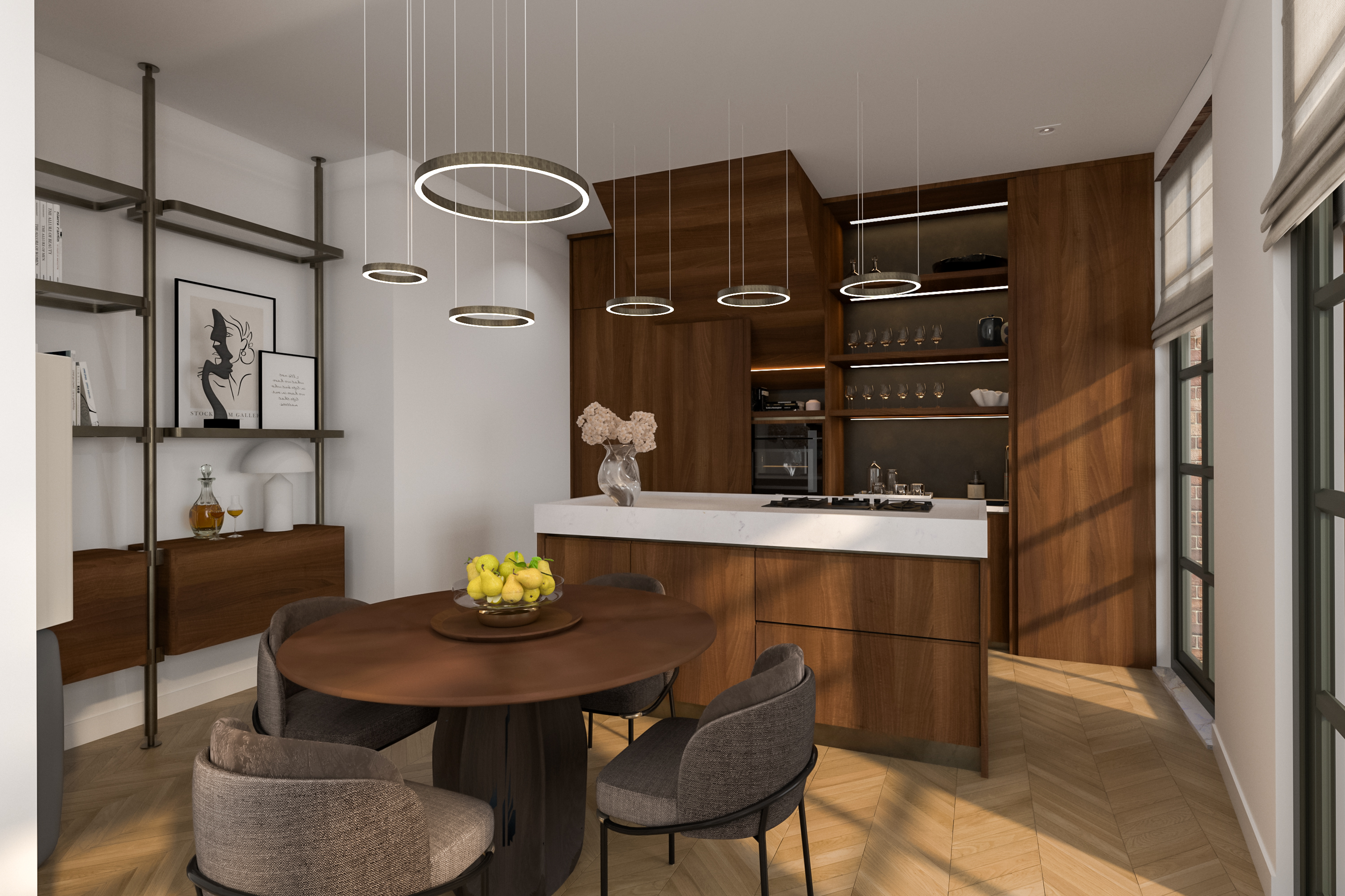 • Ultradunne aluminium kozijnen in RAL 6006, met triple glas