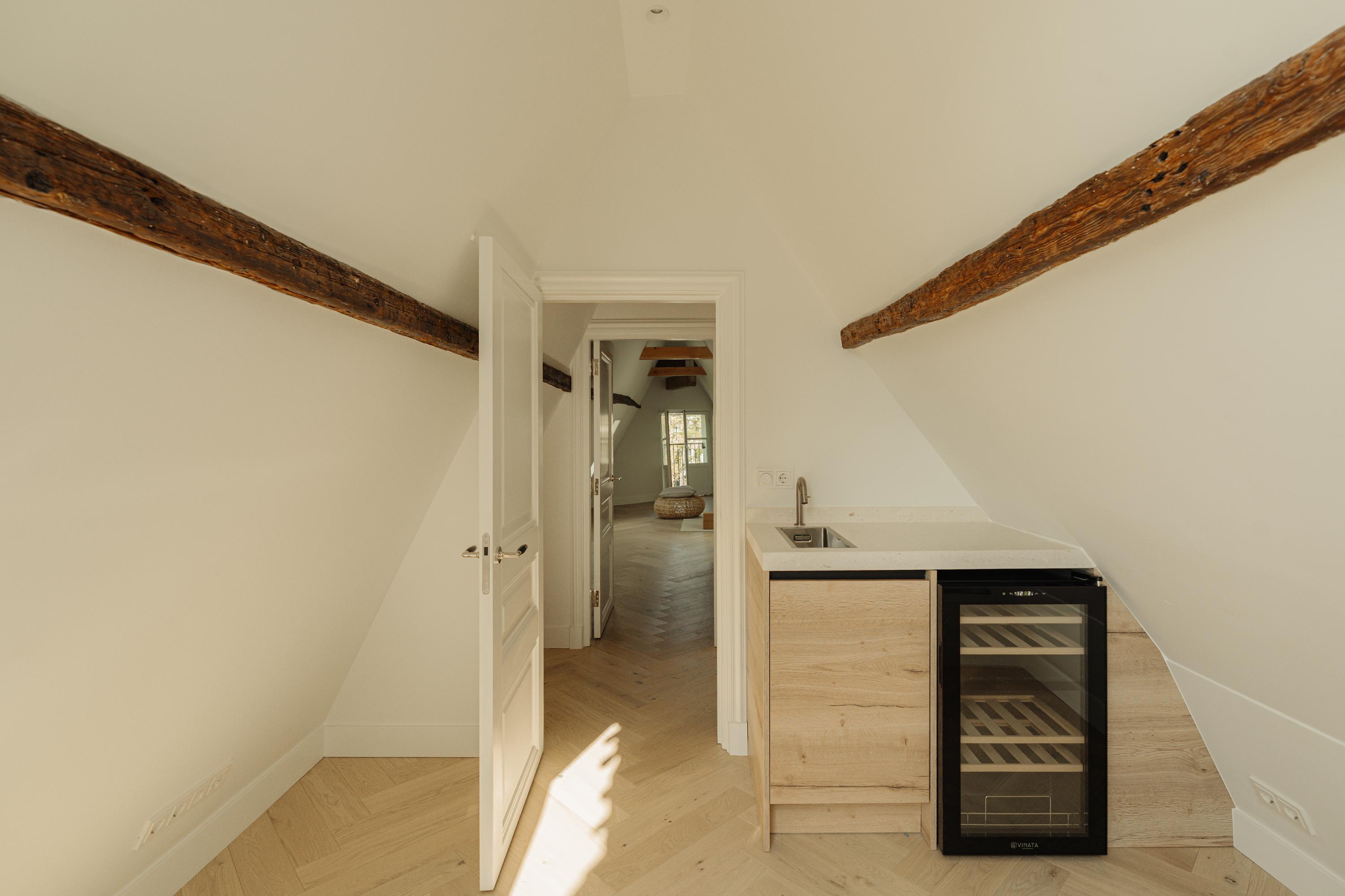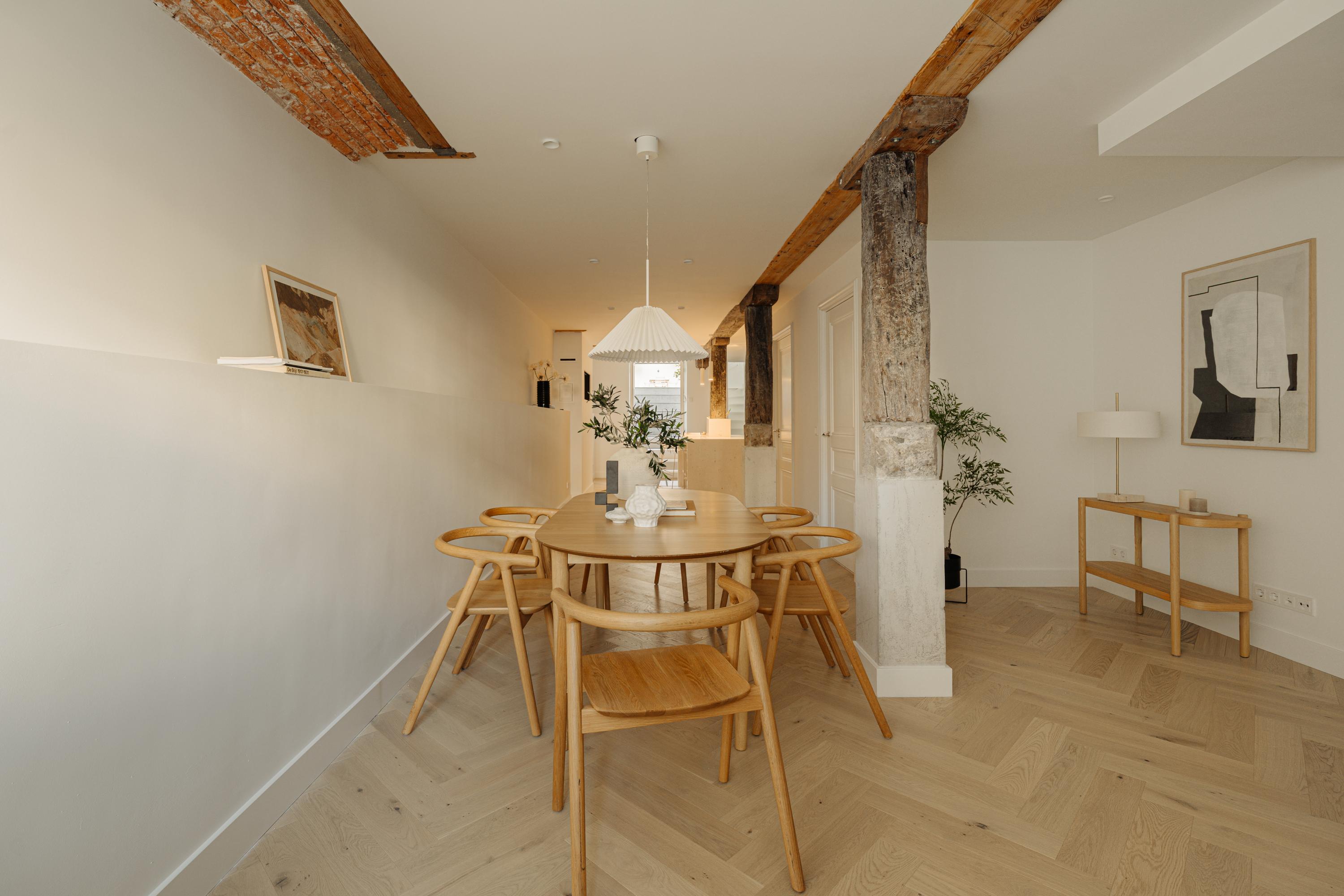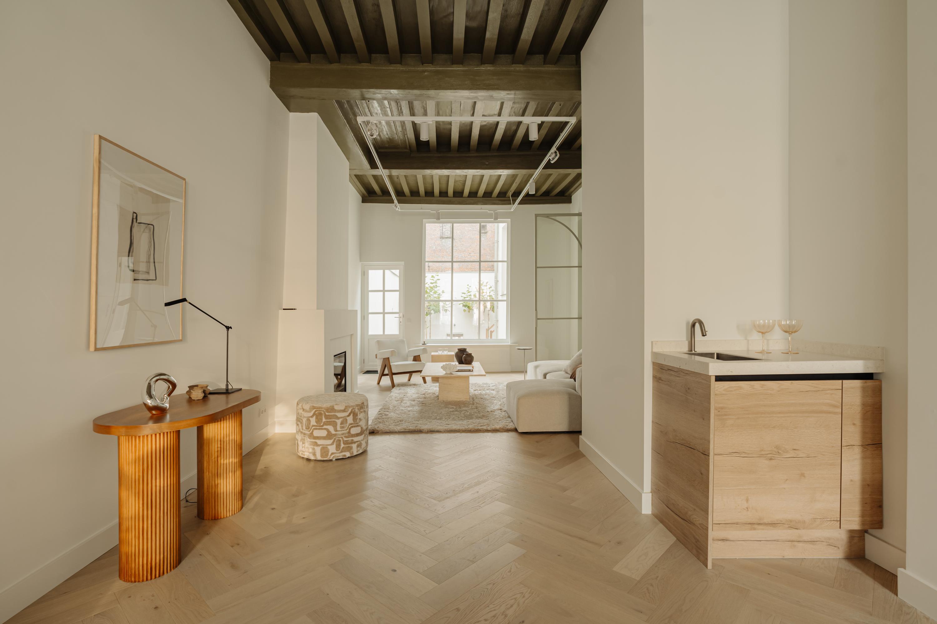 Het pand is met oog voor detail en respect voor de oorspronkelijke architectuur vernieuwd. Originele balken, hoge plafonds en grote raampartijen verwijzen naar details van het verleden, terwijl maatwerk, natuurlijke materialen en een serene afwerking zorgen voor eigentijdse luxe.