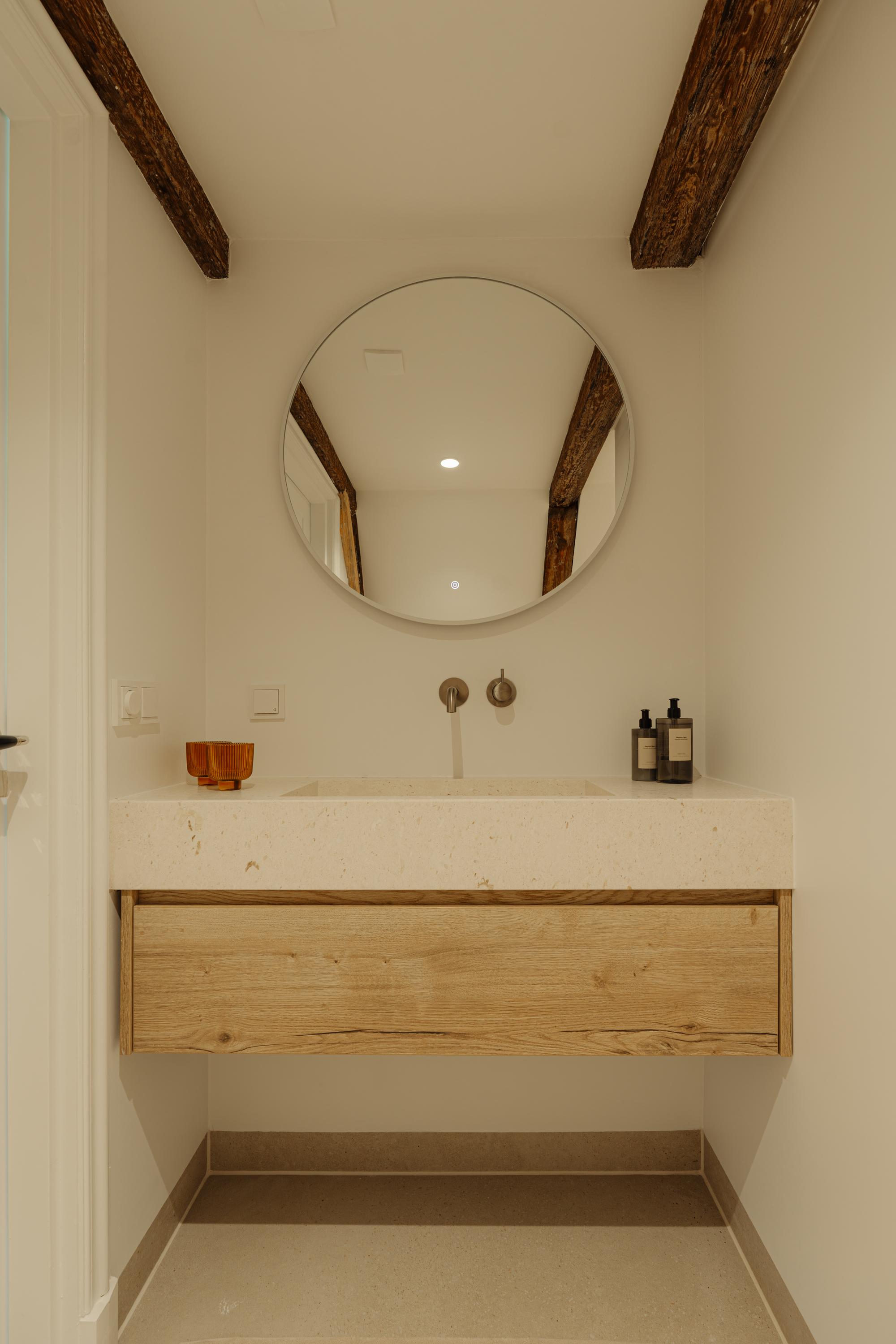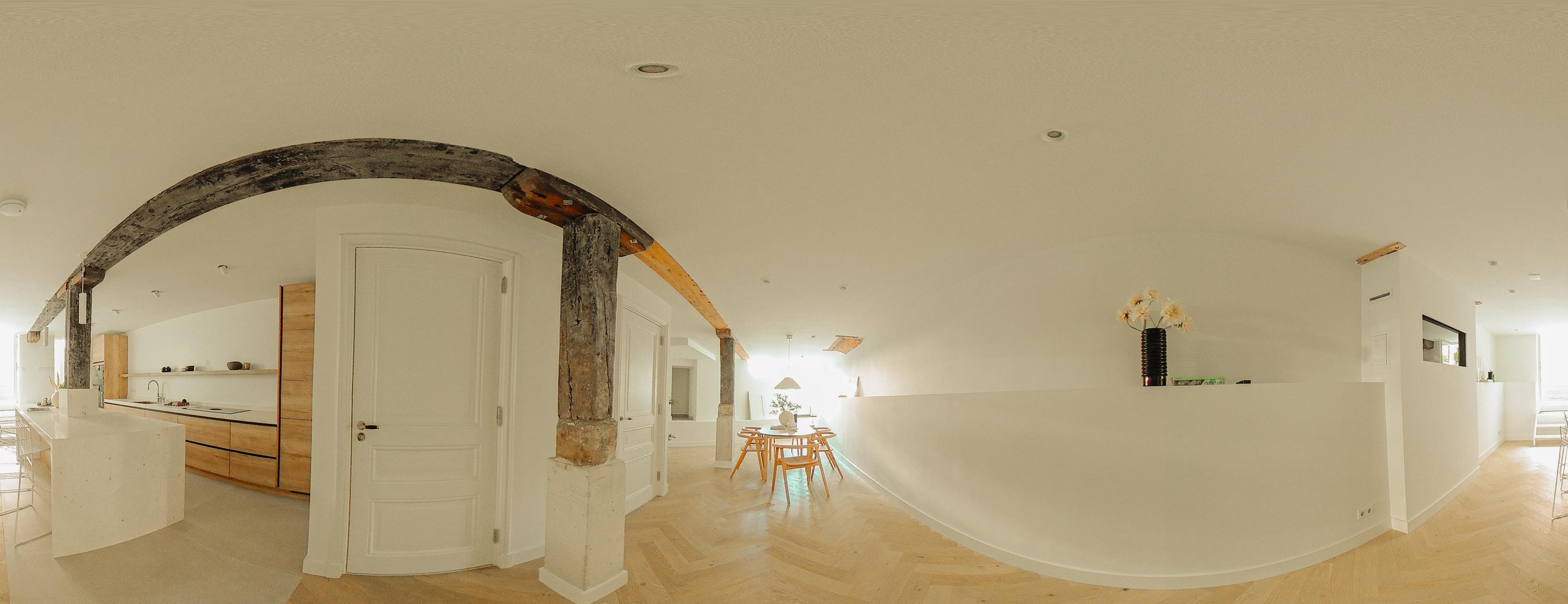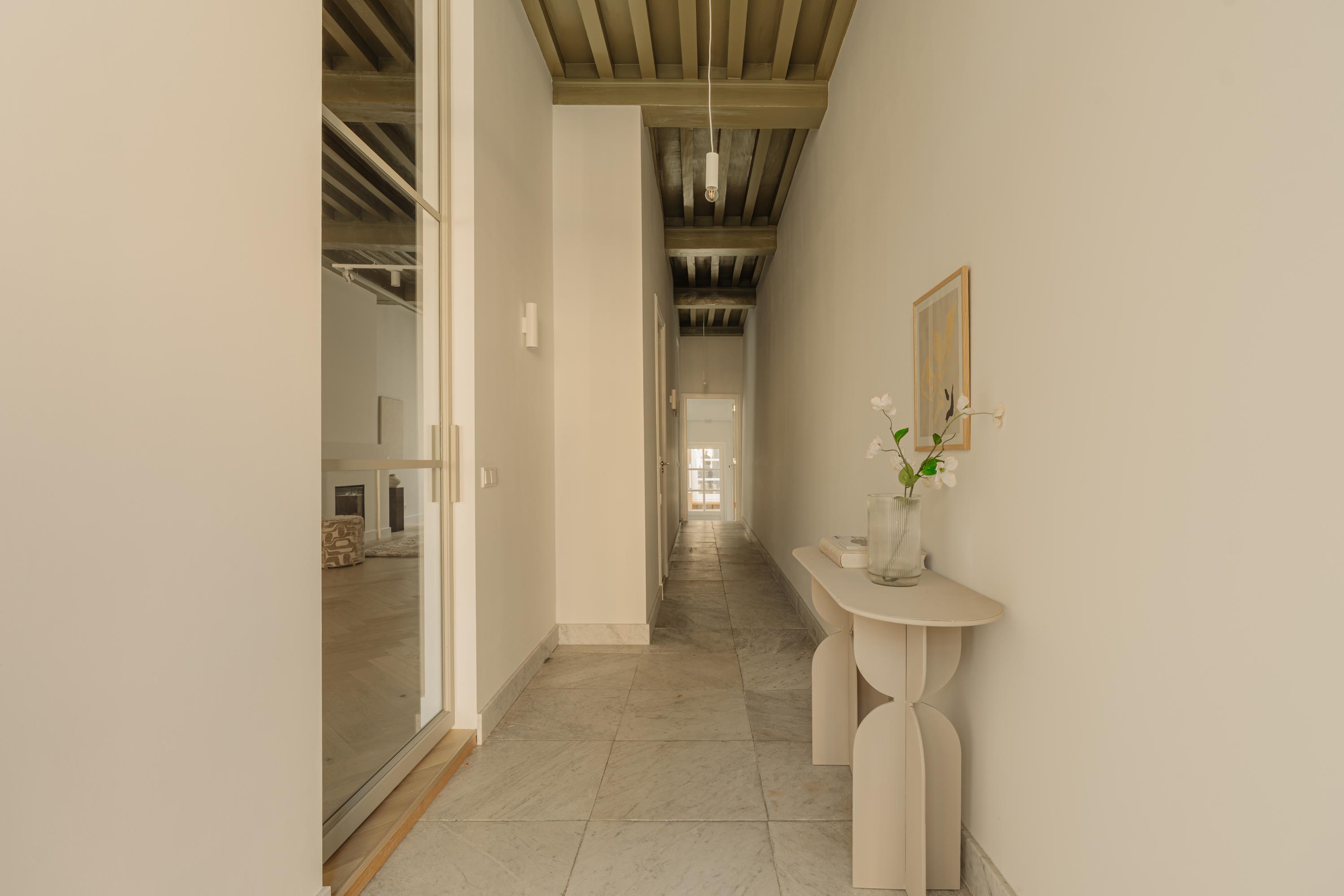 Het pand is met oog voor detail en respect voor de oorspronkelijke architectuur vernieuwd. Originele balken, hoge plafonds en grote raampartijen verwijzen naar details van het verleden, terwijl maatwerk, natuurlijke materialen en een serene afwerking zorgen voor eigentijdse luxe.