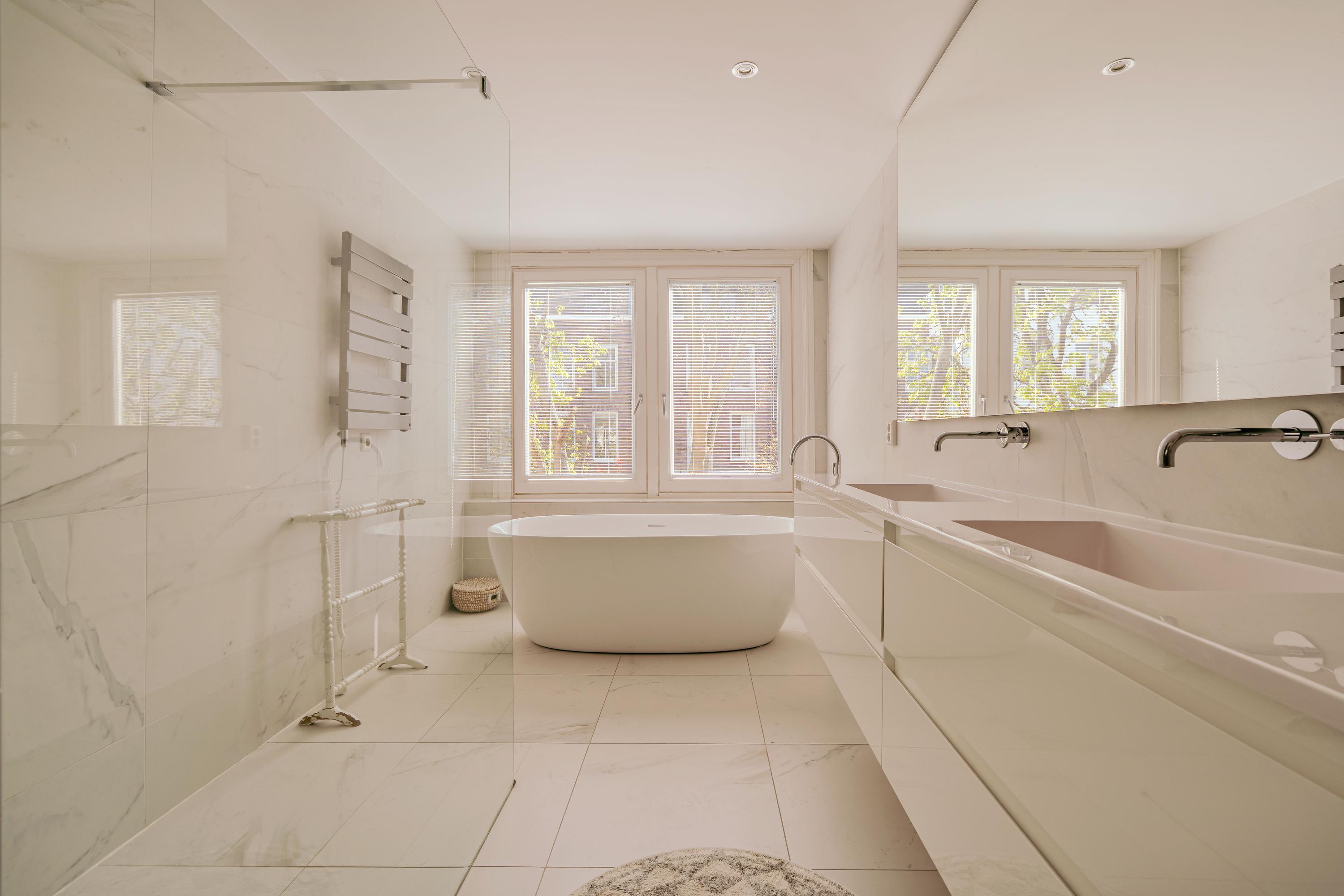 Een trap naar boven leidt u naar de overloop op de tweede verdieping. Aan de voorzijde van de tweede verdieping bevindt zich de tweede goed bemeten slaapkamer, welke is voorzien van praktische inbouwkasten en een airco-installatie. Tevens biedt deze slaapkamer toegang tot de riante inloopkast van ca. 9 m², evenals gelegen aan de voorzijde van het appartement en bereikbaar via de centrale overloop. Aan de achterzijde bevindt zich de master bedroom voorzien van openslaande deuren richting het heerlijke balkon, gelegen op het zuid oosten. Vanuit de slaapkamer treft u via de overloop de verhoogde badkamer aan de achterzijde. De badkamer beschikt over een ruim ligbad, inloopdouche, dubbele wastafel met meubel, een toilet, urinoir en aansluitingen voor wasmachine en droger. Deze verdieping beschikt aan de achterzijde tevens over elektrische rolluiken. De twee slaapkamers op deze verdieping zijn verbonden middels een centrale overloop voorzien van ruime ingebouwde kasten. Een tweede trap op deze verdieping brengt u naar de derde verdieping, tevens de bovenste verdieping van het appartement.