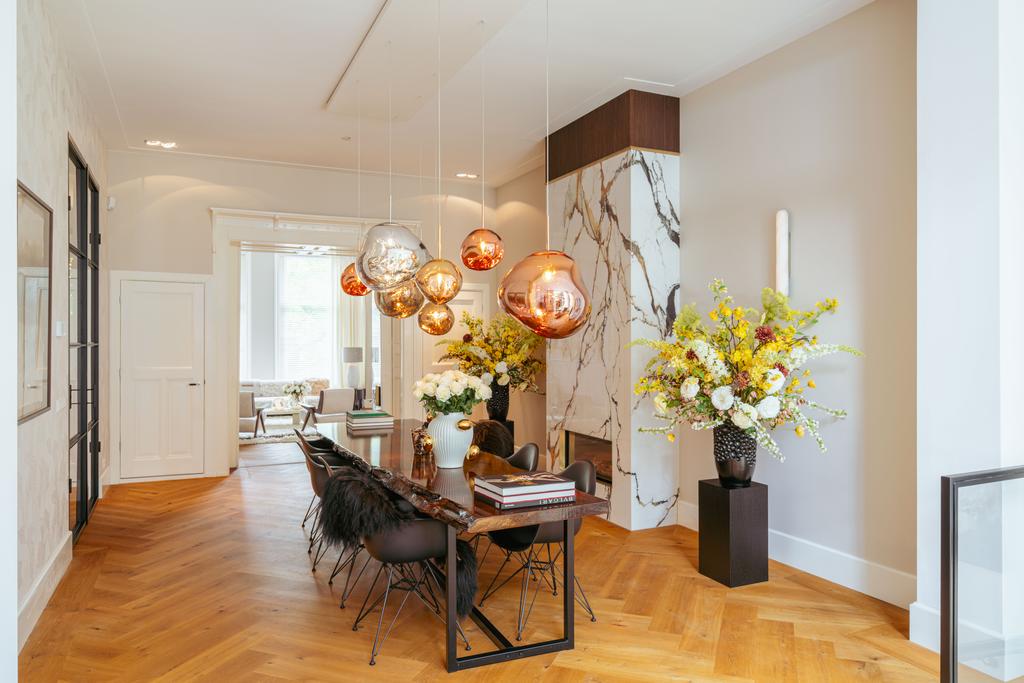 Aan de prachtige Vossiusstraat bevindt zich deze uitzonderlijk stijlvolle en royale woning van 323 m² verdeeld over drie verdiepingen en gelegen op eigen grond. Dit huis combineert klassieke elegantie met hedendaags comfort en is afgewerkt met hoogwaardige materialen, waaronder een visgraat houten vloer, stalen taatsdeuren, marmeren details en diverse gashaarden. Met zes slaapkamers, drie luxe badkamers, een riante woonkeuken, een fraai aangelegde zonnige tuin (157m²) en uitzicht over het park biedt deze woning een zeldzame combinatie van ruimte, rust en stedelijke allure – midden in het hart van Amsterdam Oud-Zuid.