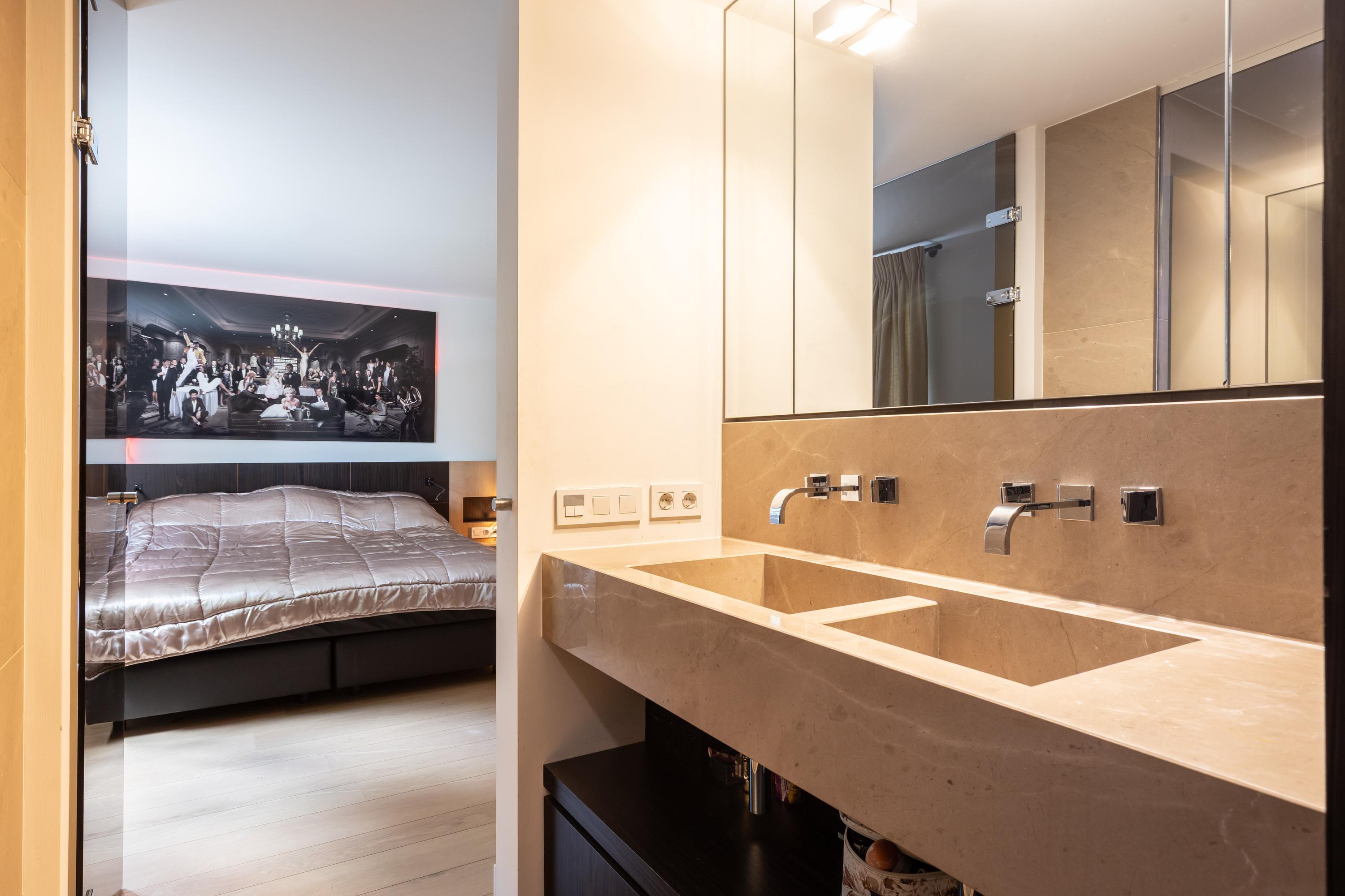 Drie grote slaapkamers bieden eveneens luxe maatwerk; één ervan heeft toegang tot een eigen dakterras. Op de overloop is een tweede badkamer met dubbele wastafel, inloopdouche, bidet en apart toilet.