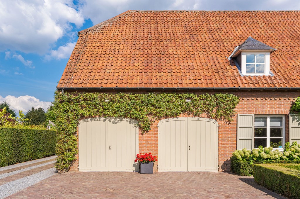 De ruime bijkeuken is voorzien van een extra werkblad met gootsteen, aansluitingen voor de wasmachine en droogkast, een douchcabine biedt direct toegang tot de garage.
