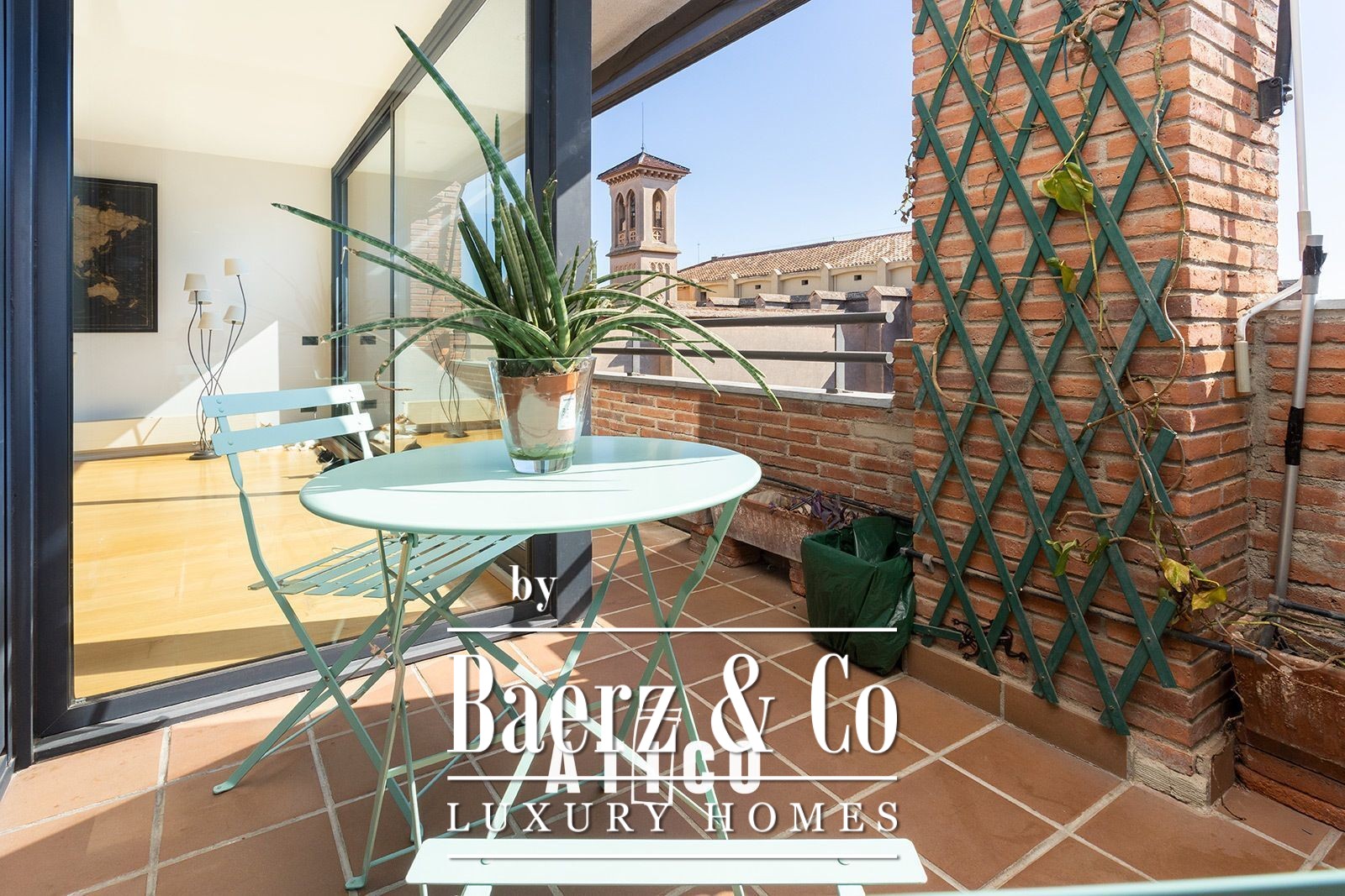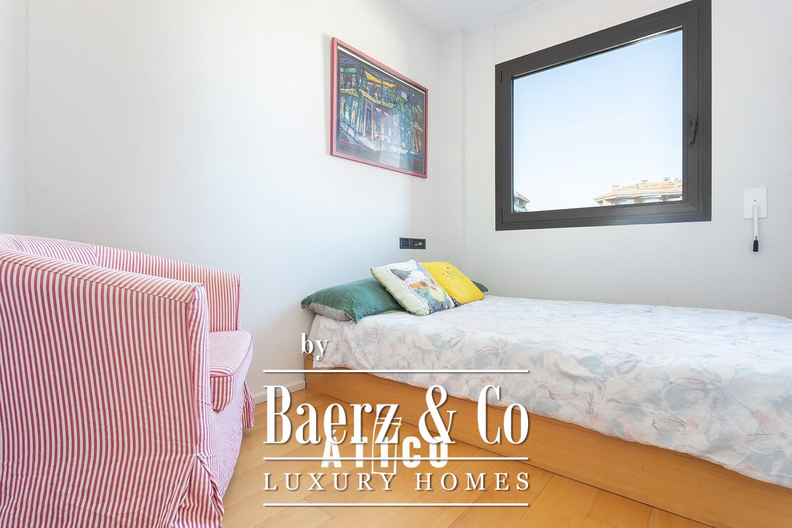 En e barrio de Sarria disponemos de este bonito ático dúplex todo exterior de 227 m. Distribuido en dos plantas. P 1ª - Encontramos amplio salón comedor con cocina que puede ser abierta o cerrada con puerta corredera. Con la sensación de paz que te da su vistas al barrio y su orientación. Dos habitaciones dobles que comparten un baño. Por una amplia escalera se accede a un segundo salón con chimenea, la suitte y una habitación estudio. Tanto la suitte como el salón tienen acceso a una amplia terraza de 34 m. orientada a Tarragona.