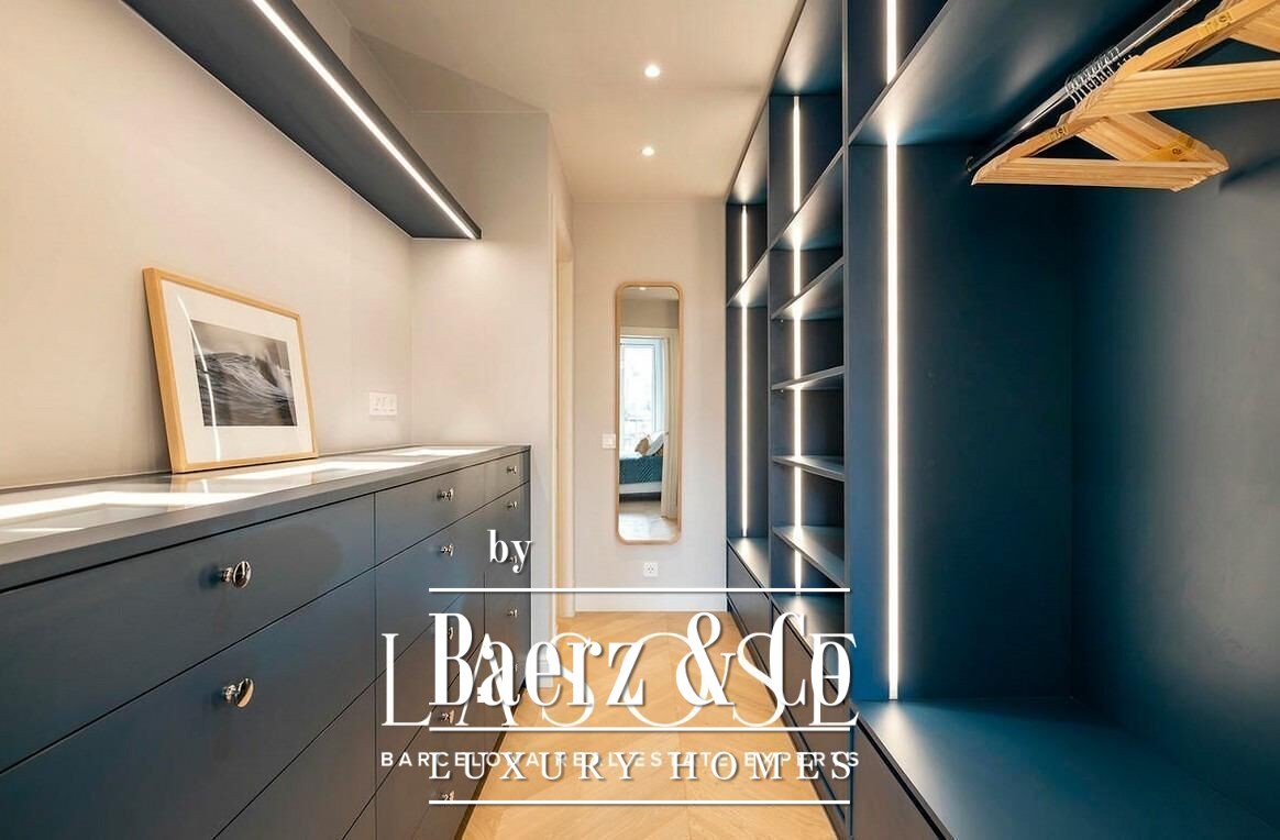 Op de benedenverdieping bevinden zich drie slaapkamers met toegang tot een balkon van 18 m², waardoor het slaapgedeelte rijkelijk wordt voorzien van daglicht. De master suite beschikt over een inloopkast en een en-suite badkamer; de overige twee slaapkamers delen een moderne badkamer. Beide verdiepingen beschikken over een eigen entree, wat het discrete en flexibele karakter van het ontwerp versterkt.