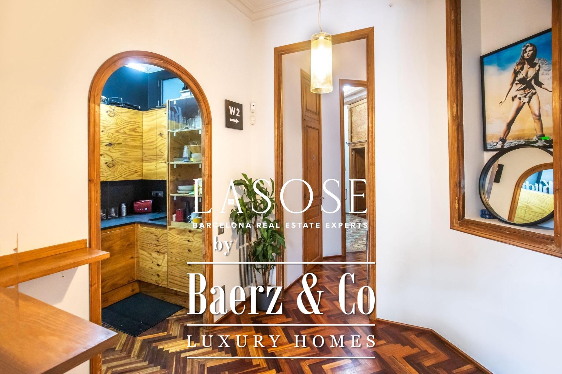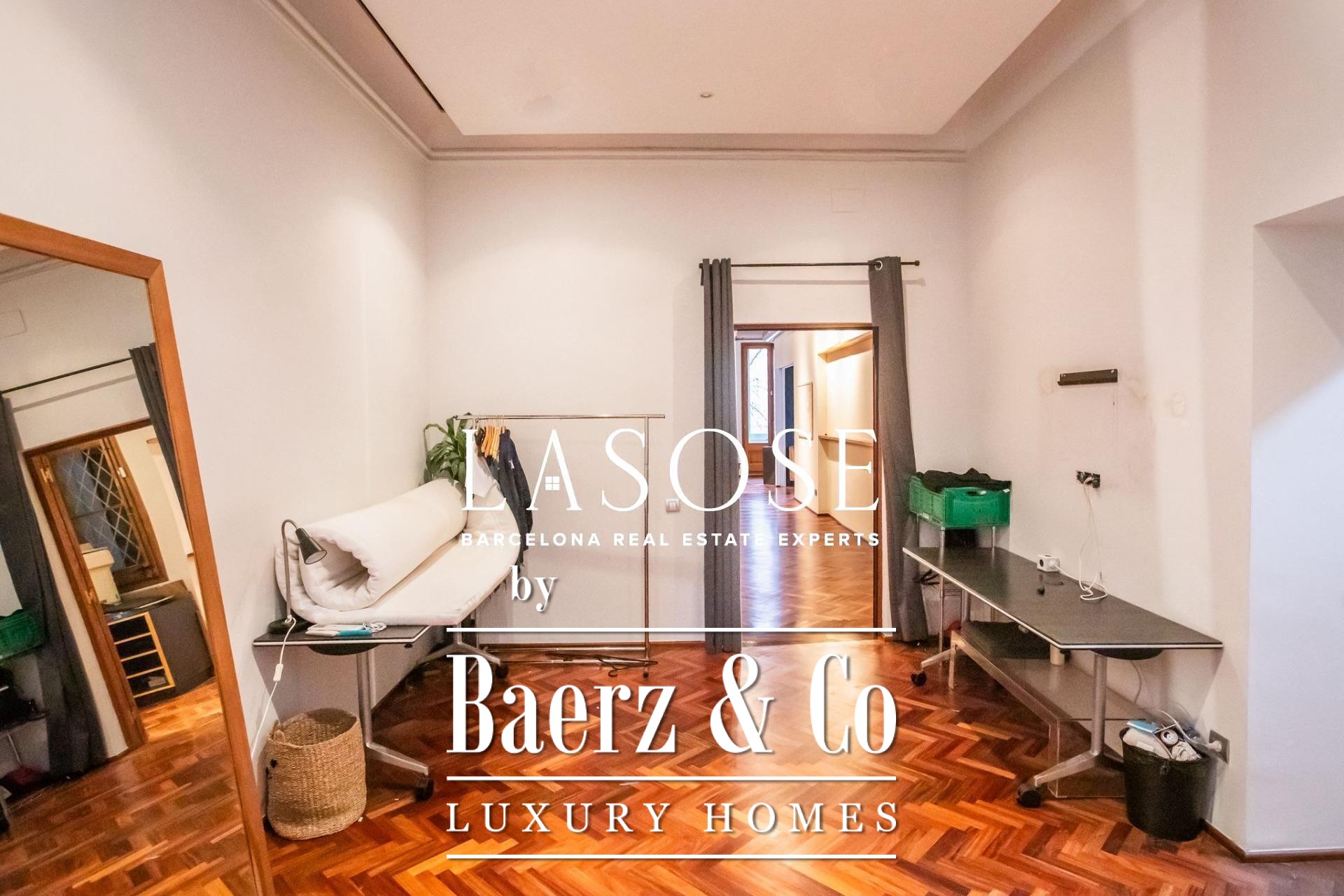 Appartement Barcelona in Eixample Esquerra bevindt zich op de bel-etage van een karakteristiek modernistisch pand uit 1900, waar erfgoedarchitectuur en een royale ruimtelijke indeling samenkomen. Deze woning biedt een intern woonoppervlak van 179 m² en 4 m² aan balkons. Drie balkons aan de straatzijde en een klassieke erker vullen de hoofdwoonkamer met daglicht, wat zowel grandeur als openheid weerspiegelt. De plafonds reiken tot 3,5 meter en zijn voorzien van de originele volta catalana, waarmee het authentieke karakter van de bouwperiode behouden blijft.