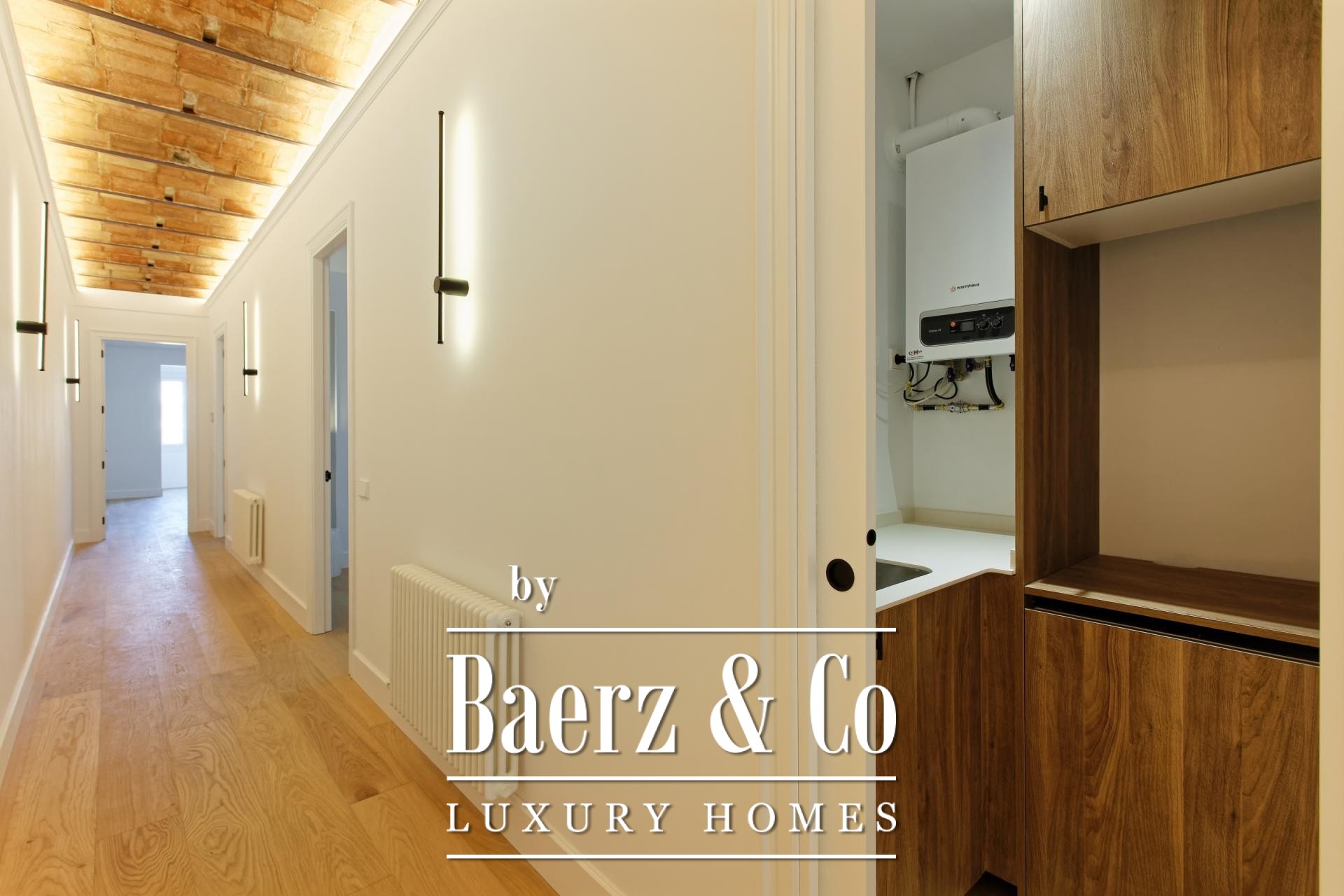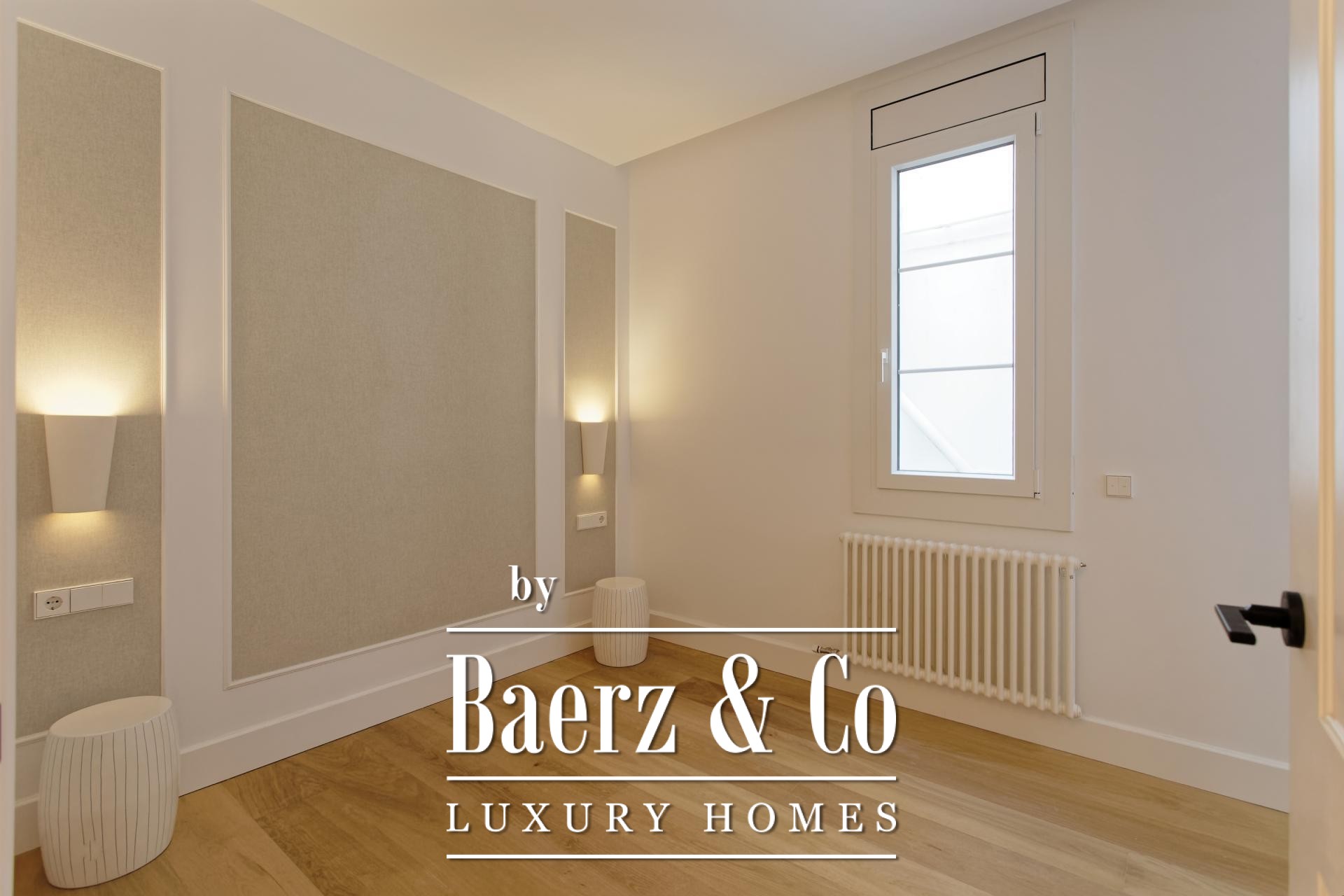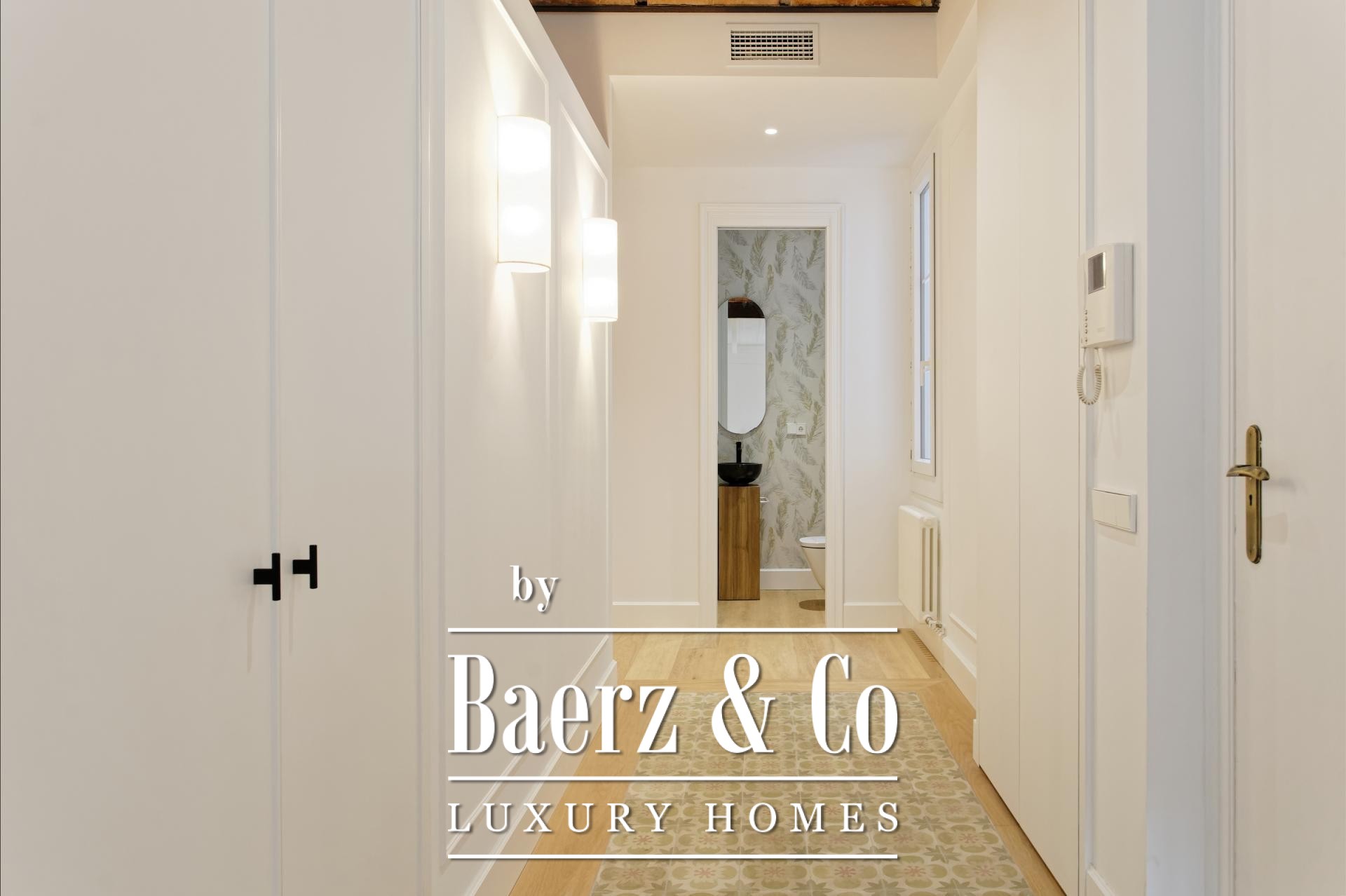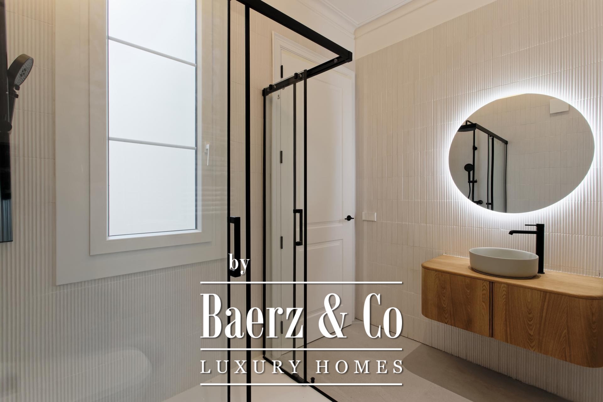 De woon- en eetruimtes zijn ingericht voor zowel geborgen comfort als rustige gastvrijheid en sluiten aan op een volledig uitgeruste keuken en een aparte wasruimte. Dit zorgvuldig gerenoveerde appartement behoudt authentieke elementen, introduceert moderne afwerkingen en biedt toegang via een lift, waardoor het geheel een sfeer uitstraalt van ingetogen, historisch wonen in Barcelona.