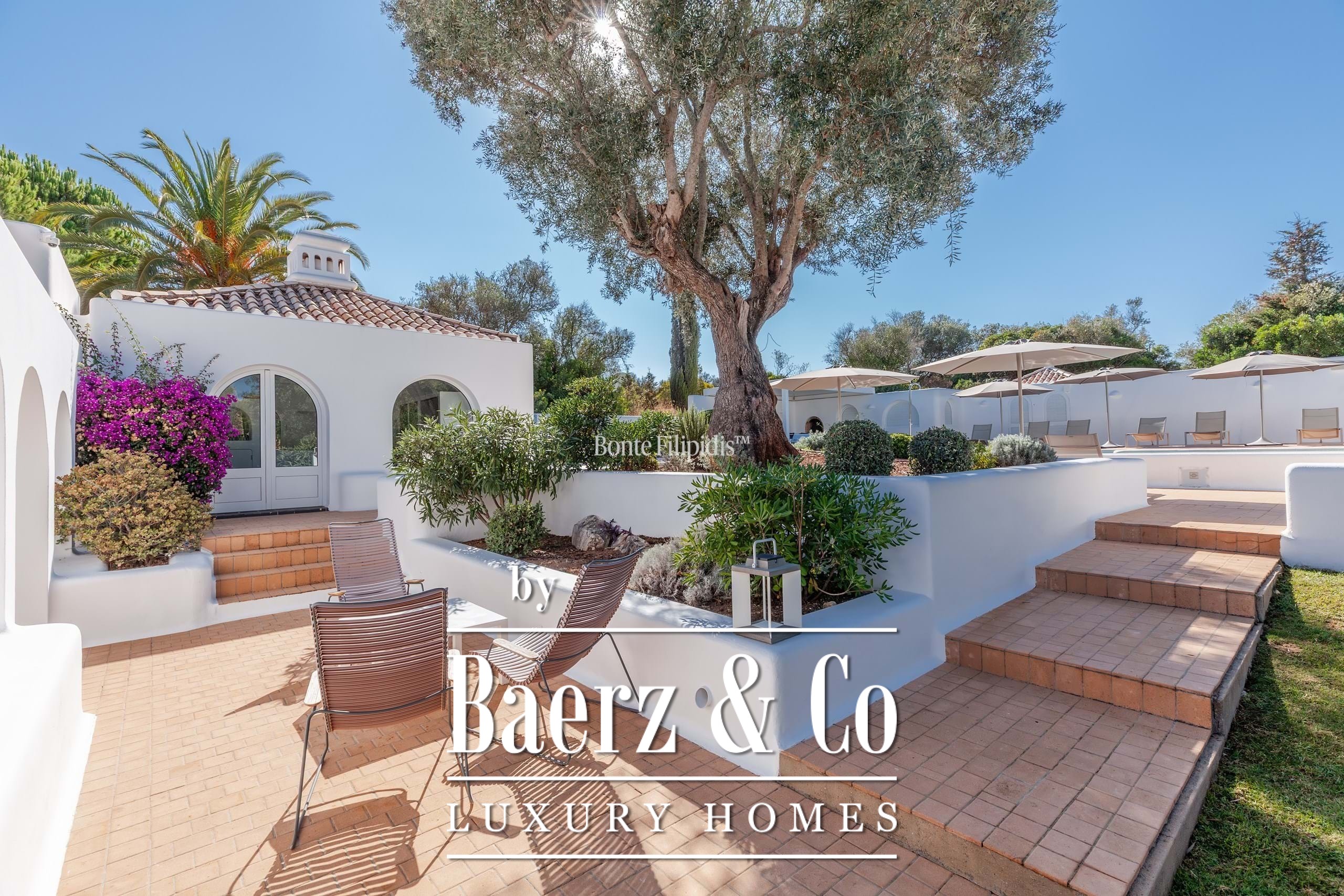 The landscaped gardens, sustained by a private borehole, feature mature trees that provide natural shade and privacy throughout the grounds. Despite its secluded feel, Casa Arte lies just minutes from the historic town of Lagos, known for its golden beaches, marina, fine dining, and vibrant atmosphere.