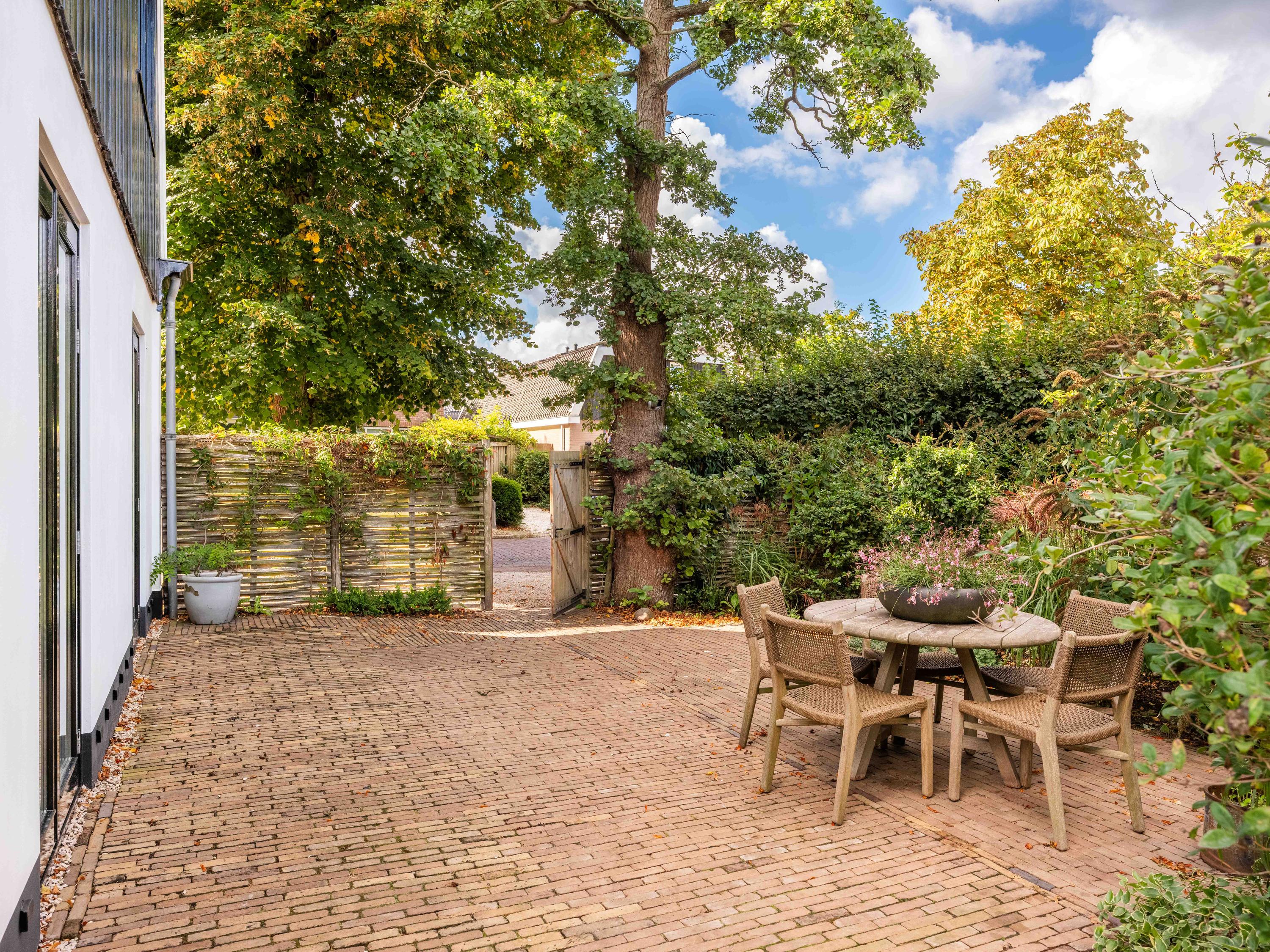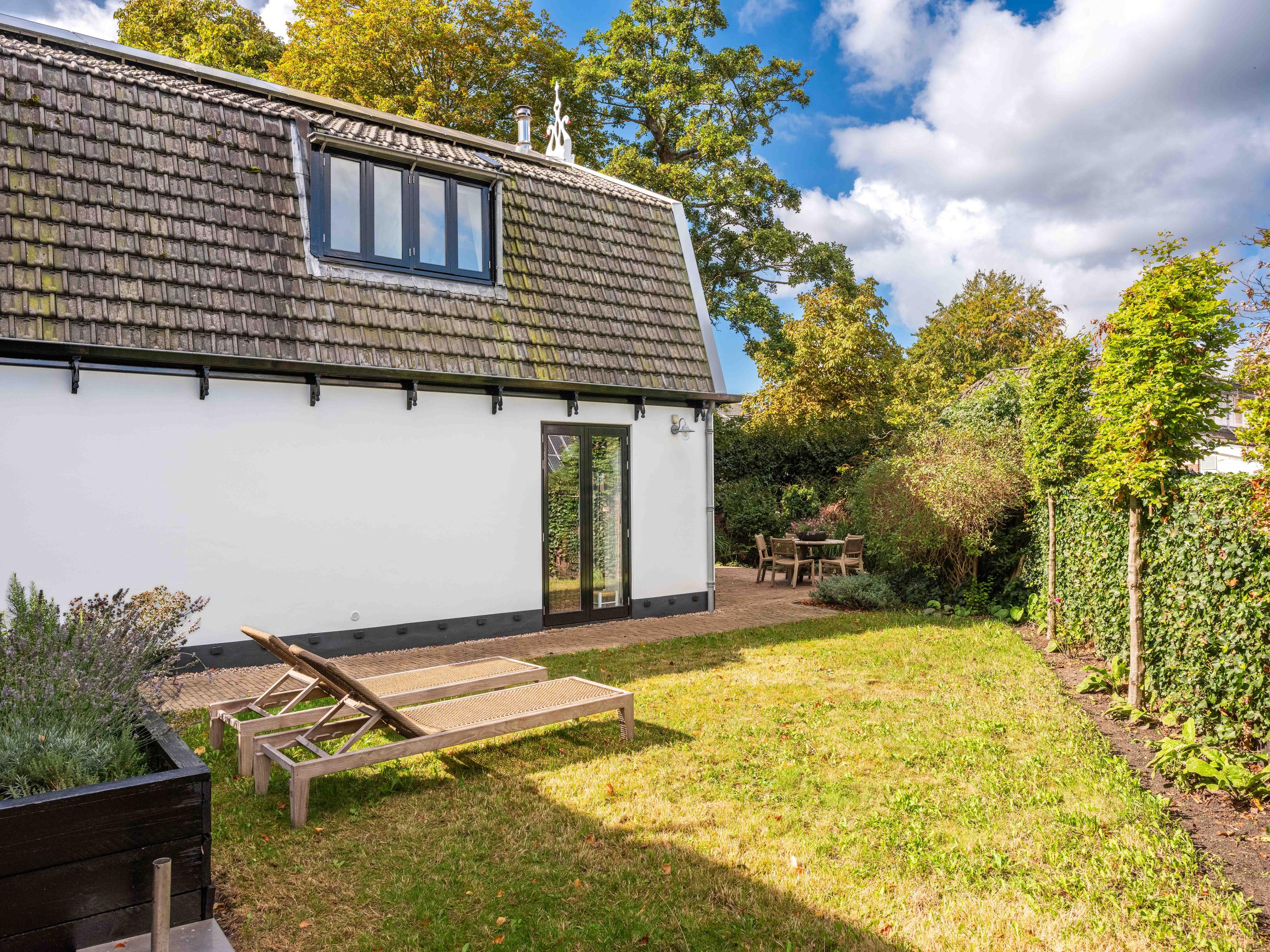 Aan de andere zijde van de woning bevindt zich het voormalige atelier, thans in gebruik als bijhuis met keukentje en slaapgelegenheid. Met ca. 80 m² vloeroppervlak en een eigen toegang is dit een heerlijk lichte ruimte, ideaal te gebruiken als atelier, kantoor aan huis, praktijkruimte of bijvoorbeeld als kangoeroewoning of verblijf voor een au-pair.