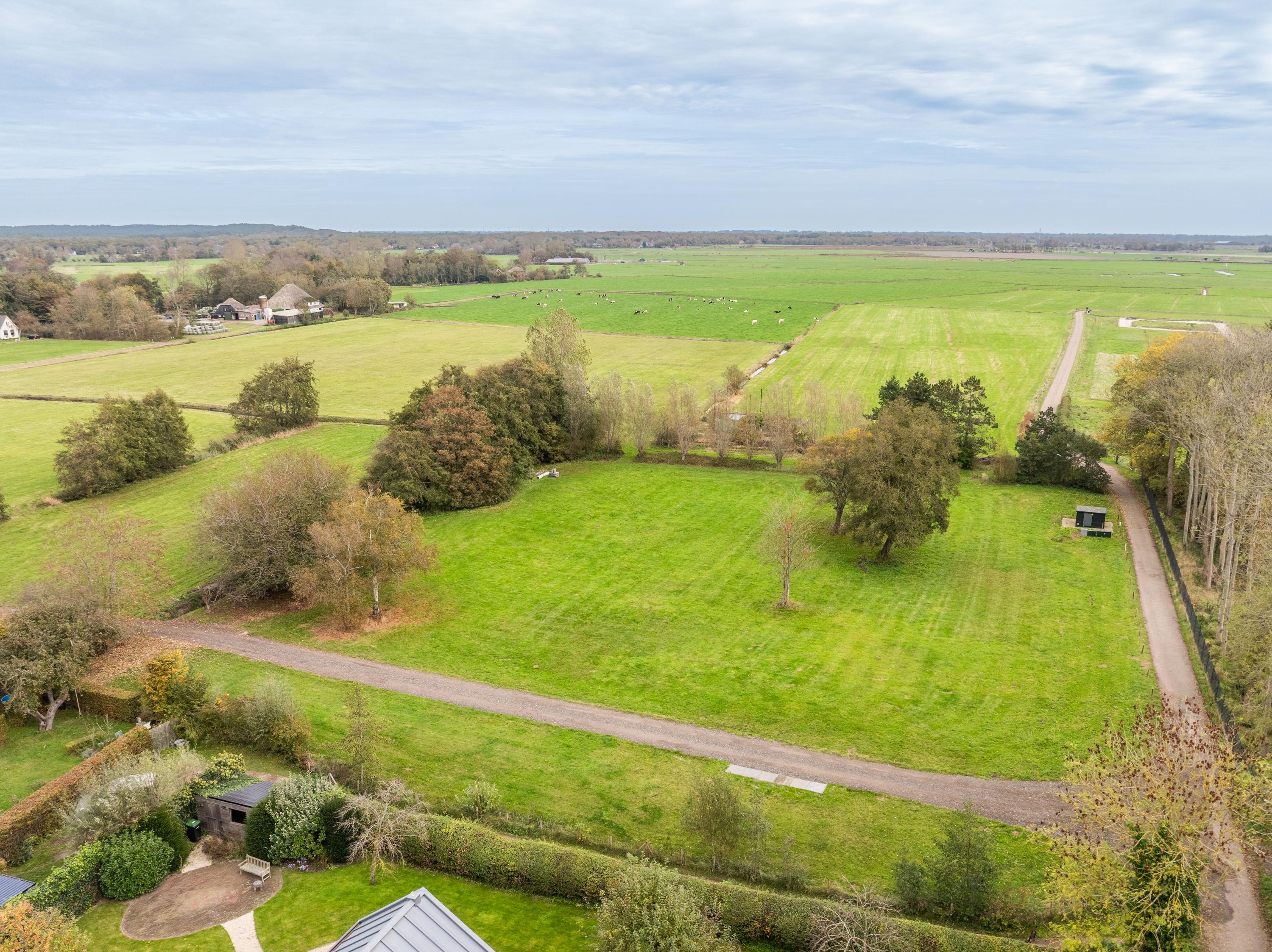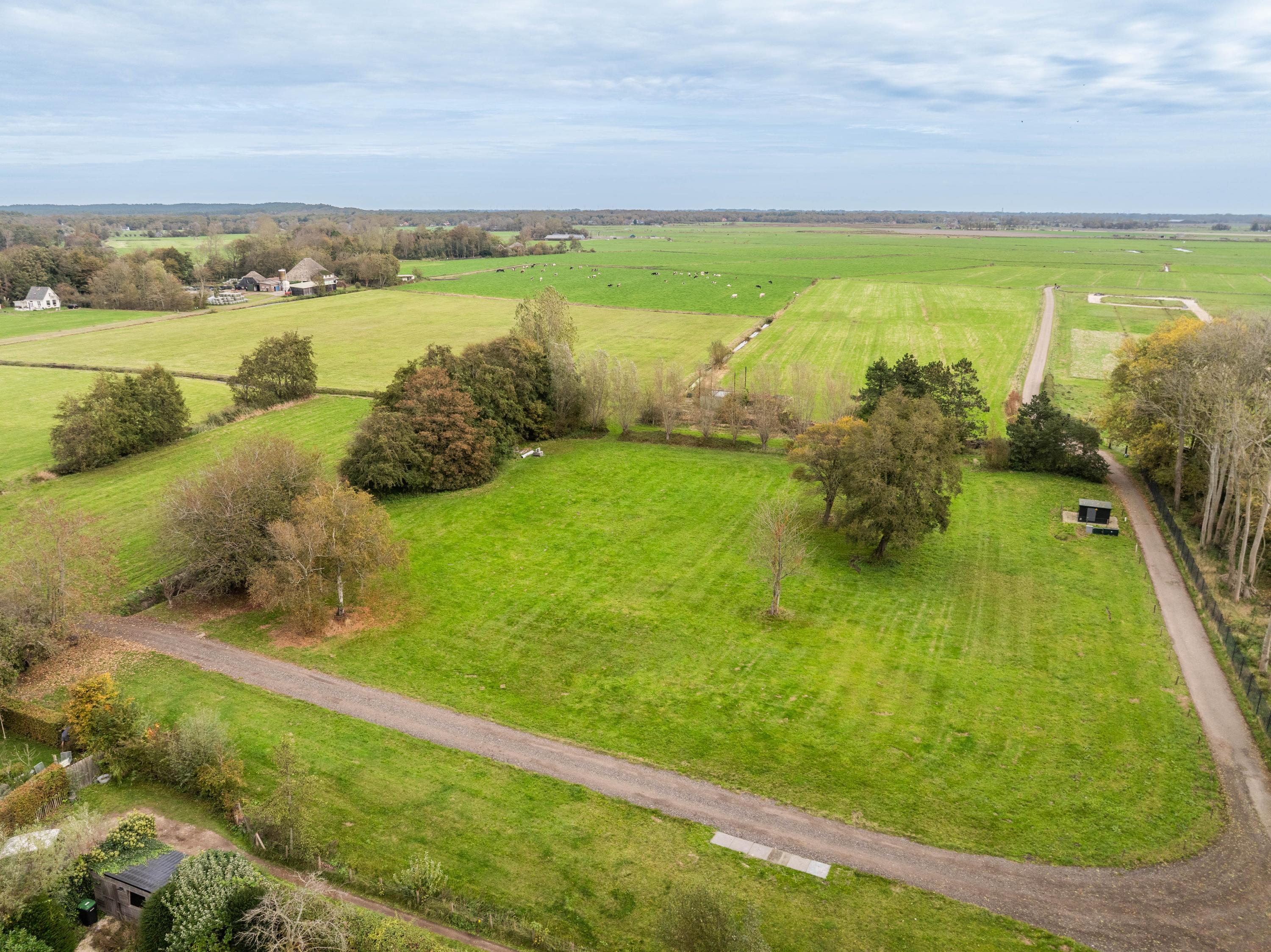 De kavel is royaal van formaat, ca. 9122 m2 groot en ligt op een schitterende, stille locatie met een adembenemend vrij uitzicht over de uitgestrekte weilanden. Vanaf deze plek kijkt u iedere dag uit over het groen, terwijl u ’s ochtends de stilte hoort van het platteland. Toch bent u binnen enkele minuten in het centrum van Bergen of de Egmonden.