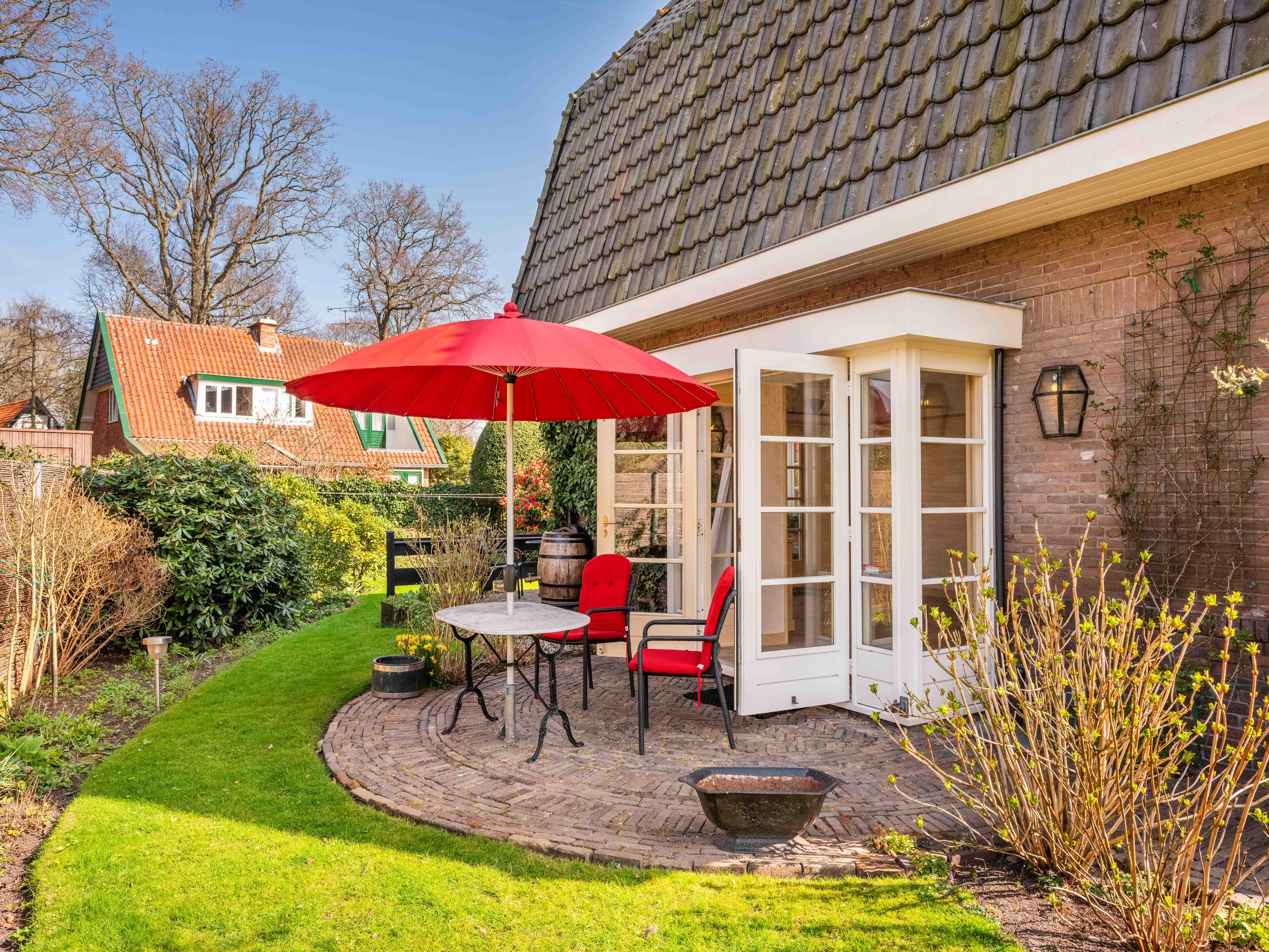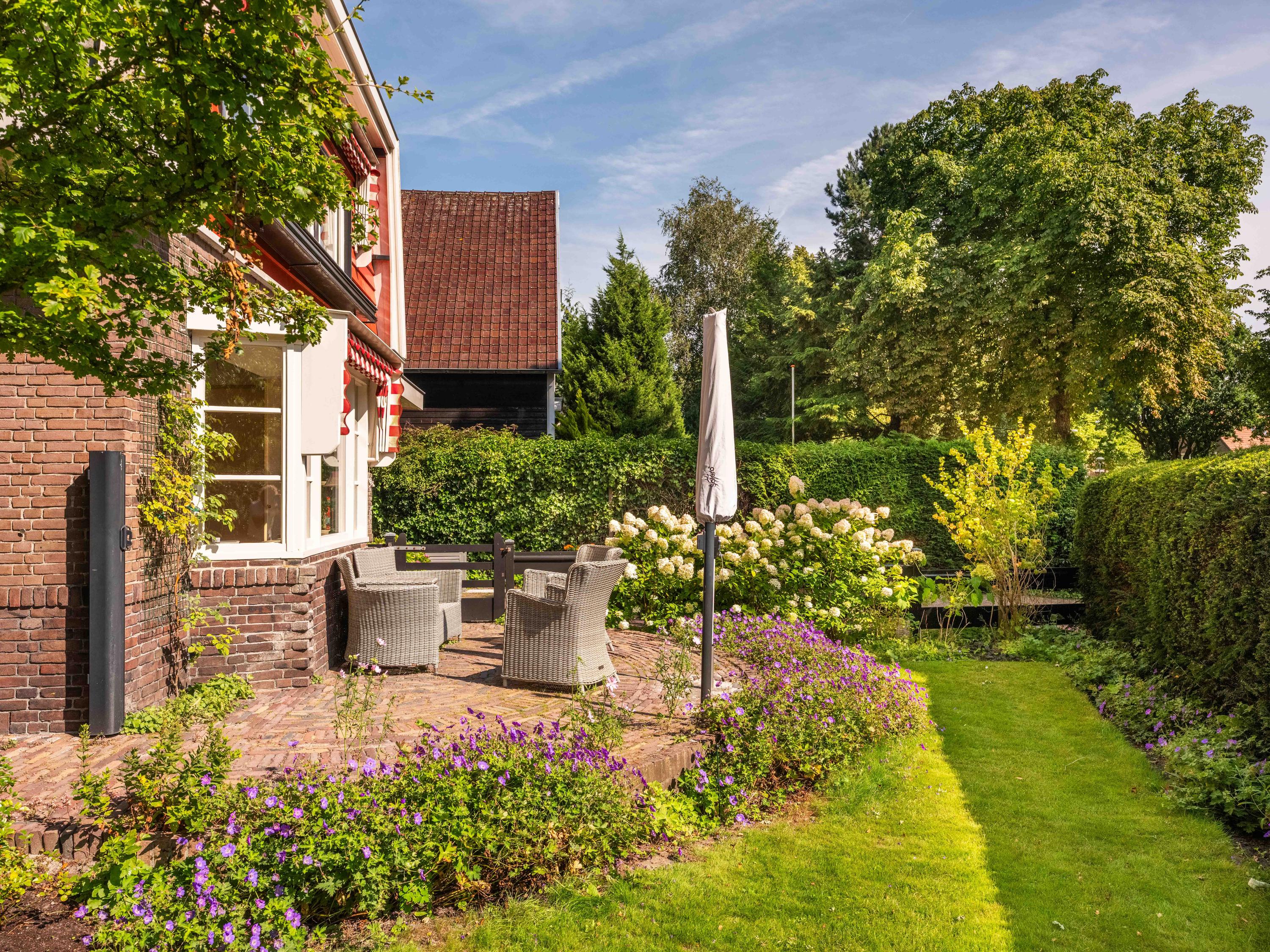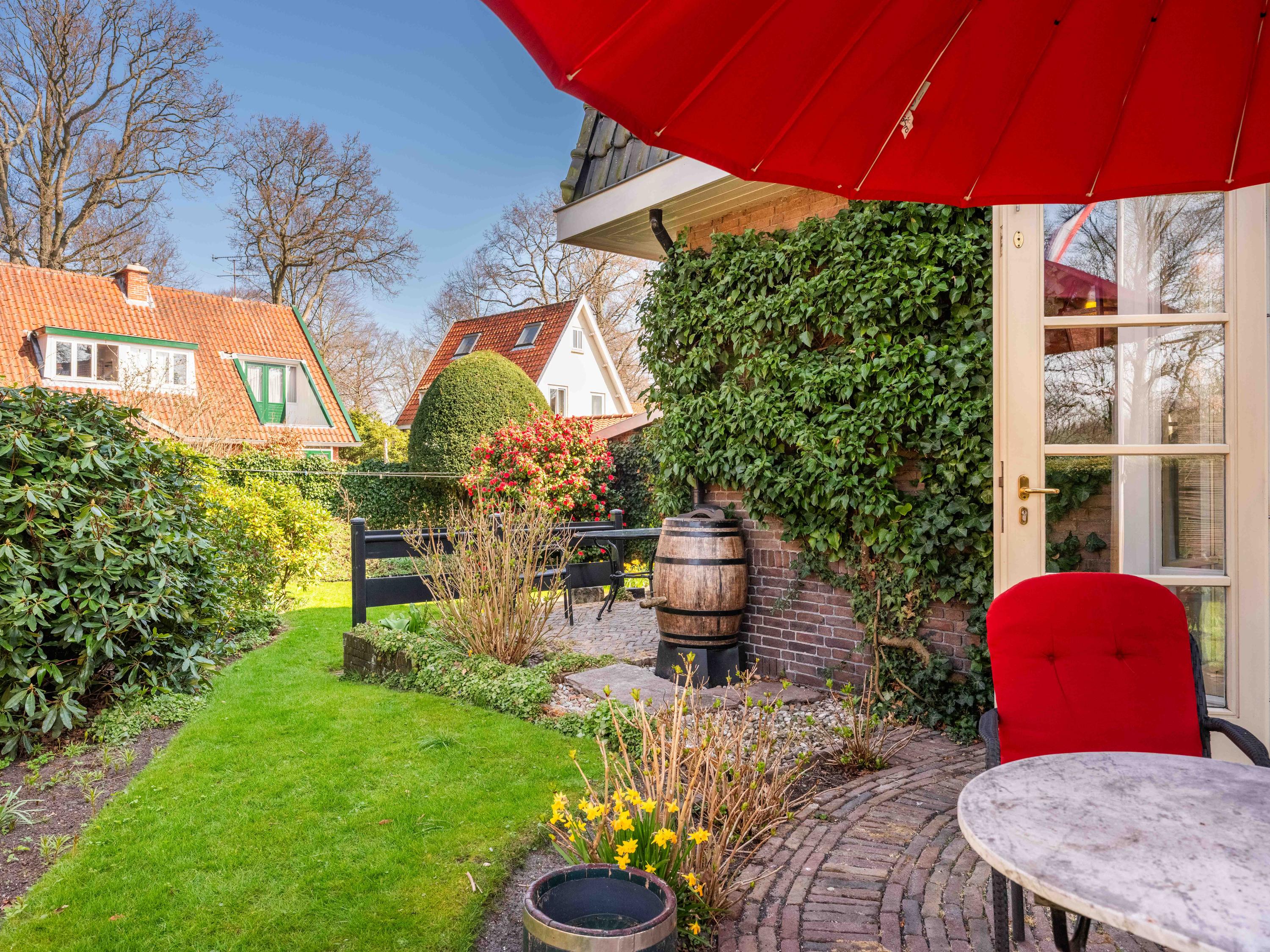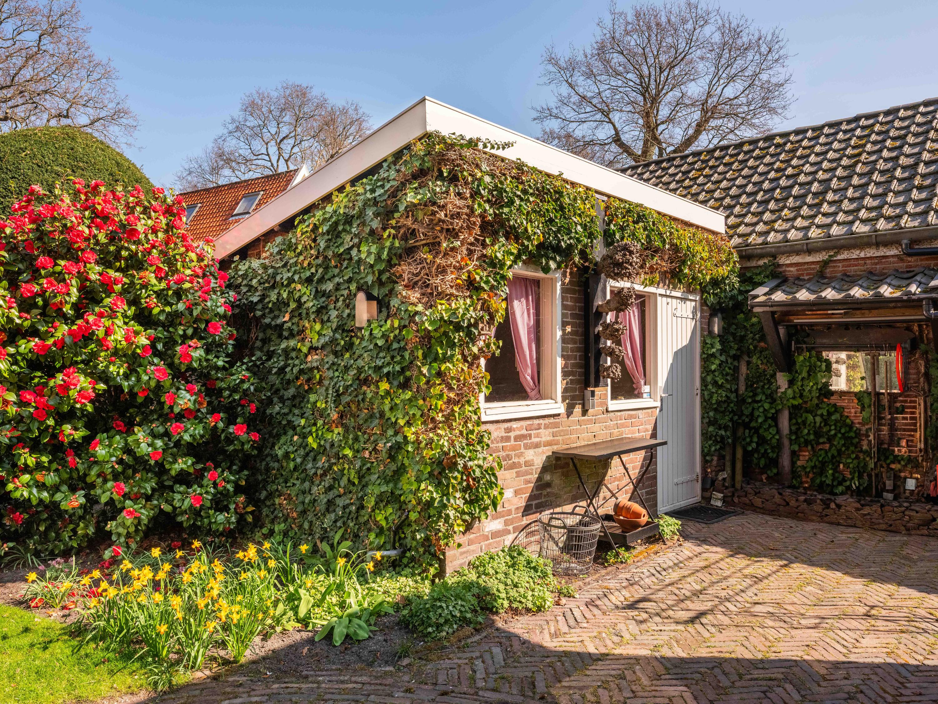 Fietsen, gereedschappen en tuingerei kunt u kwijt in de vrijstaande berging met elektra, water en verwarming. Heel bijzonder is de aanwezigheid van een oude bunker, deze is nog steeds toegankelijk, de huidige bewoners gebruiken deze voor het opslaan van de tuinstoelen.