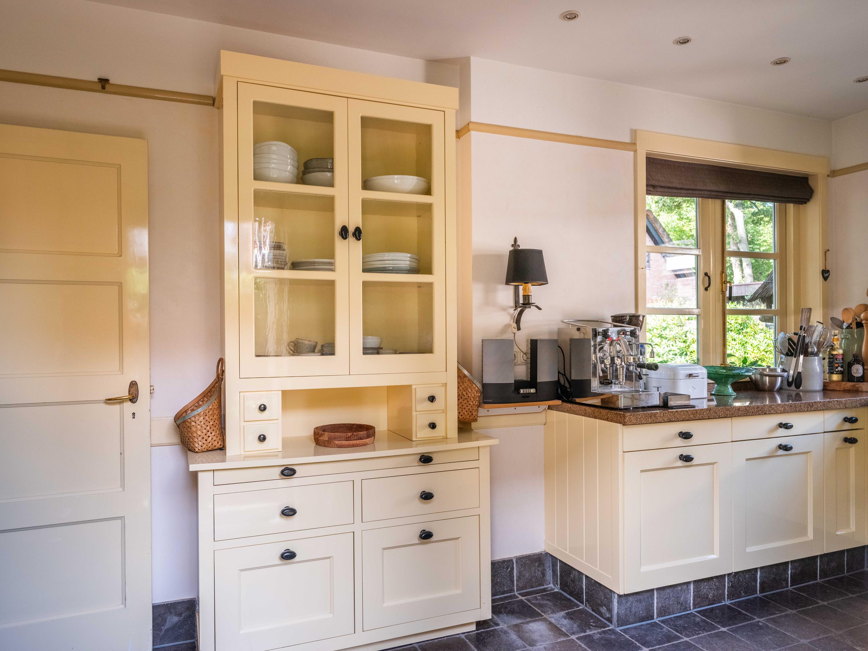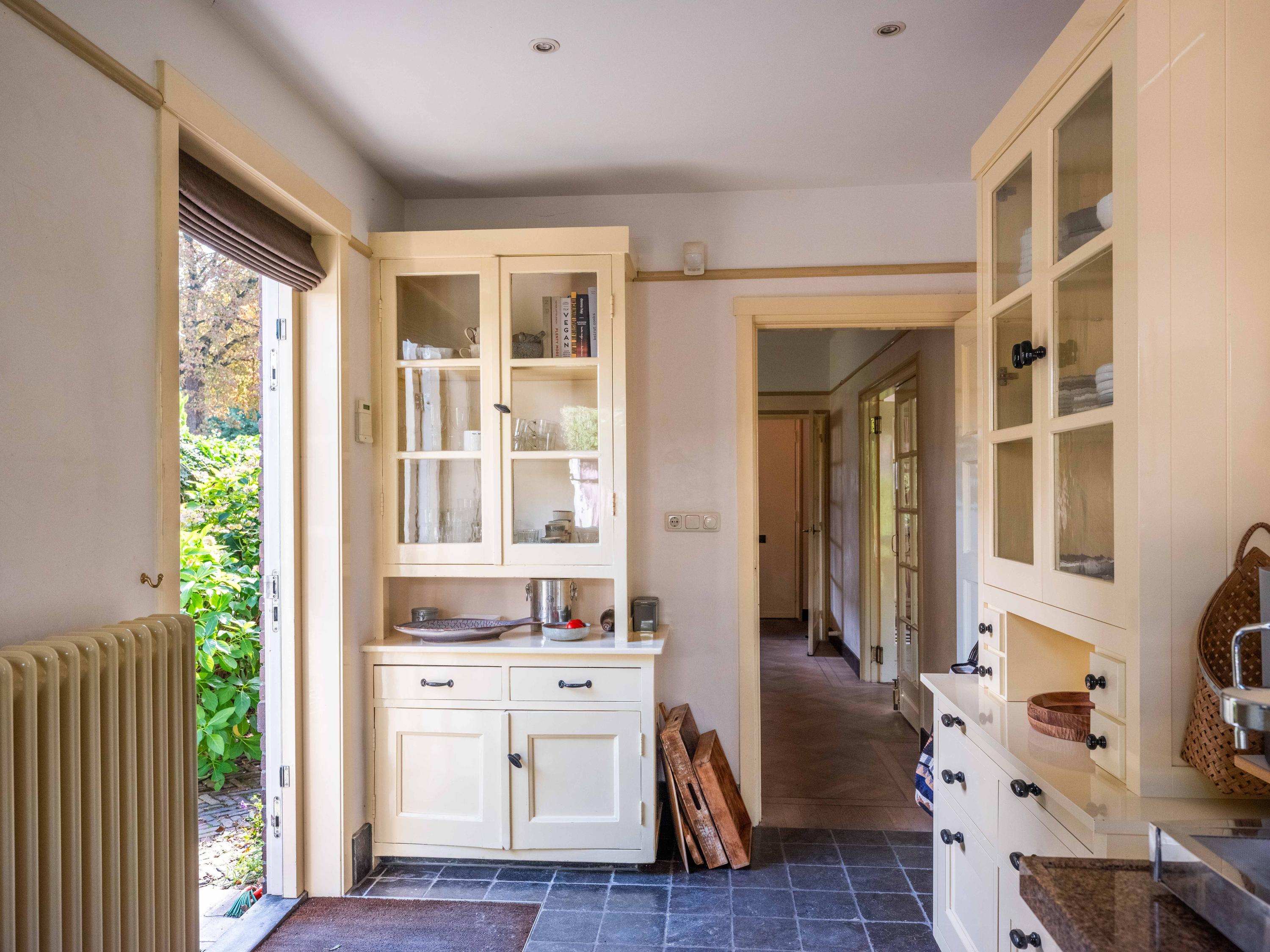 Via de rode voordeur en tussenhal met meterkast stapt u dit charmante huis binnen. De gang met trap naar de verdieping, een toilet en een grote provisieruimte onder de trap, loopt door in de keuken. Deze is voorzien van diverse inbouwapparatuur zoals o.a. ceramische kookplaat, combimagnetron, koelkast en vaatwasser. De keuken is ook buitenom te bereiken via een deur aan de zijkant van het huis.