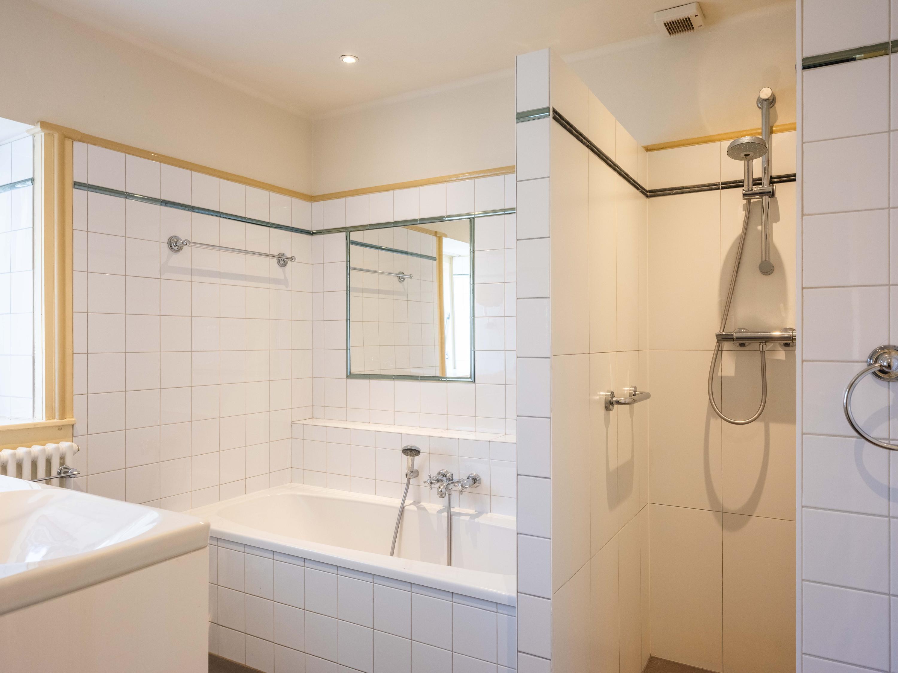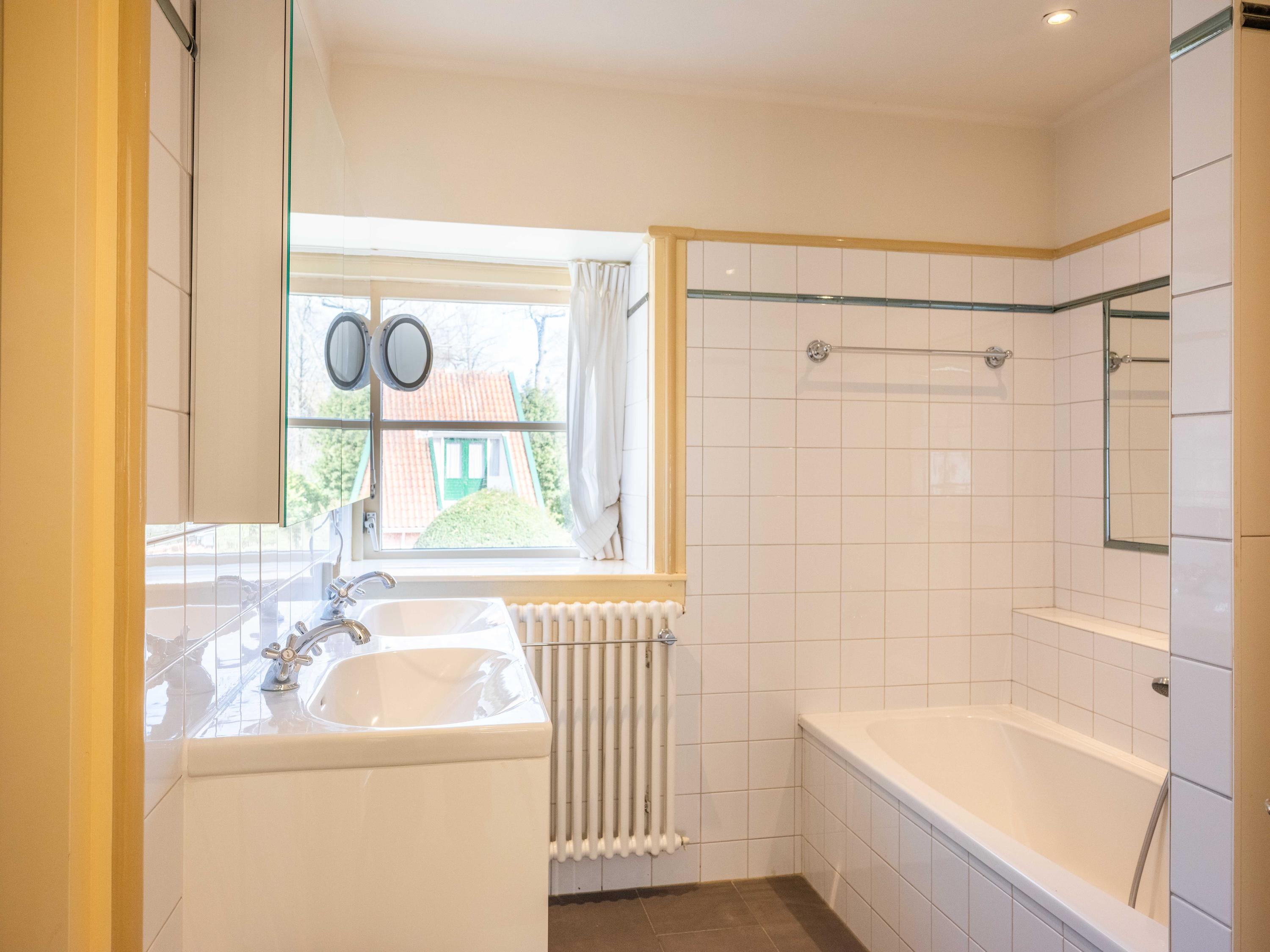 Op de verdieping zijn 3 slaapkamers te vinden waarvan 1 met wastafel. De slaapkamer aan de achterzijde heeft tevens toegang tot de badkamer. De badkamer is voorzien van een dubbele wastafel, een ligbad en inloopdouche. Aan de overloop is een separaat toilet gelegen.