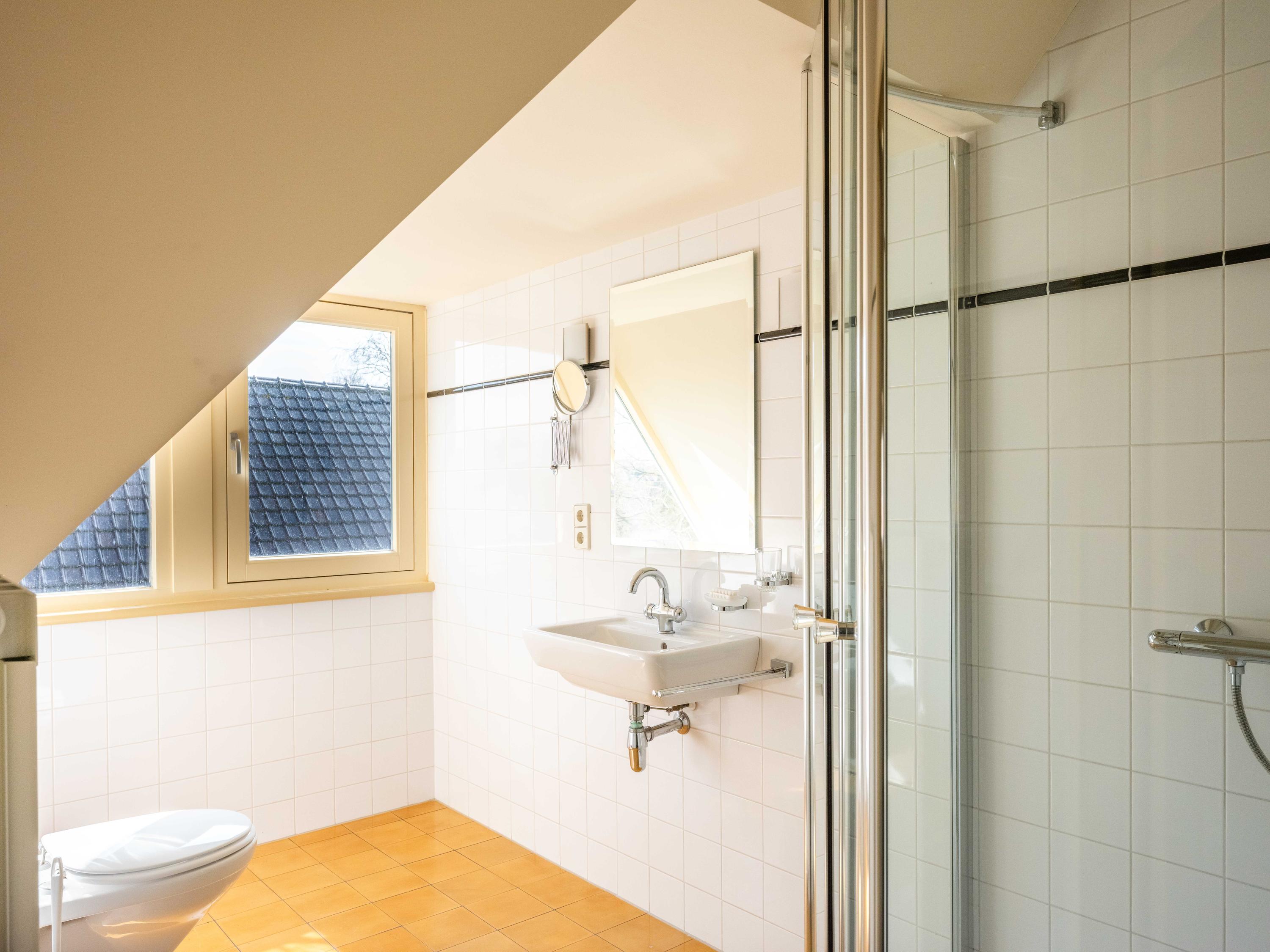 Een vaste trap geeft toegang aan de tweede verdieping, hier is een 4e kamer te vinden, te gebruiken als slaapkamer, werkkamer of studio. Tevens is hier een tweede badkamer met hoekdouche, wastafel en toilet te vinden. In de bergruimte bevindt zich de cv-ketel.