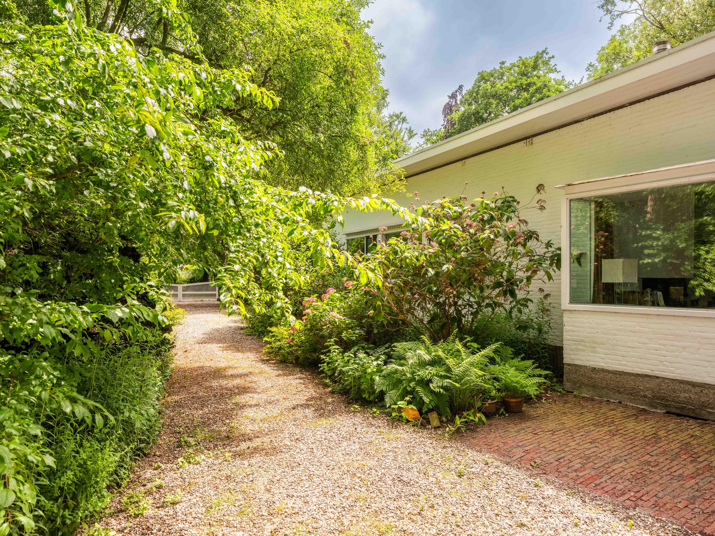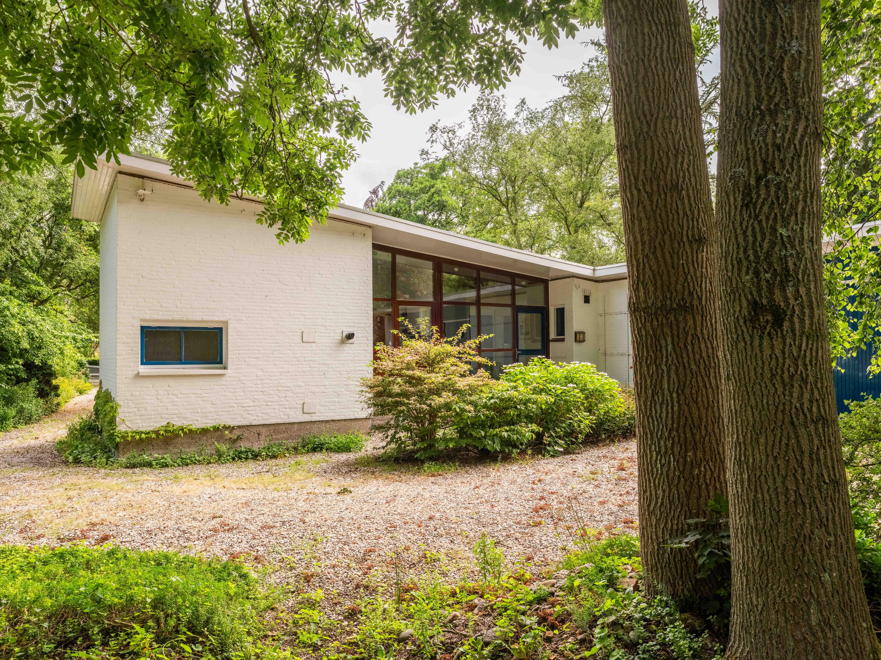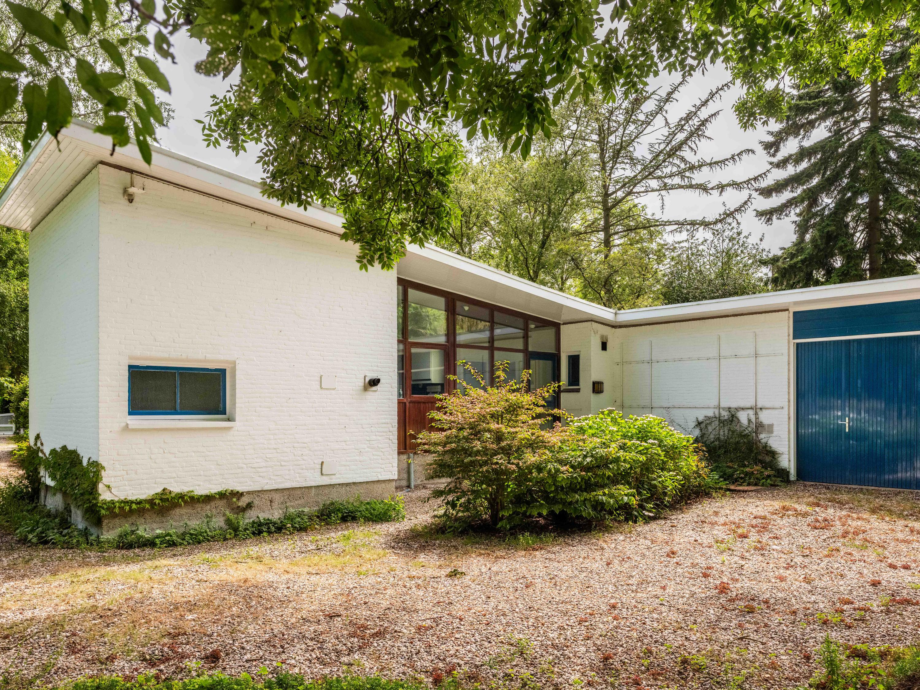 Licht, lucht en ruimte zijn de sleutelwoorden van deze woning, gebouwd in de jaren '50 en sindsdien zorgvuldig onderhouden. De principes van de Nieuwe Zakelijkheid komen tot uiting in de platte daken, strakke lijnen en de naadloze verbinding tussen binnen en buiten. De grote schuifpui in de woonkamer vervaagt de grens tussen interieur en exterieur, terwijl de loggia een perfecte overgang biedt naar de omringende natuur. U dient hier zelf wel nog hedendaags woongenot en enige luxe aan toe te voegen, maar dan krijgt u ook wat.