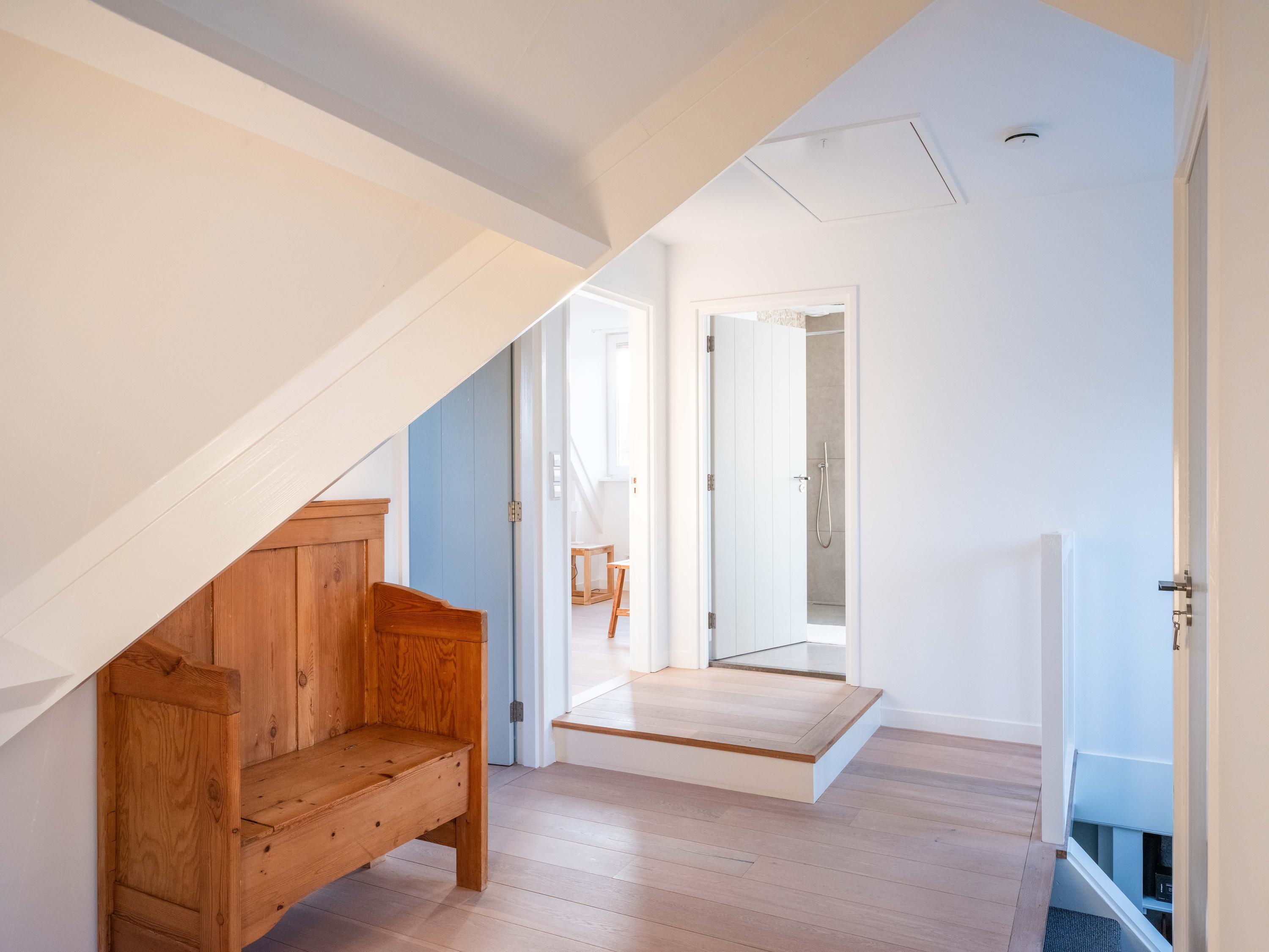 De eerste verdieping biedt door de dakkapellen drie goed bemeten slaapkamers, elk met een eigen sfeer en voorzien van maatwerkkasten. De luxe badkamer is stijlvol afgewerkt met natuurlijke materialen, en ook hier is gekozen voor kwaliteit en rust. In het hele huis is duidelijk zichtbaar dat er met zorg en smaak is gewerkt aan een harmonieus geheel.