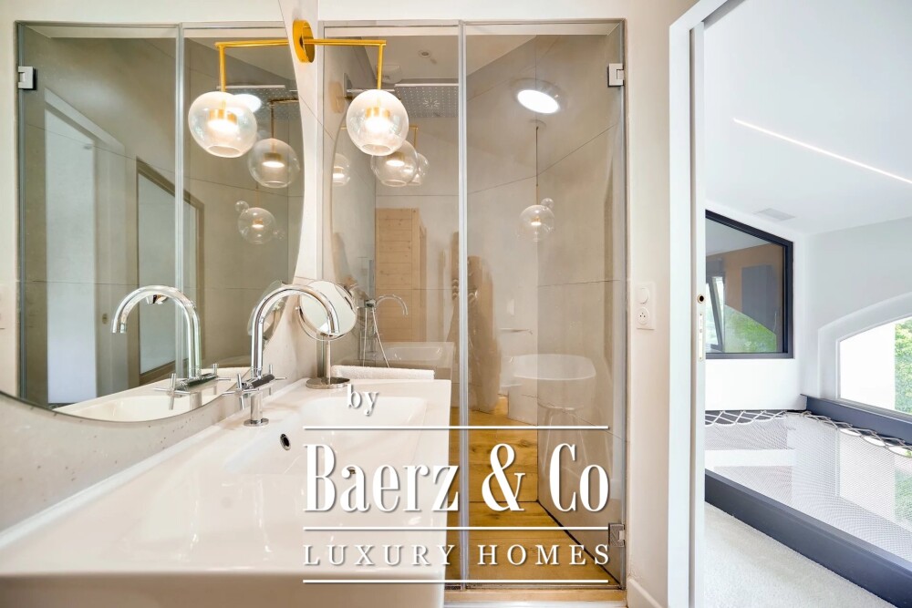 Op de bovenverdieping bieden twee royale slaapkamers doordachte opbergruimte, waarvan één met de mogelijkheid voor een entresol, terwijl een 12 m² groot zwevend leefnet uitnodigt tot rust. De badkamer is verfijnd afgewerkt met een sauna en een Japans toilet. Door het hele appartement zijn op maat gemaakte houtbewerking en hoogwaardig meubilair perfect in balans, waardoor het originele architectonische karakter harmonieus samengaat met ingetogen moderniteit.