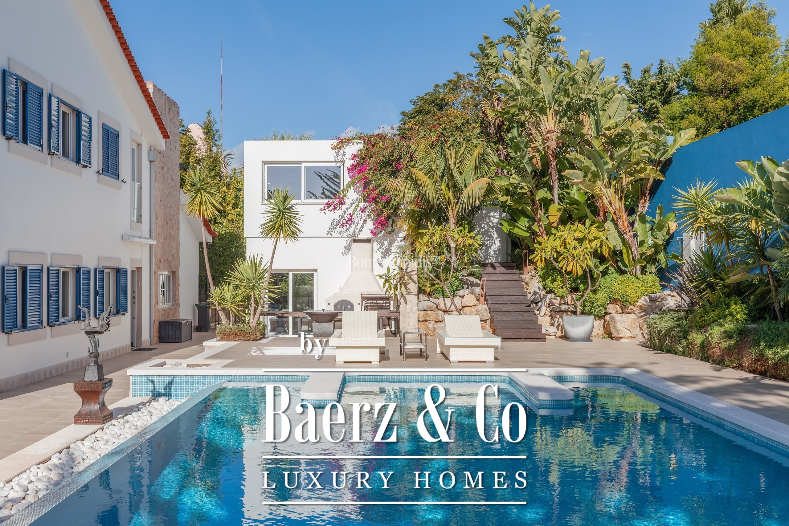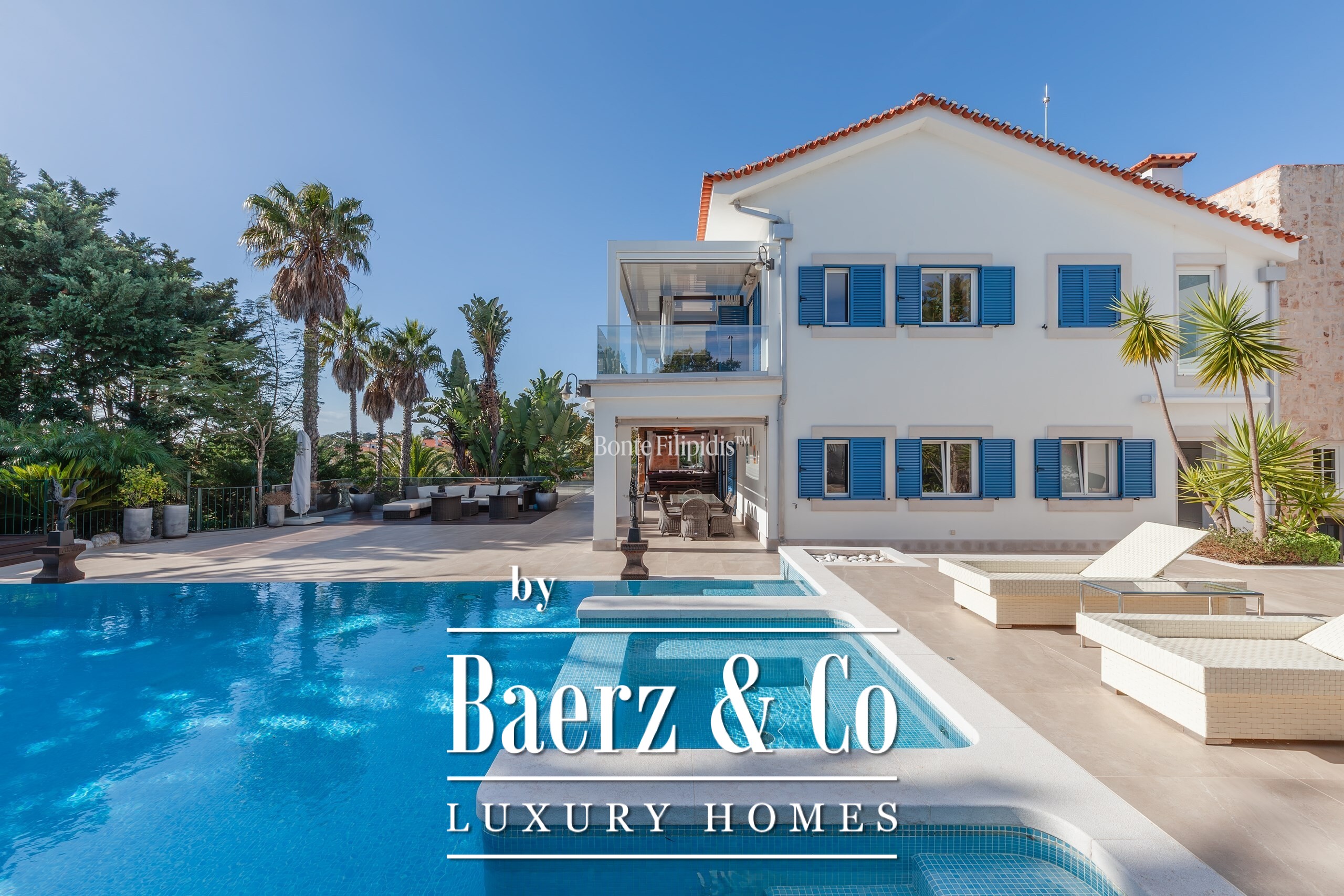 Villa Cascais e Estoril ligt op een uitzonderlijk perceel van 2.100 m² op het hoogste punt van Estoril en creëert een zeldzame balans tussen beslotenheid en comfort. Deze villa bevindt zich tussen de gerenommeerde Estoril Golf Course en directe, exclusieve toegang tot de Estoril Tennis Club; een harmonieuze combinatie van privacy en verbondenheid. Over twee verdiepingen ontvouwt zich het zeezicht, terwijl royale terrassen de tuin verdelen in diverse leefruimtes, voorzien van overdekte zitplekken, een vijver, waterval, jacuzzi en verwarmd zoutwaterzwembad voor een serene ambiance.