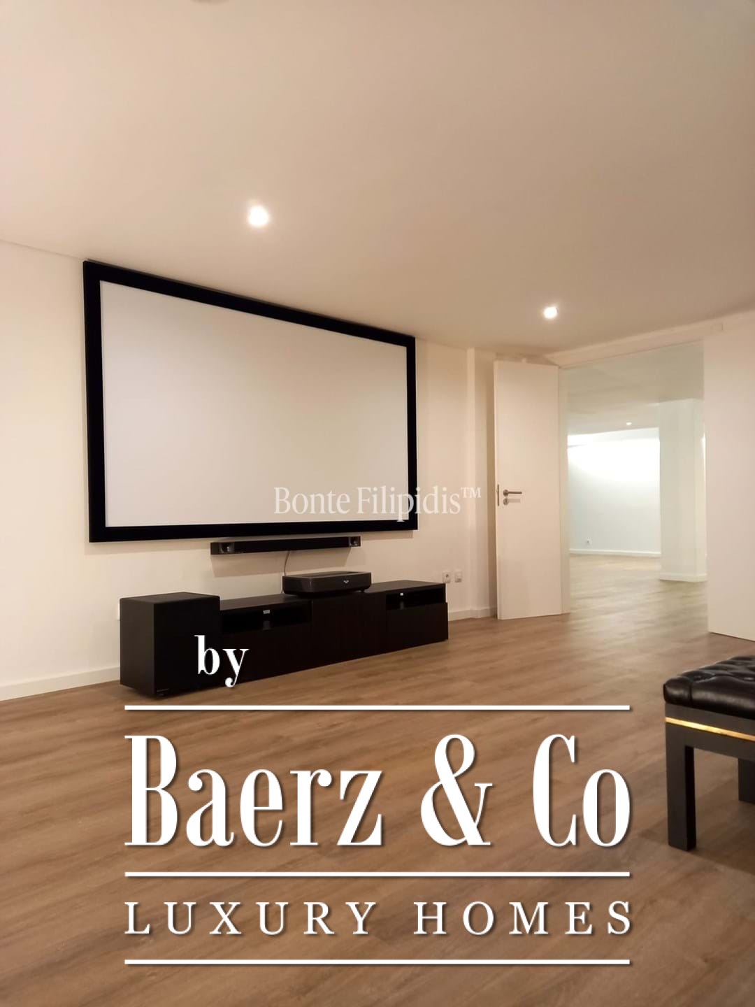 Op de benedenverdieping is veelzijdigheid troef. De garage van 61,49 m², een personeels- of logeersuite met eigen toegang vanaf de straat, een homecinema van 31,29 m², een entertainmentruimte van 74,39 m² en een wijnkelder van 31,59 m² bieden samen een as voor ontspanning en privacy. Multifunctionele ruimtes kunnen dienstdoen als fitness, spa of speelkamer, afhankelijk van de behoefte. Door het hele huis garanderen vloerverwarming, airconditioning, ook in het souterrain, en voorgeïnstalleerde home-entertainmentsystemen een verfijnde en comfortabele leefomgeving. De lokale voorzieningen—dichtbij restaurants, stranden, golfbanen, scholen en stedelijke verbindingen—maken het plaatje voor eigentijds wonen in deze villa in Cascais e Estoril compleet.