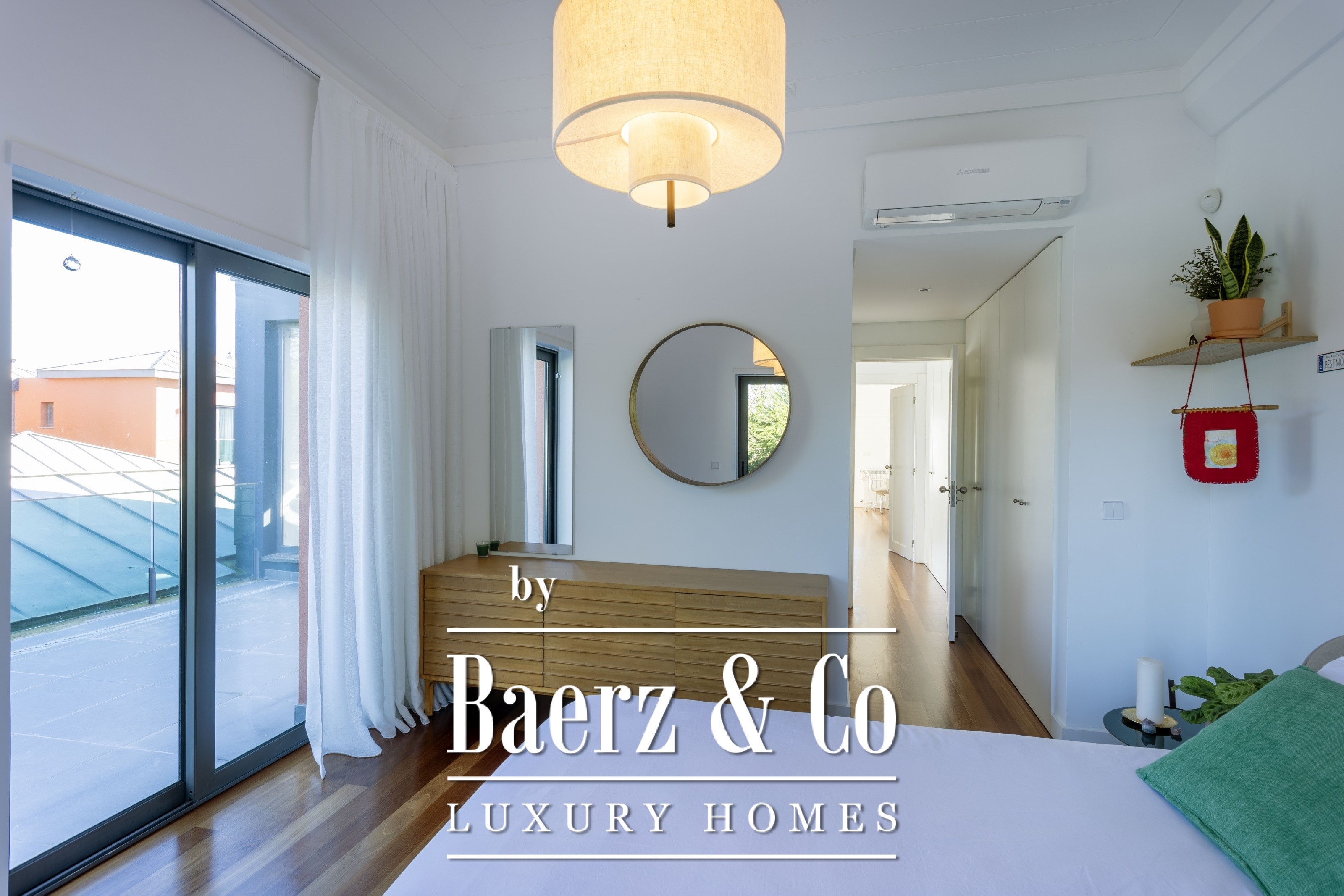 House Cascais ligt discreet in Marinha Garden Residences, binnen Quinta da Bicuda, en biedt 213 m² zorgvuldig ontworpen woonoppervlak plus 91 m² extra ruimte voor een garage en balkons. Deze woning verdeelt drie ruime suites en een extra slaapkamer van 23 m² over drie verdiepingen. De indeling loopt vloeiend over van de compleet ingerichte keuken van 15,80 m² naar de woonkamer van 36 m², waarbij beide vertrekken direct toegang geven tot een privé tuin. De eetkamer, met een oppervlakte van 22 m², staat eveneens in directe verbinding met de tuin en versterkt zo momenten van rust of gezelligheid.