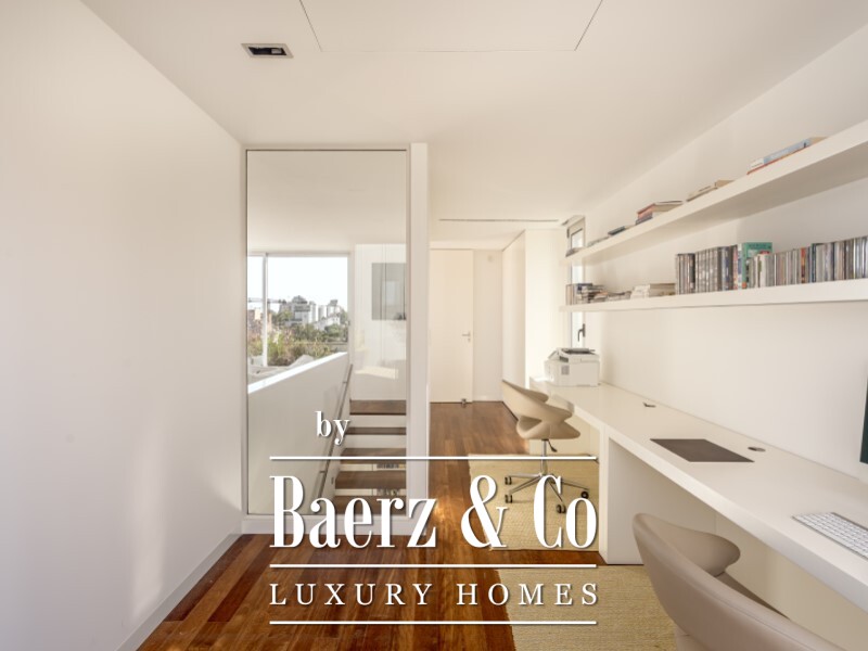 Op de bovengelegen verdieping opent een tweede lichte living direct naar het privé dakterras van ruim 100 m². De aangrenzende multifunctionele ruimte kan uitstekend dienen als thuiskantoor, extra slaapkamer of ontspanningsruimte. Het buitenleven krijgt hier extra allure dankzij panoramische vergezichten over Cascais en de Atlantische Oceaan, waarbij zeldzame privacy wordt geboden voor rust of samenkomsten.