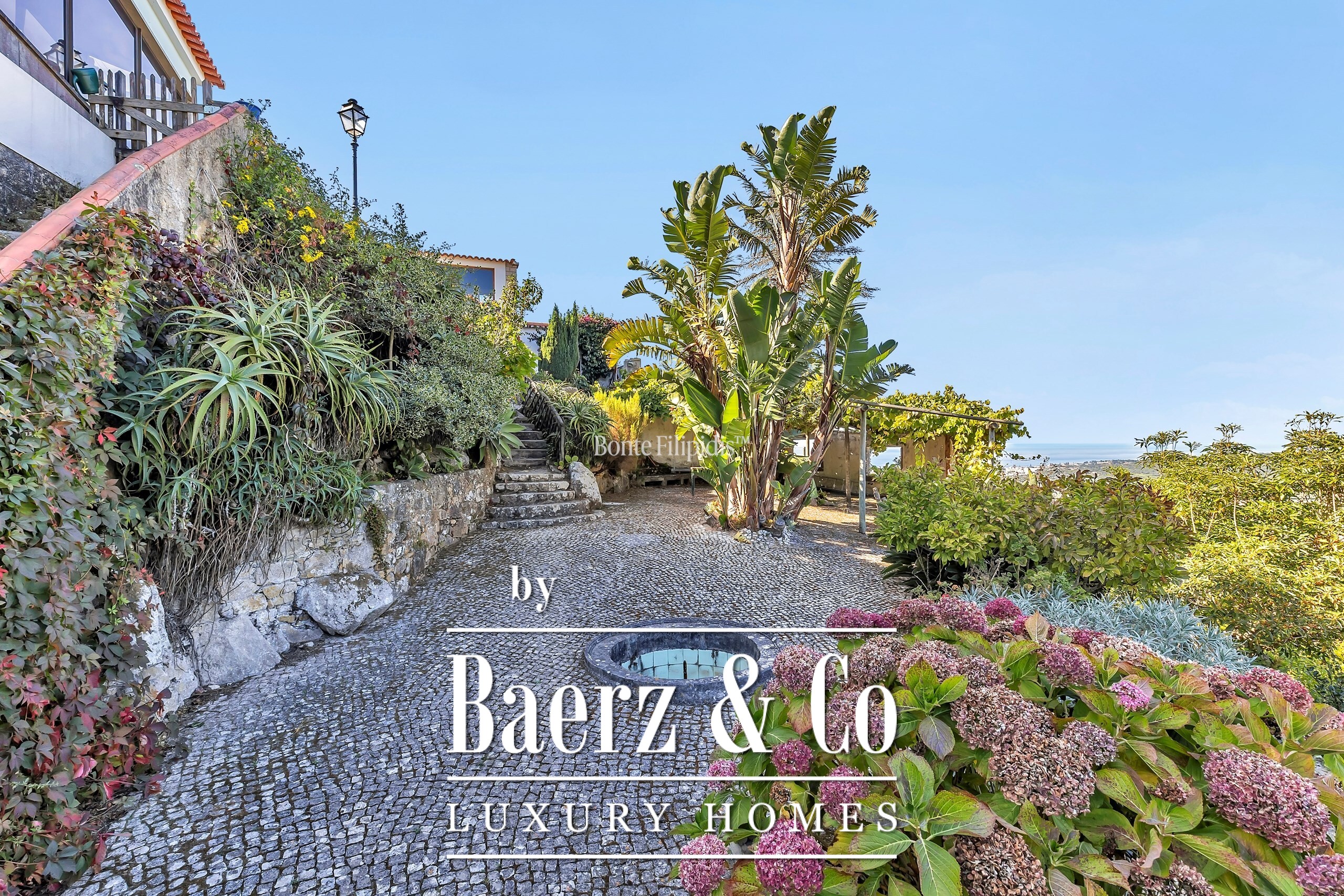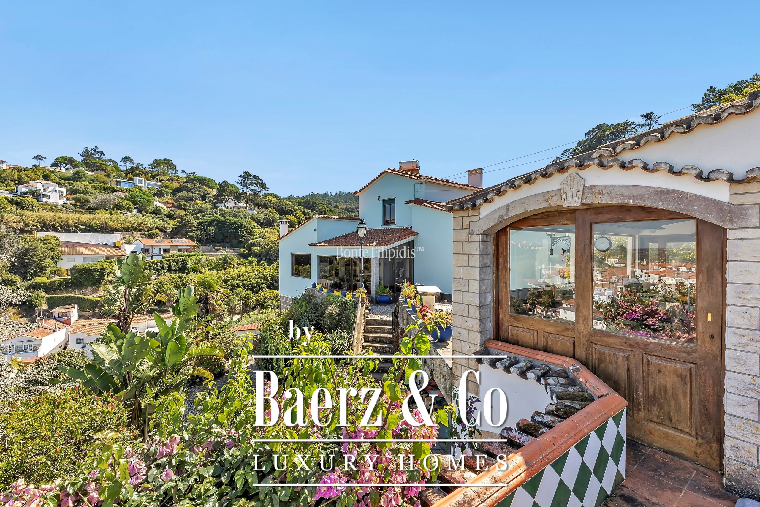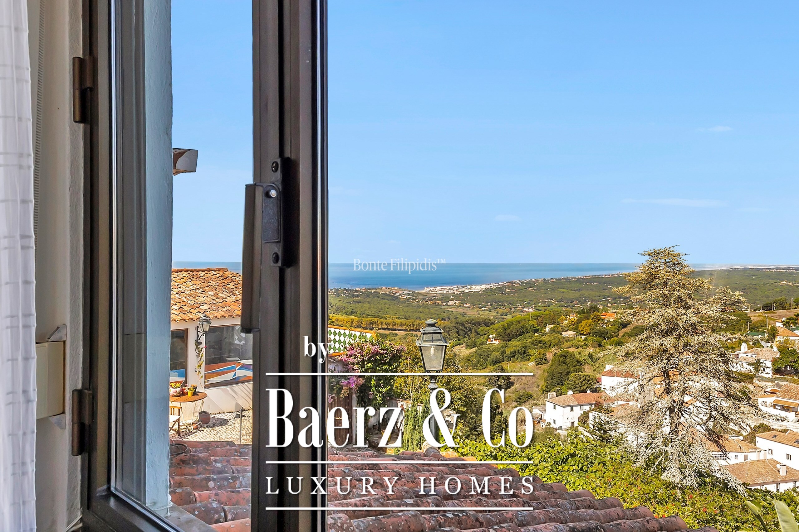 In excellent condition, the property enjoys a tranquil setting with panoramic views over the Sintra Mountains and the Atlantic Ocean, creating a unique atmosphere of well-being and privacy.