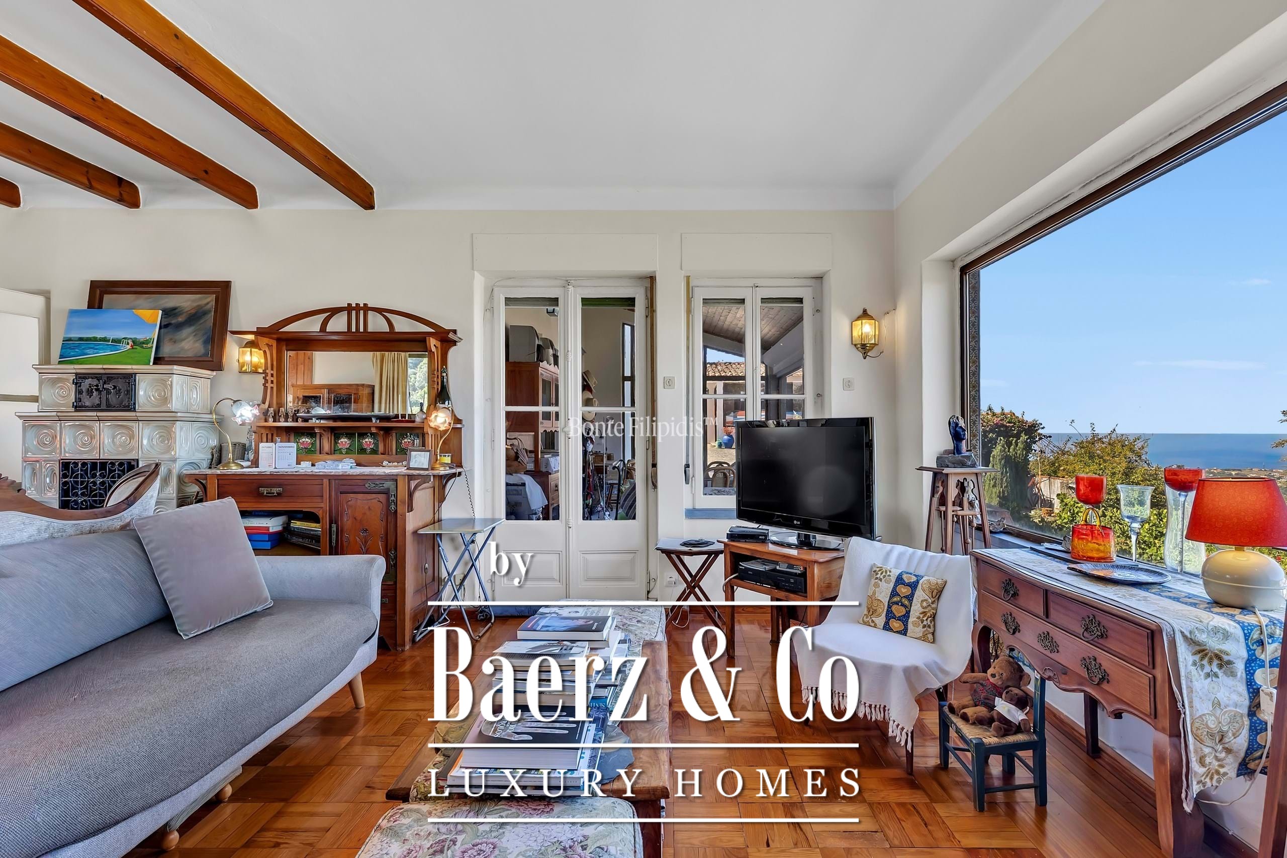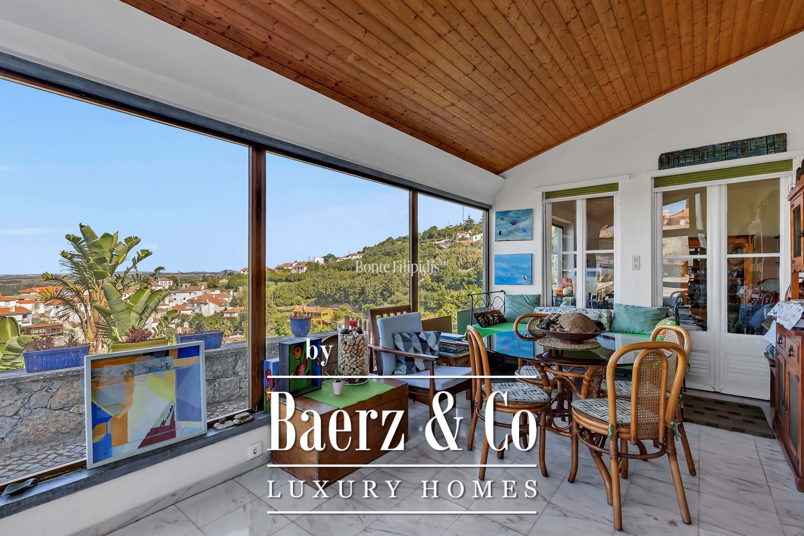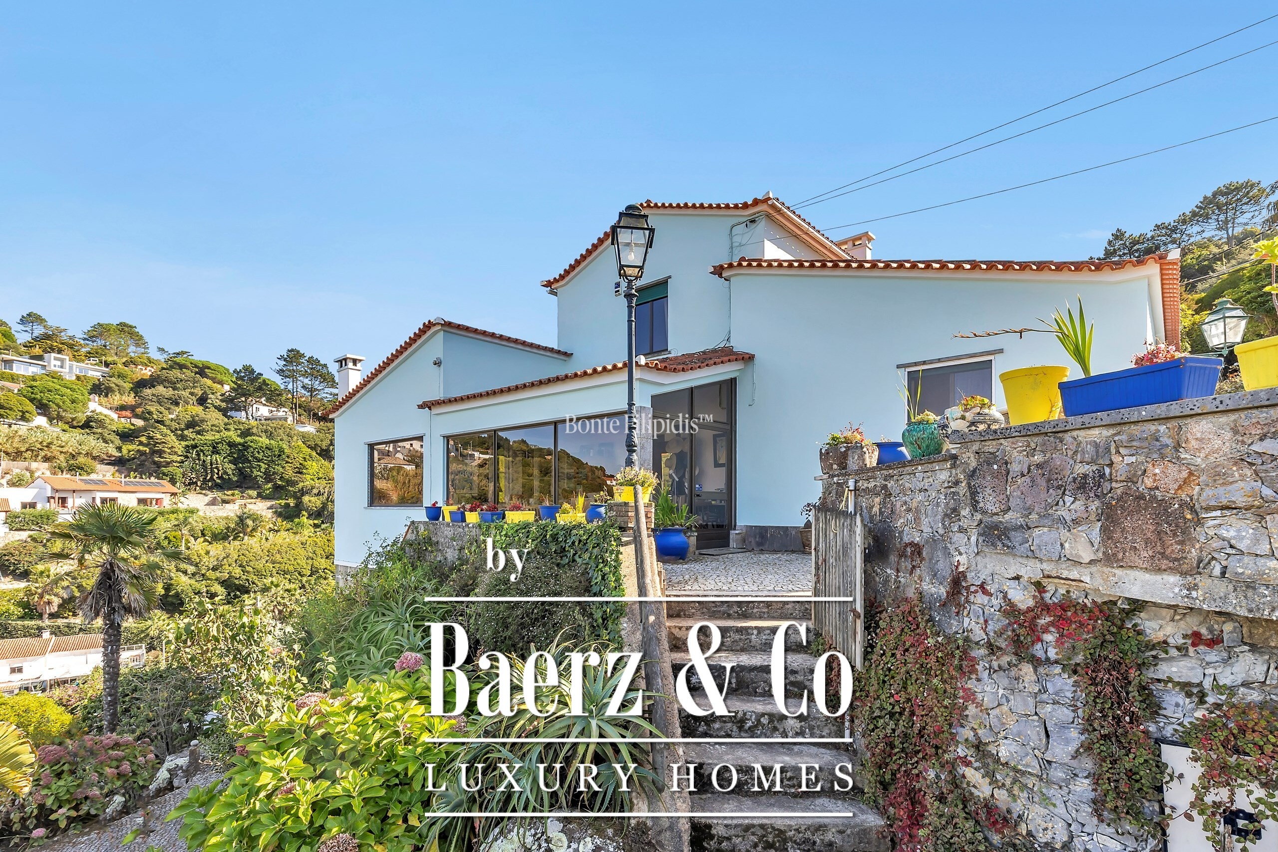 In excellent condition, the property enjoys a tranquil setting with panoramic views over the Sintra Mountains and the Atlantic Ocean, creating a unique atmosphere of well-being and privacy.