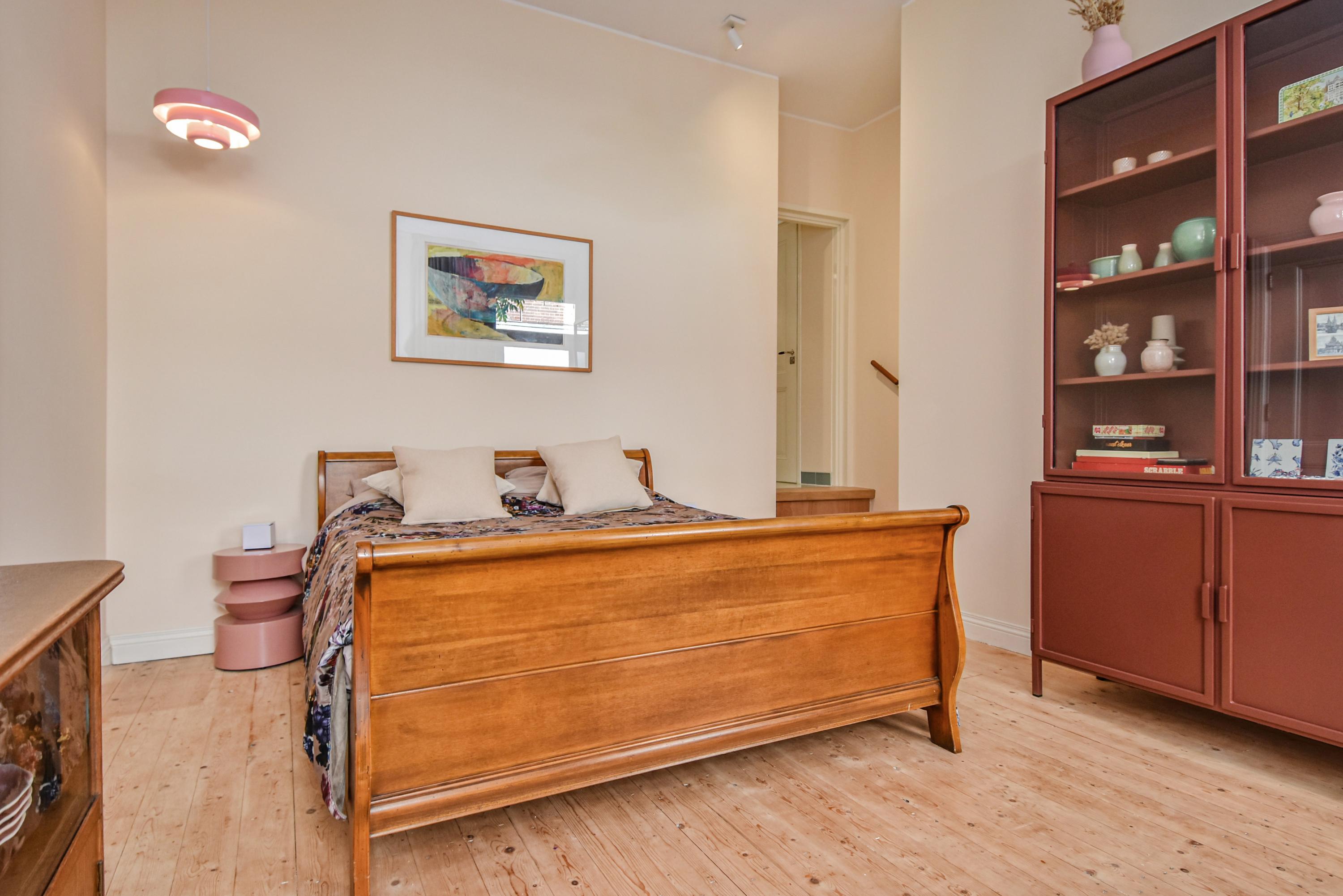 De overloop biedt toegang tot een apart toilet met wastafeltje en een extra kastruimte. De royale, lichte slaapkamer aan de voorzijde heeft een hoog plafond en een prachtig uitzicht over de gracht. Daarnaast zijn er nog twee ruime slaapkamers, waarvan een voorzien van inloopdouche en wastafel. In alle slaapkamers sieren de glas-in-loodramen de vertrekken. Een aparte wasruimte geeft toegang tot de daktuin, een heerlijke, beschutte plek met optimale zonligging. Van ’s ochtends vroeg tot laat in de avond geniet je hier van volop zon, privacy en een sfeervolle, groene setting. Op het terras bevindt zich bovendien een ruime houten berging.