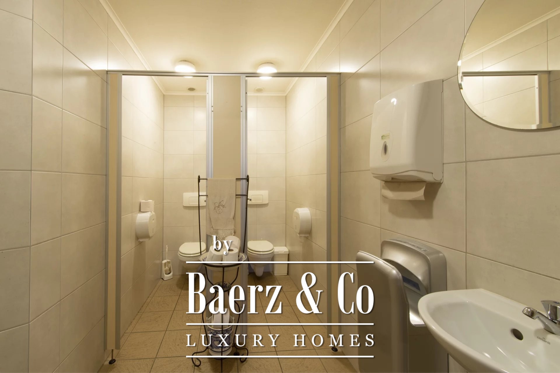 16 m² volkstuin; 8 m² toilet; 6,5 m² wasruimte; slaapkamer; fitnessruimte; berging; 15 m² kleedkamer; tweede slaapkamer van 19 m²; derde slaapkamer van 20 m²; 1,3 m² toilet; 4 m² berging en 55 m² cafégedeelte. Kelders van ongeveer 40 m². Inrichtbare zolder.