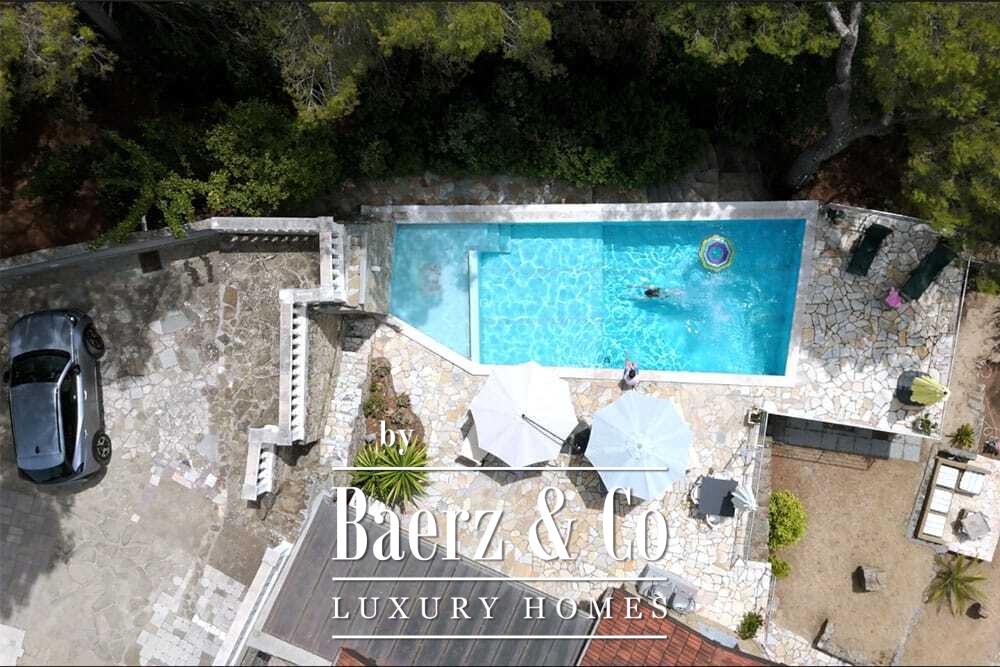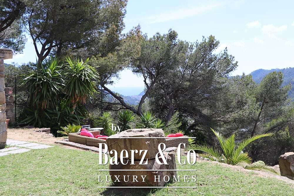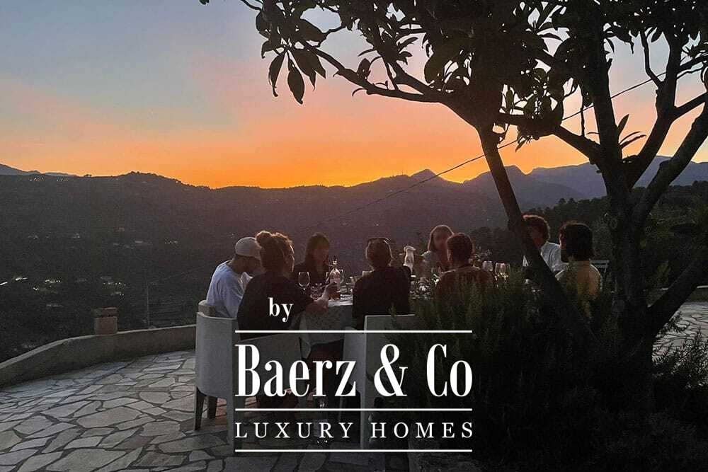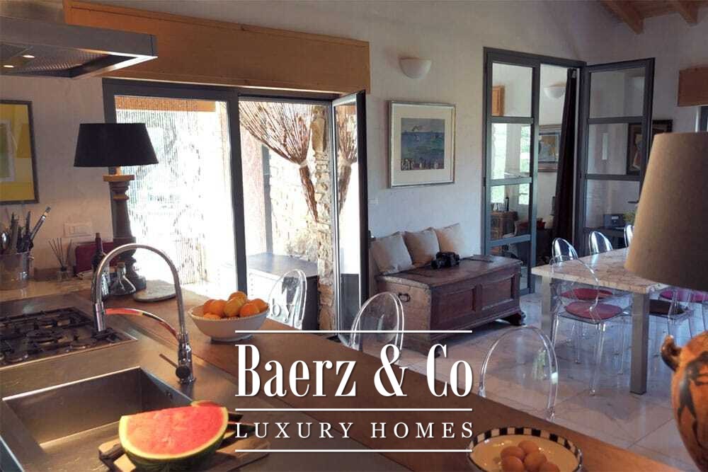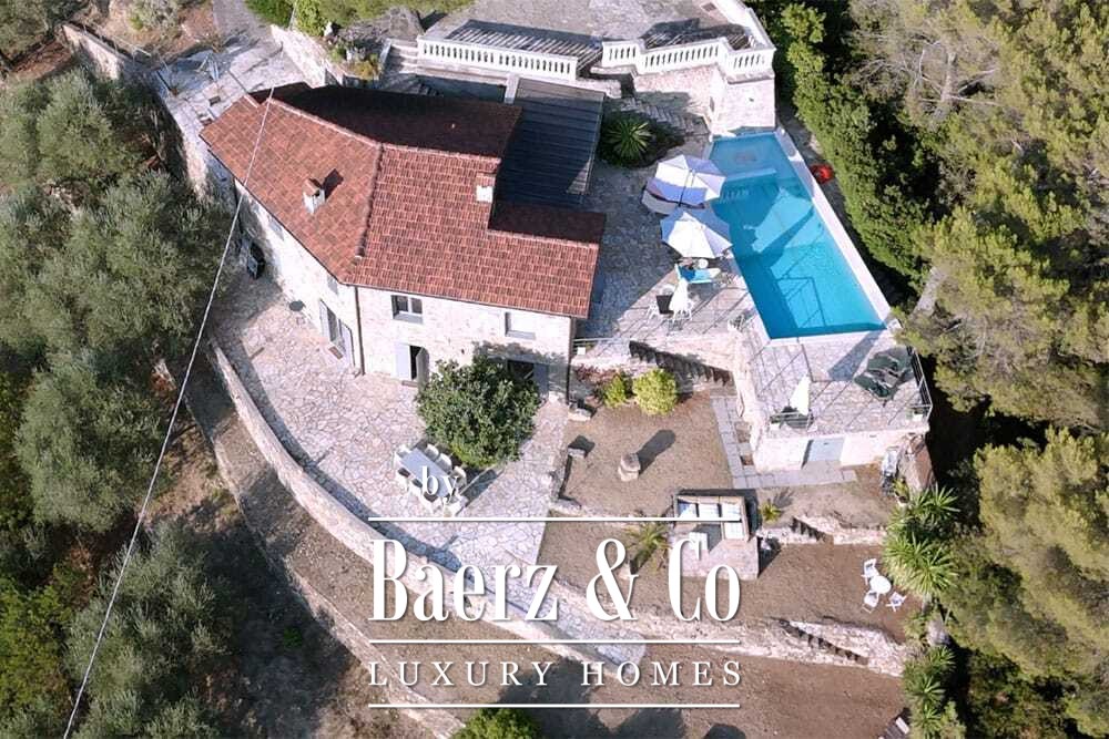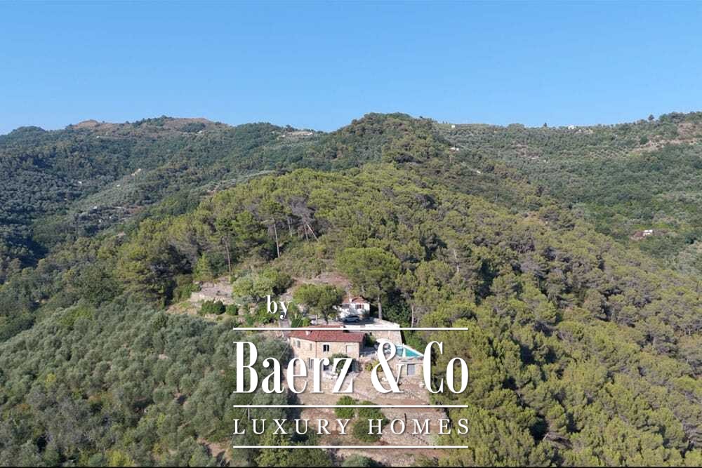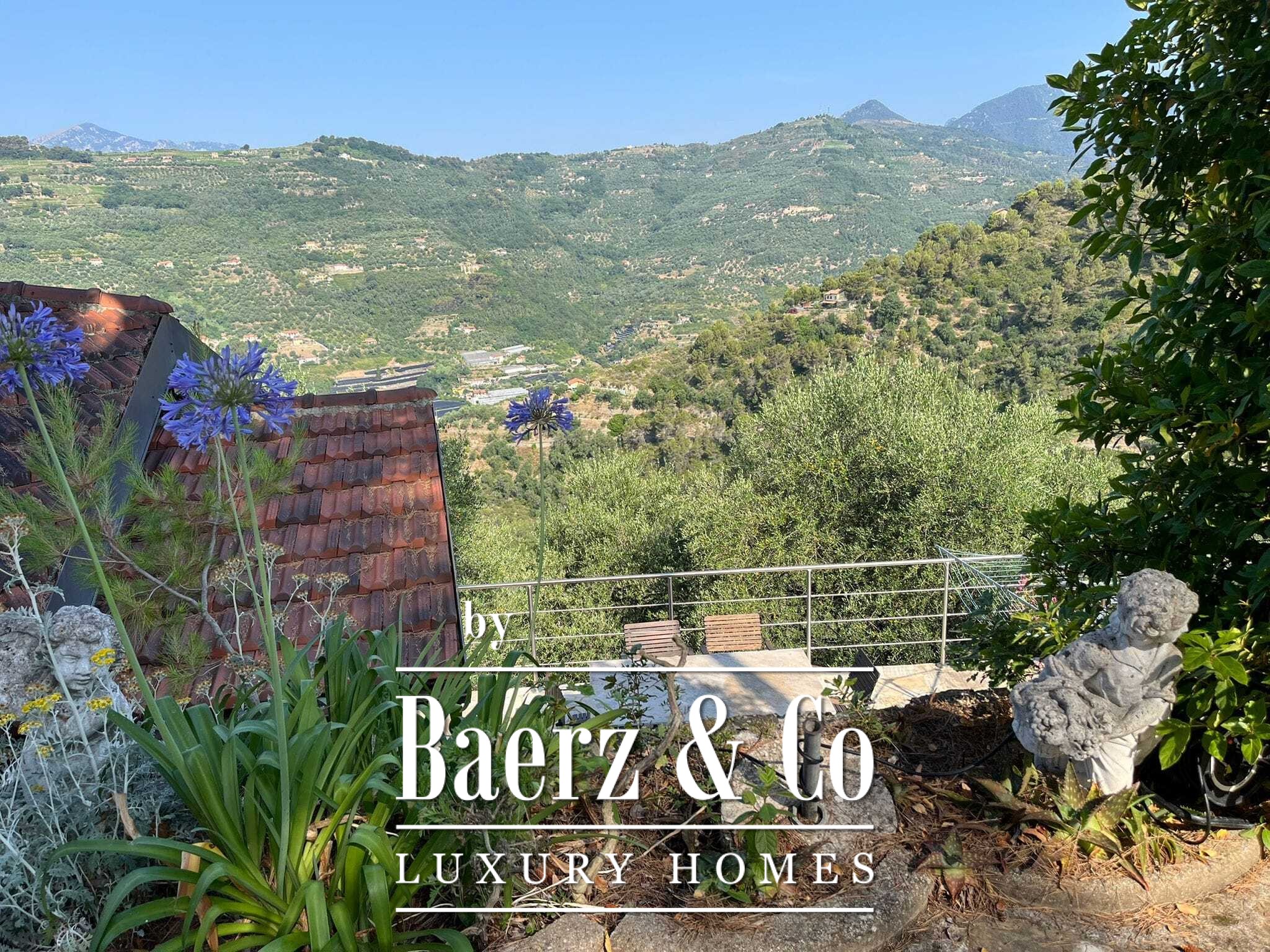 Het zwembad van 11 bij 4 meter, volledig gerenoveerd in 2022, ligt naast een royaal terras met uitzicht over de vallei en de zee. Diverse terrassen, buitenkeukens en schaduwrijke pergola’s nodigen uit tot ontspannen tafelen in alle seizoenen. Paden rondom de woning worden omzoomd door olijfgaarden, waar de vele zonuren zorgen voor een indrukwekkende oogst.