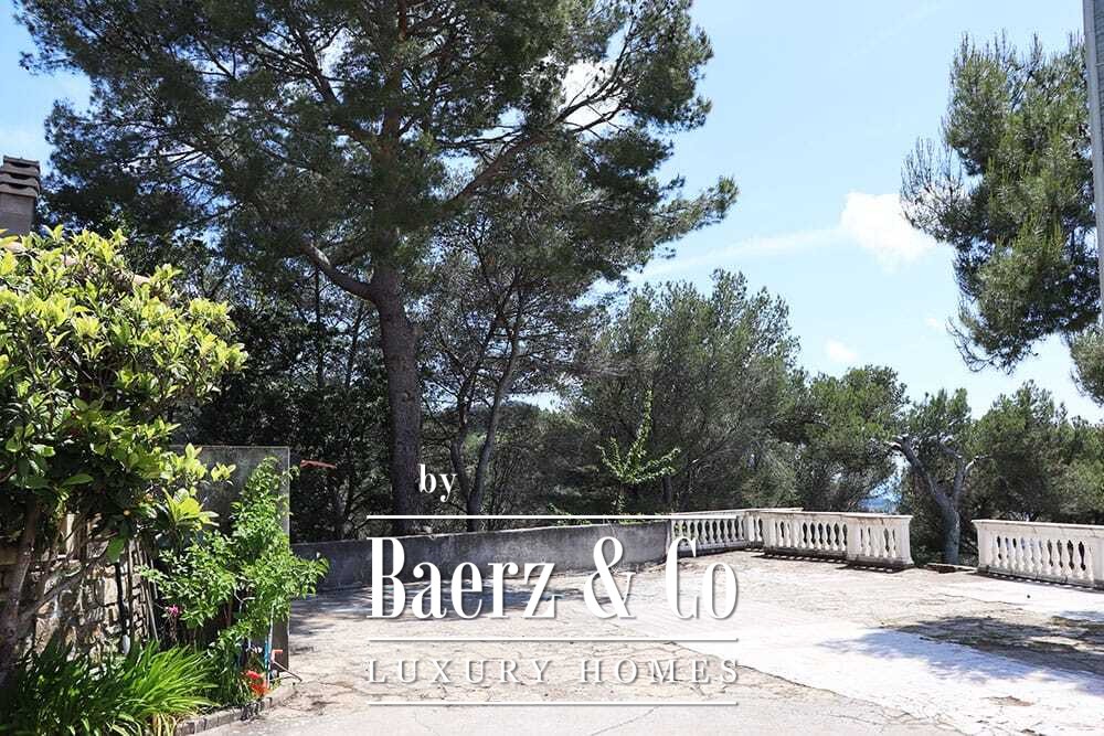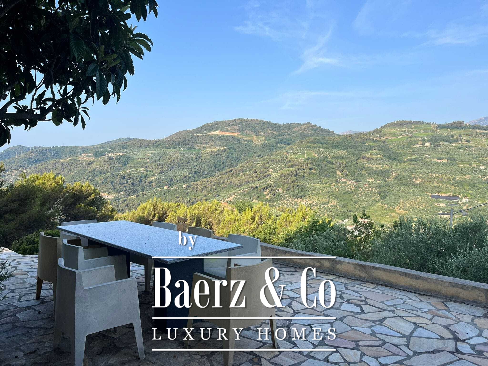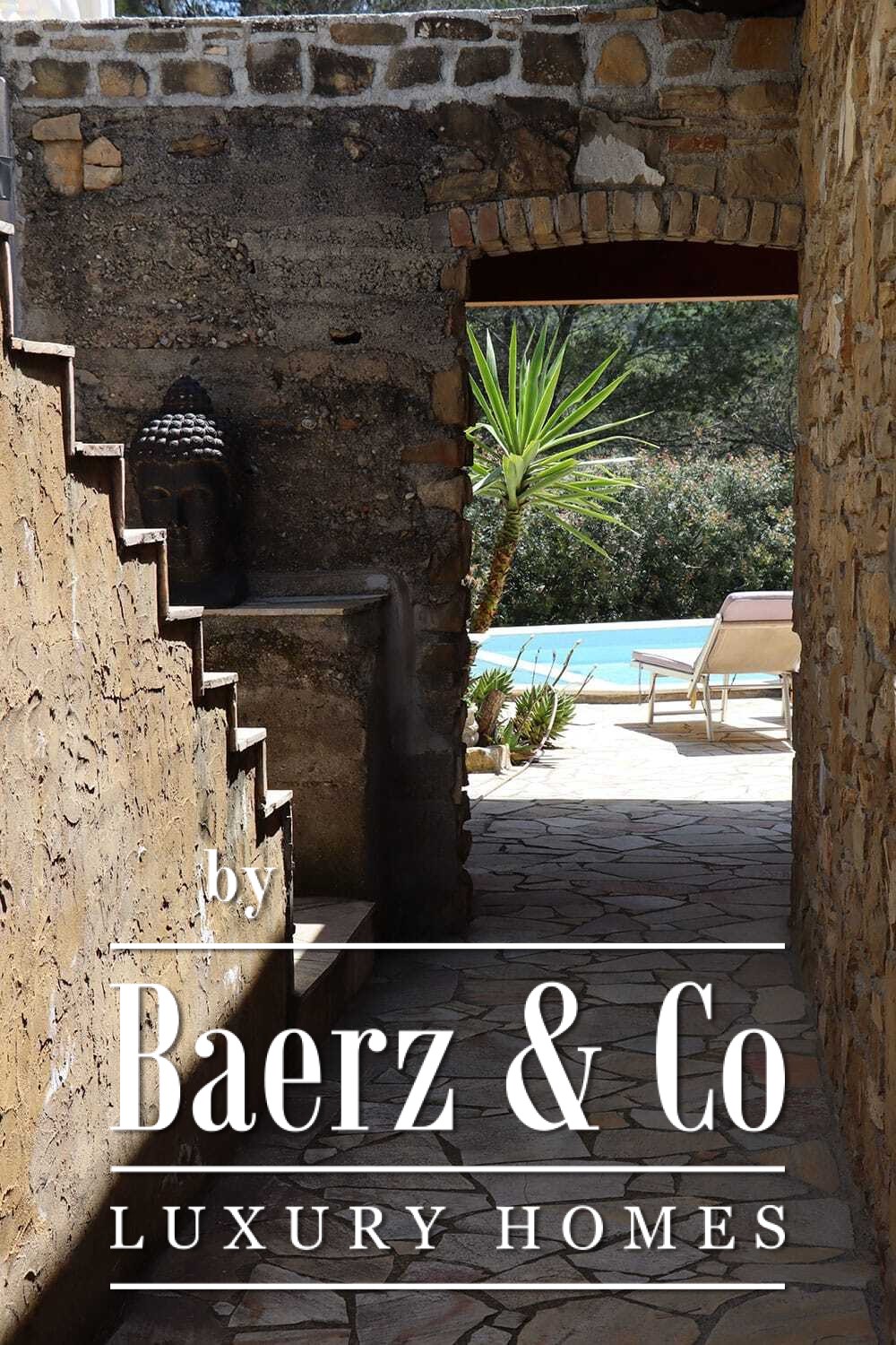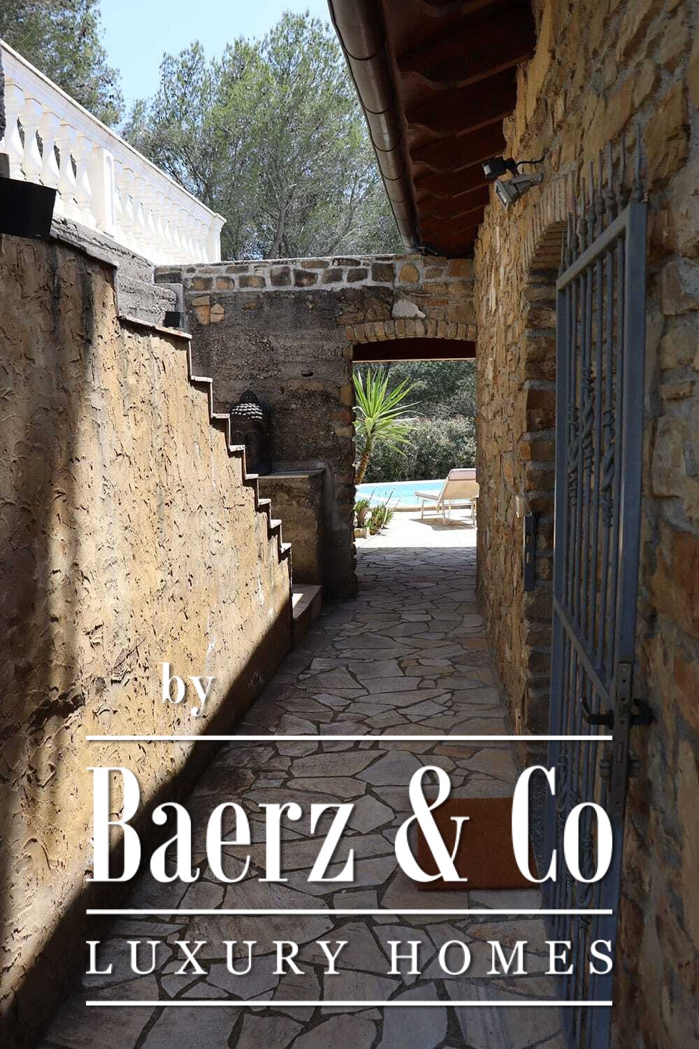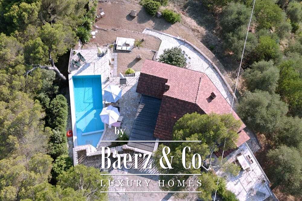 Het zwembad van 11 bij 4 meter, volledig gerenoveerd in 2022, ligt naast een royaal terras met uitzicht over de vallei en de zee. Diverse terrassen, buitenkeukens en schaduwrijke pergola’s nodigen uit tot ontspannen tafelen in alle seizoenen. Paden rondom de woning worden omzoomd door olijfgaarden, waar de vele zonuren zorgen voor een indrukwekkende oogst.