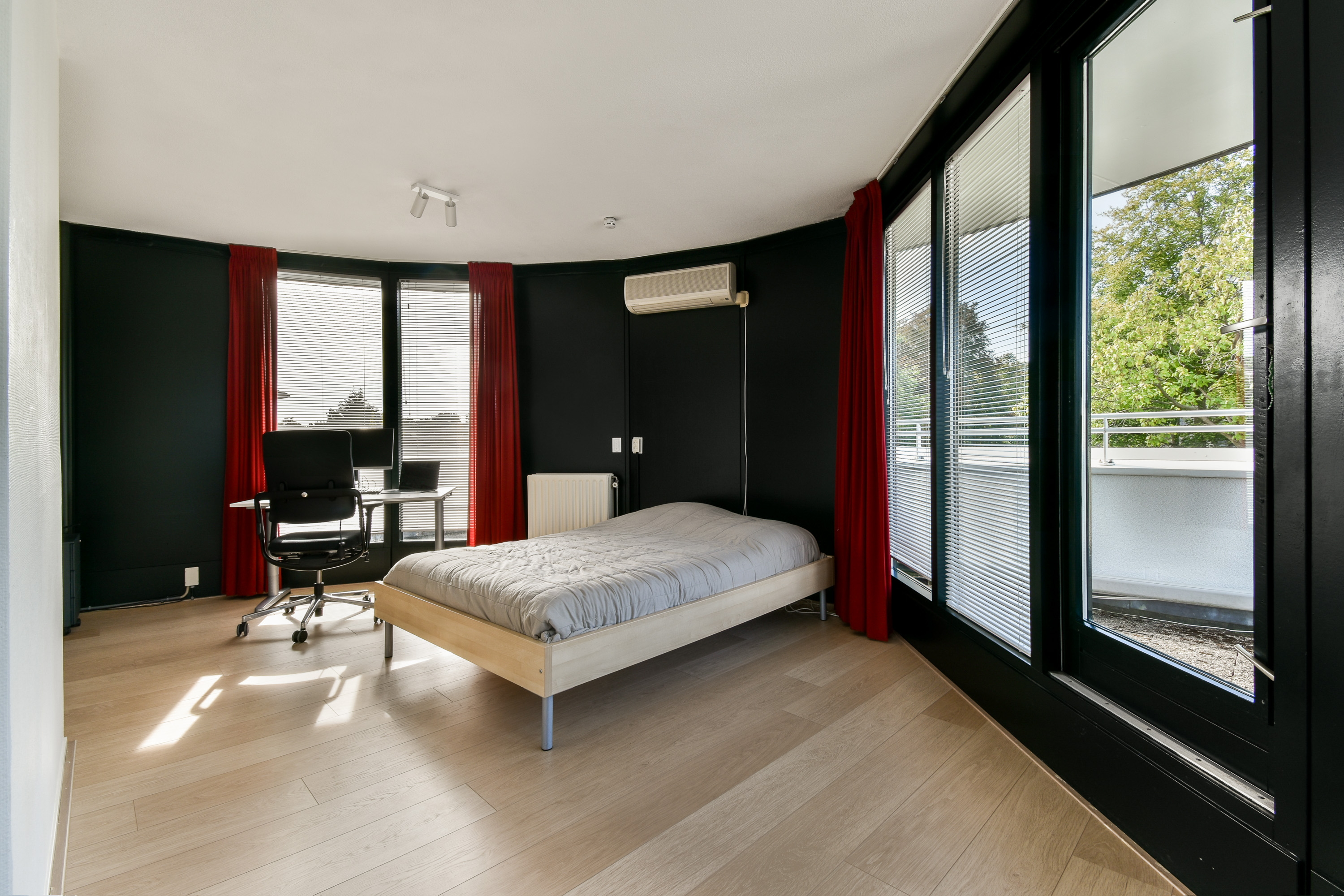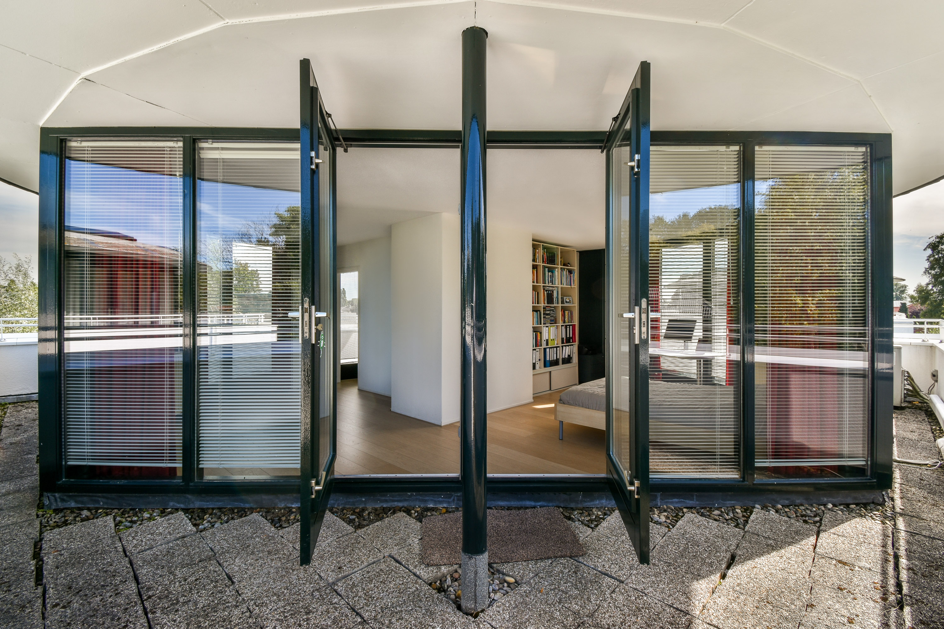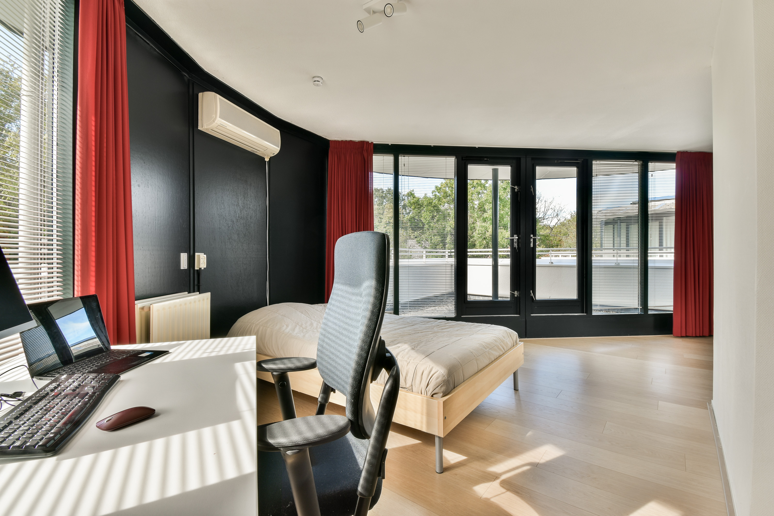 Studio/werkkamer voorzien van openslaande deuren naar het dakterras. De studio is voorzien van airconditioning.