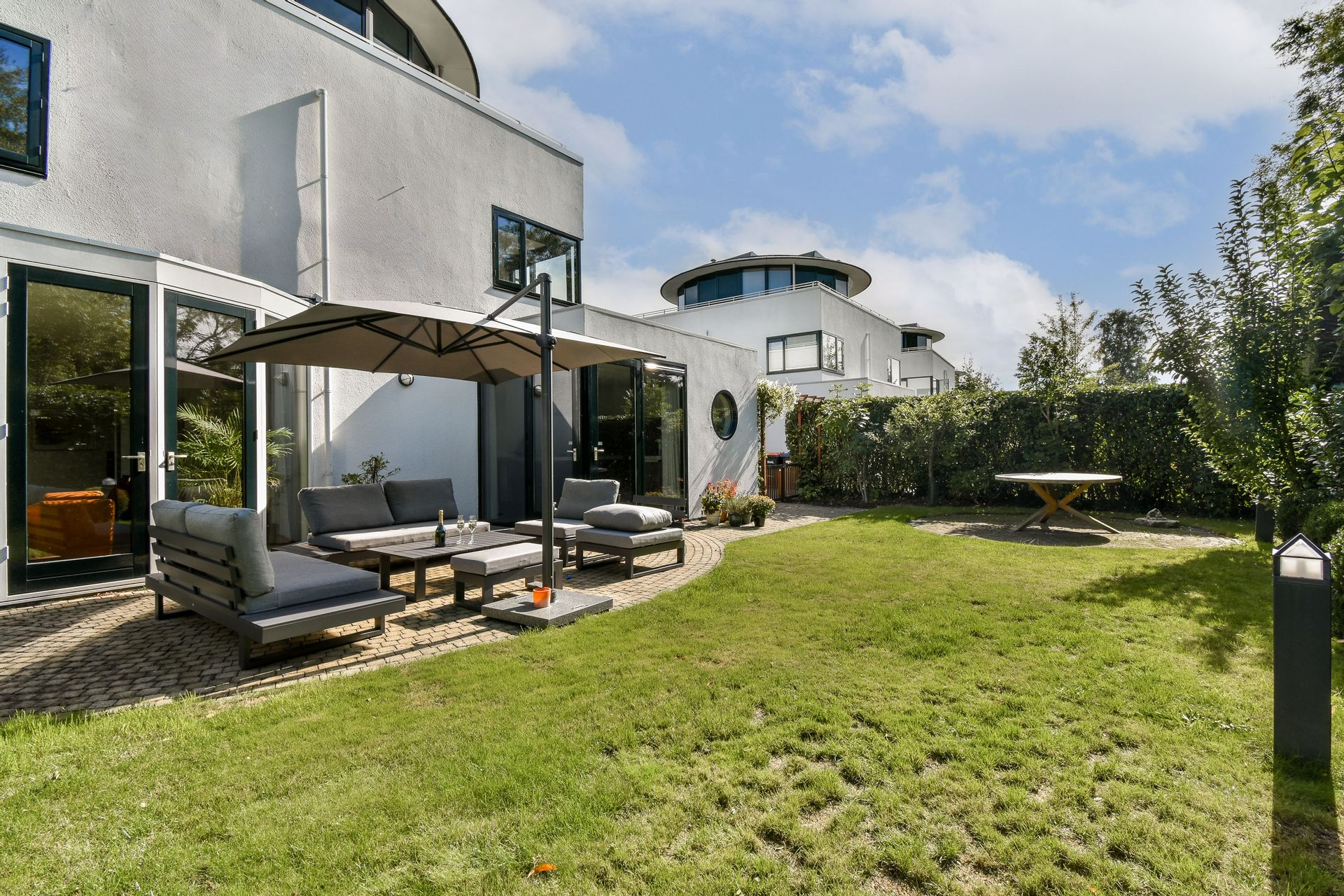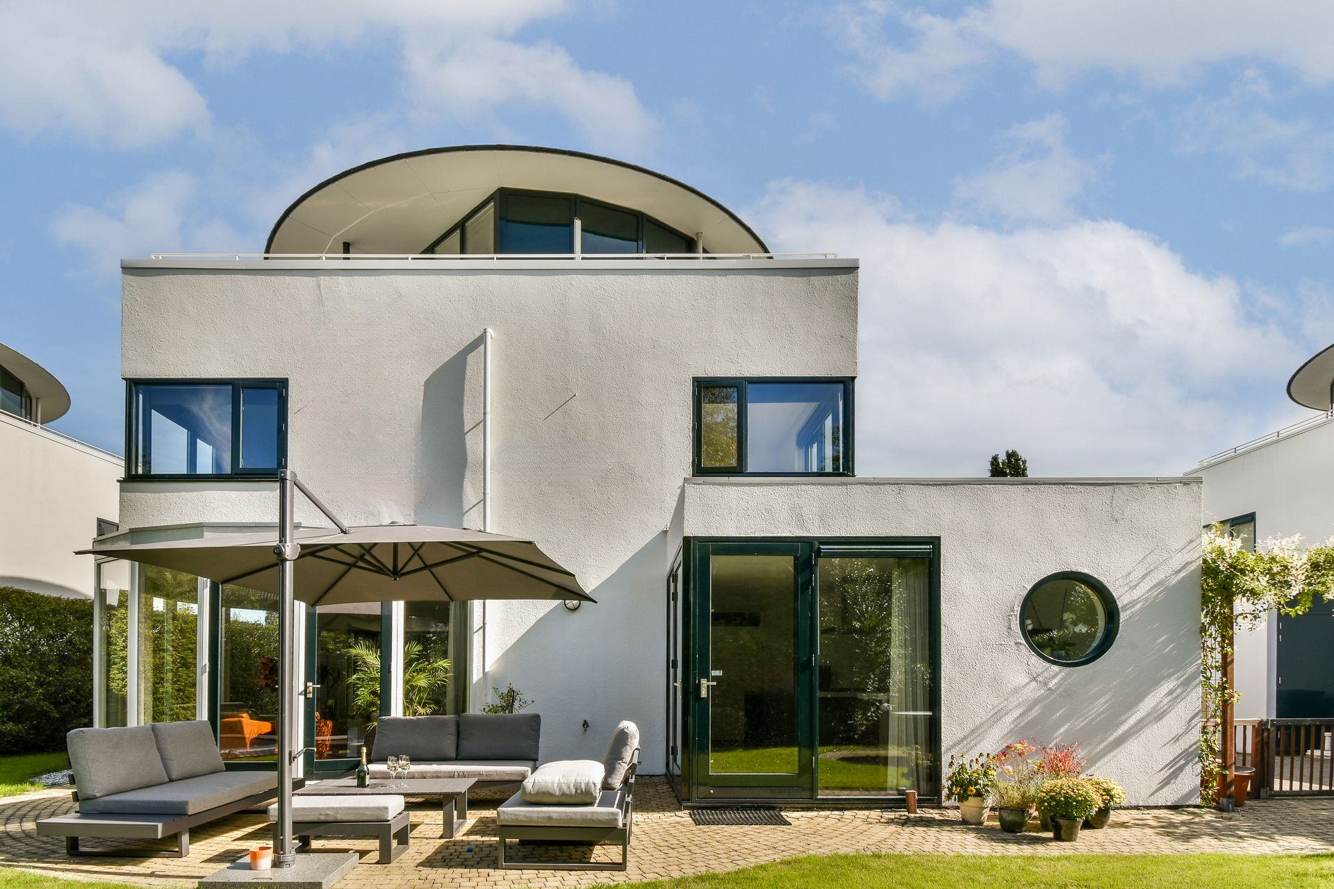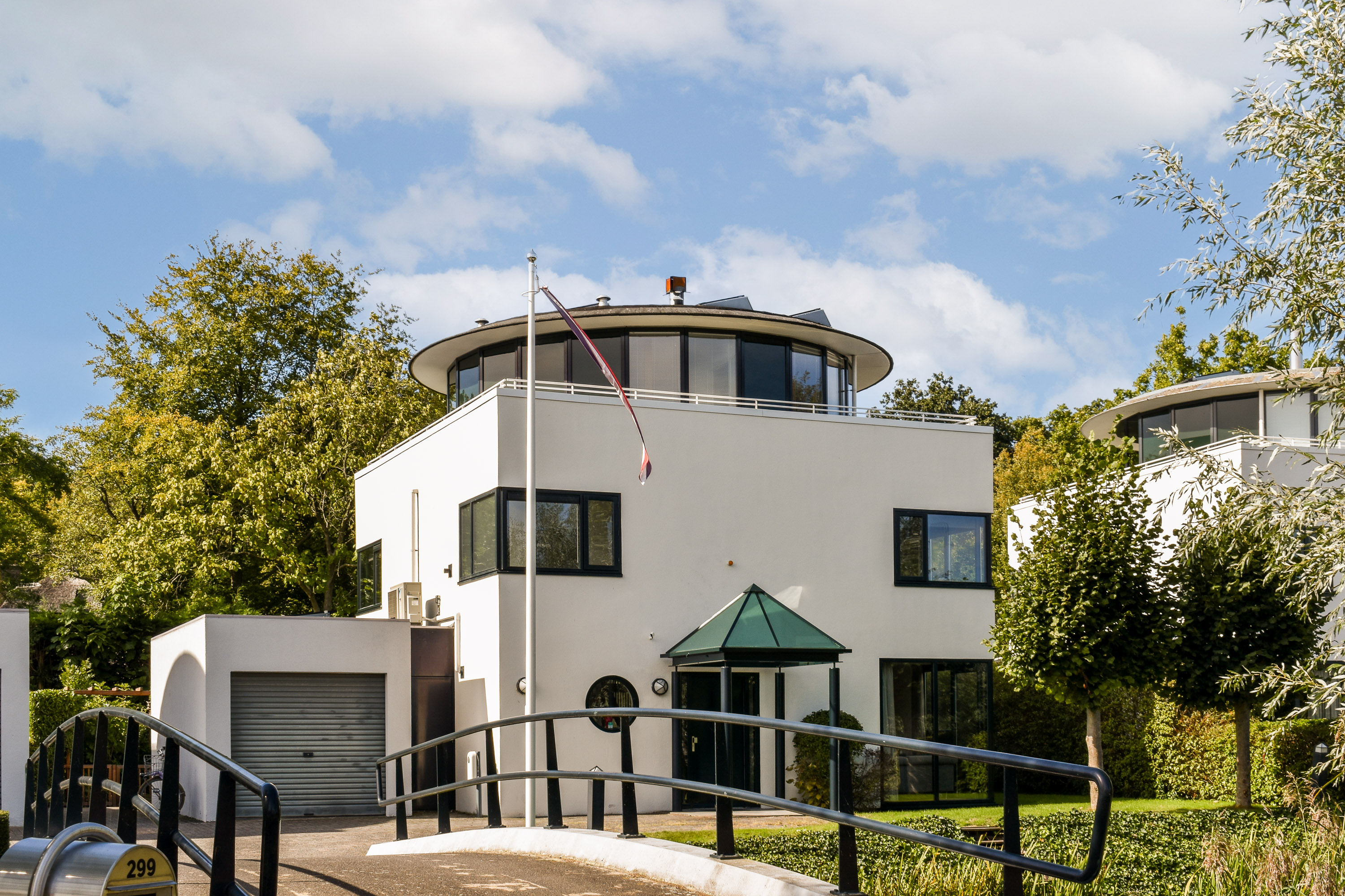 In 1995 is deze, door de bekende architect Cees Dam ontworpen, villa gebouwd en is naast de royale en luxe opzet van de woning te herkennen aan de karakteristieke vormgeving met strakke en ronde vormen. De voorzijde van het perceel grenst aan een ruime waterpartij en is via een met de buren gedeelde brug toegankelijk. De achtertuin is royaal en ligt heerlijk zonnig op het westen.