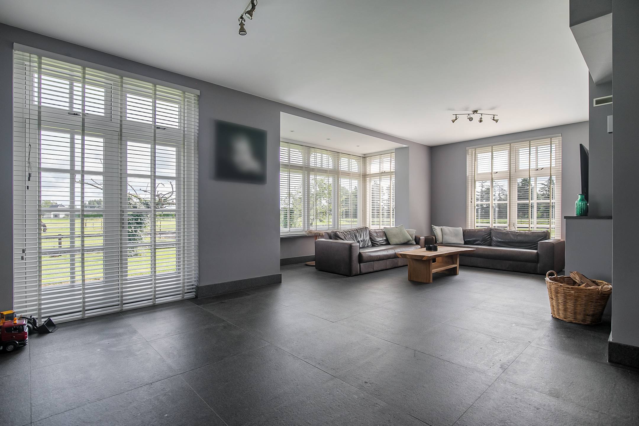 - De raampartijen in het achterhuis zijn voorzien van sfeervolle shutters.