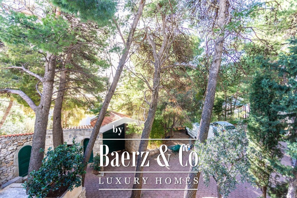 Het lagergelegen deel van het landgoed bevat een extra appartement met eigen keuken, badkamer en terras, evenals aanvullende annexruimten. In de ondergrondse garage is plaats voor twaalf auto's, daarnaast zijn buiten nog vier parkeerplaatsen, ideaal voor het ontvangen van gasten. De villa is volledig omheind voor privacy en biedt panoramisch uitzicht over de Golf van Omis. Toegang tot wandelpaden en de natuur zorgt voor een ongeëvenaard gevoel van rust. Wie op zoek is naar een luxe villa te koop in Dugi Rat, vindt hier een ensemble van ruimtes die gezinsleven en gastvrijheid verrijken.