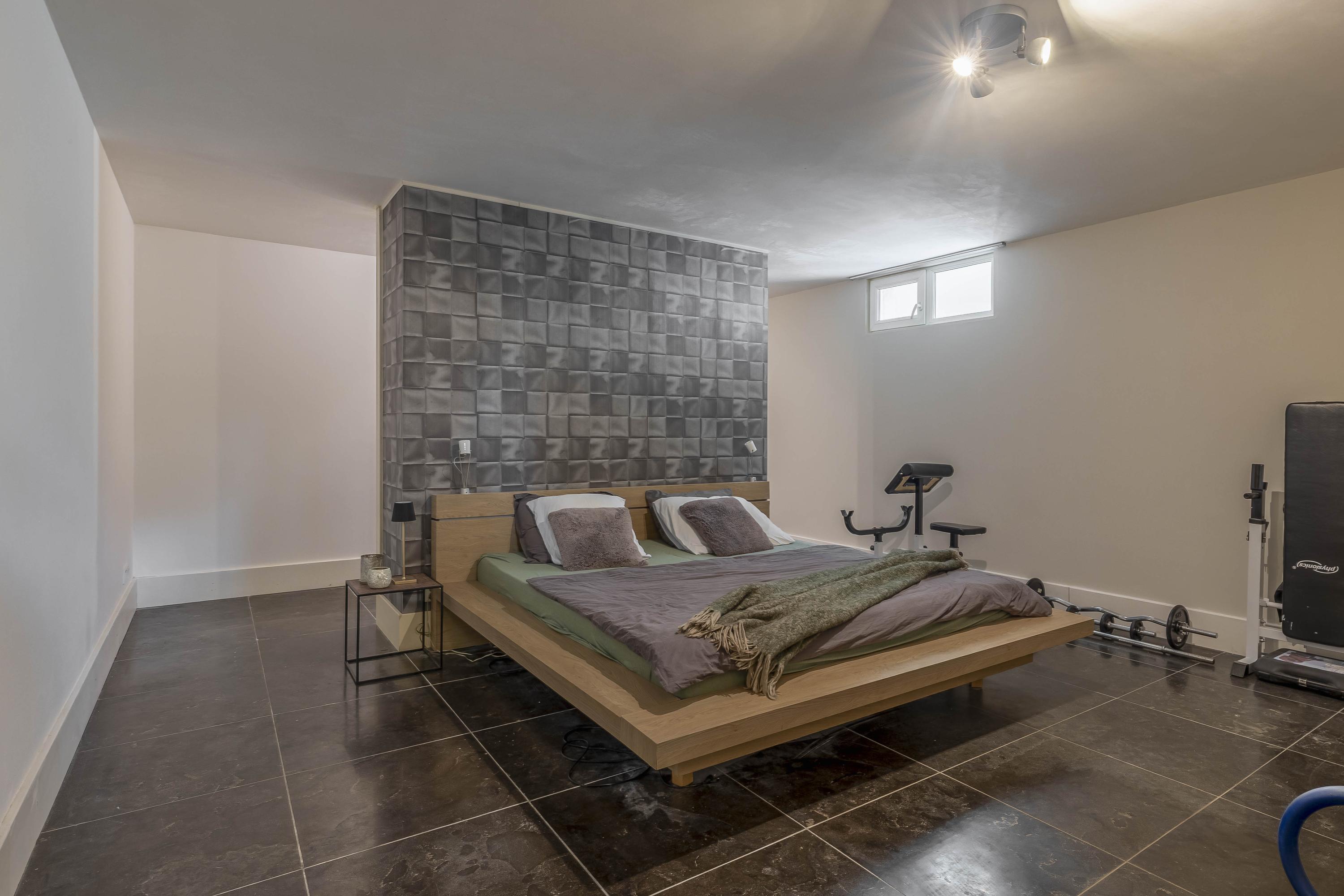 Een afsluitbare deur leidt naar het tweede gedeelte van het souterrain, dat tevens via een vaste trap aan de rechterzijde van de woning bereikbaar is. Dit verrassend ruime en fraai afgewerkte tweede woongedeelte is een volwaardige leefruimte met talloze gebruiksmogelijkheden.