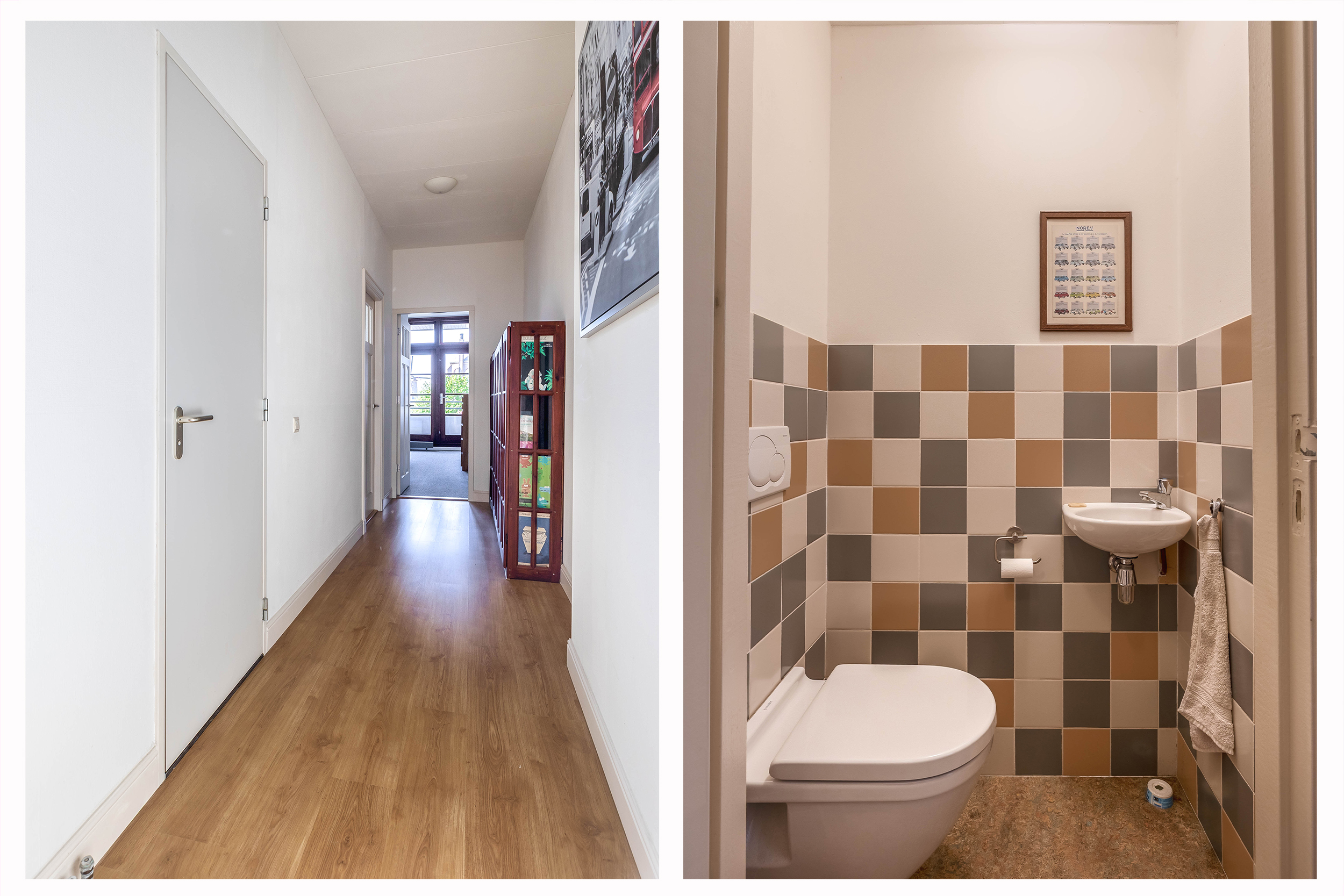 tussenhal met toiletruimte (met zwevend toilet, urinoir en wastafel), inpandige berging, voorkamer met zicht op de Haven en berging (ideaal voor het realiseren van slaapkamer met badkamer).