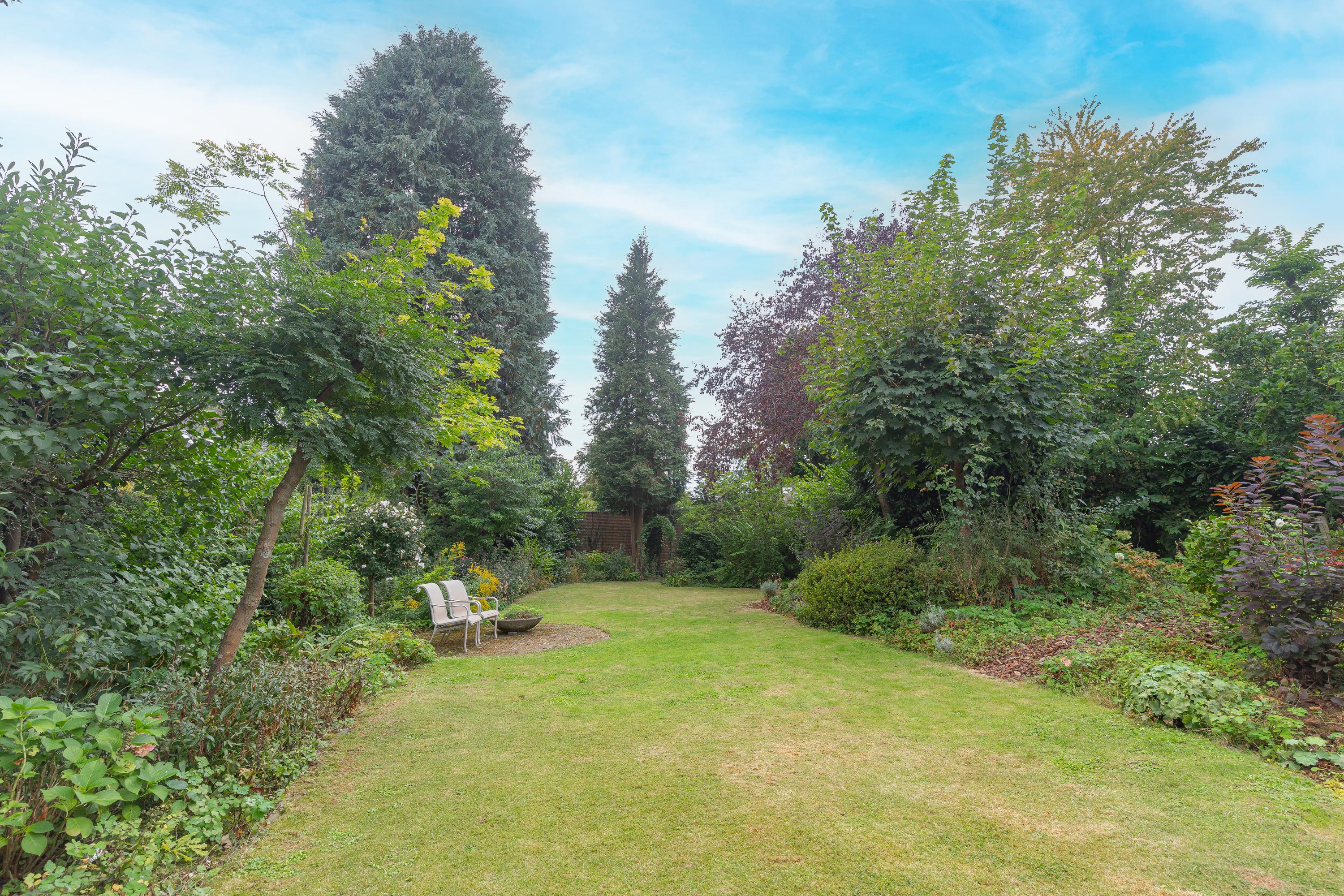 De prachtig aangelegde tuin met zij-ingang en afsluitbaar stalen poort, royale terrassen, een vijver en volledig omsloten voor optimaal tuinplezier.
