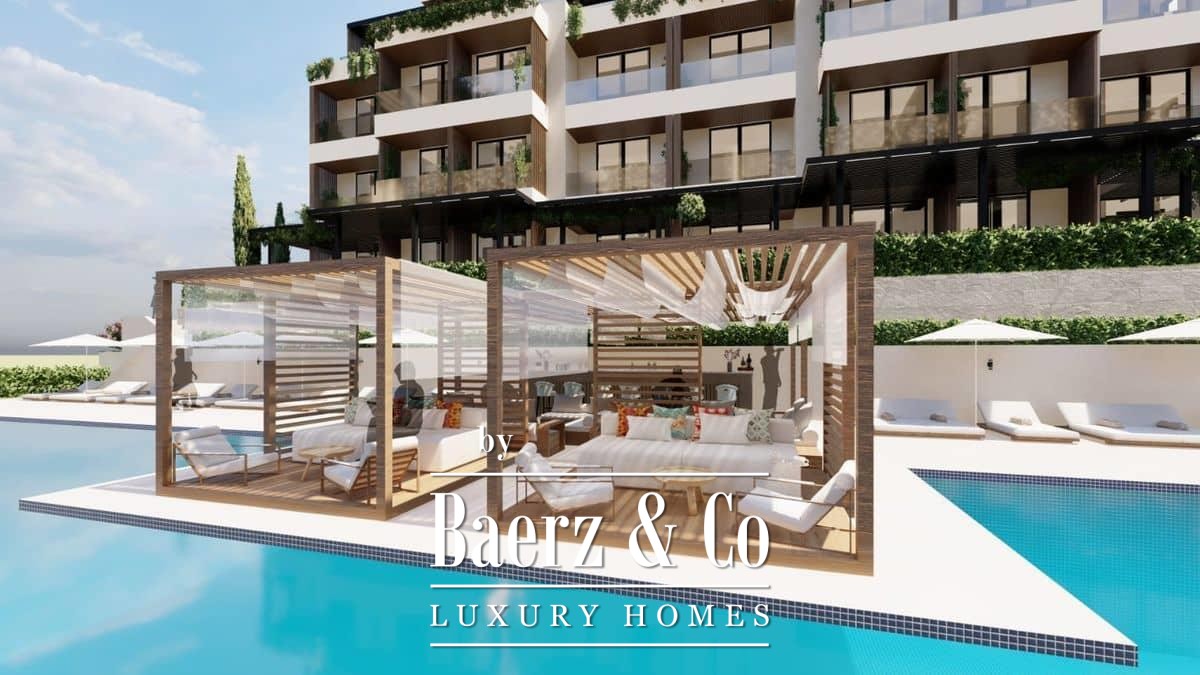 Structure of the apartment: 2 hallways, living room with kitchen and dining table, 3 bedrooms, 3 bathrooms and 3 terraces. The apartment itself has 81,52m2, while its three balconies have 8,33m2, it sums up to the total of 89,85m2. It has a view of the sea and the mountains that surround it. The apartment will be delivered with finished tiles, finished floors, equipped bathroom and equipped air conditioning.