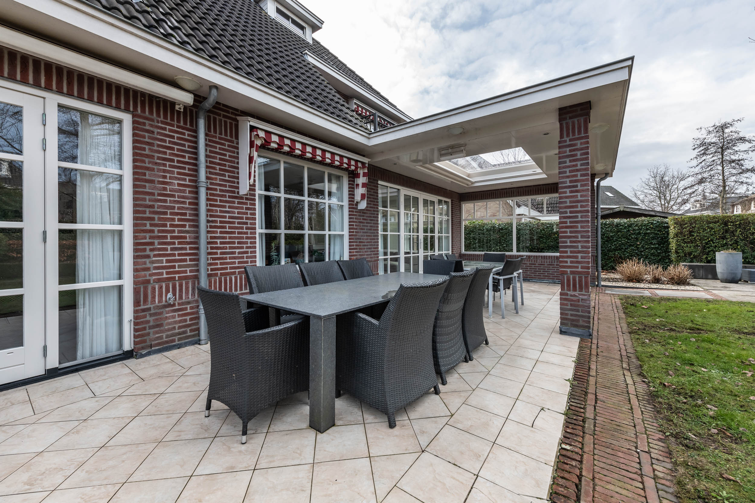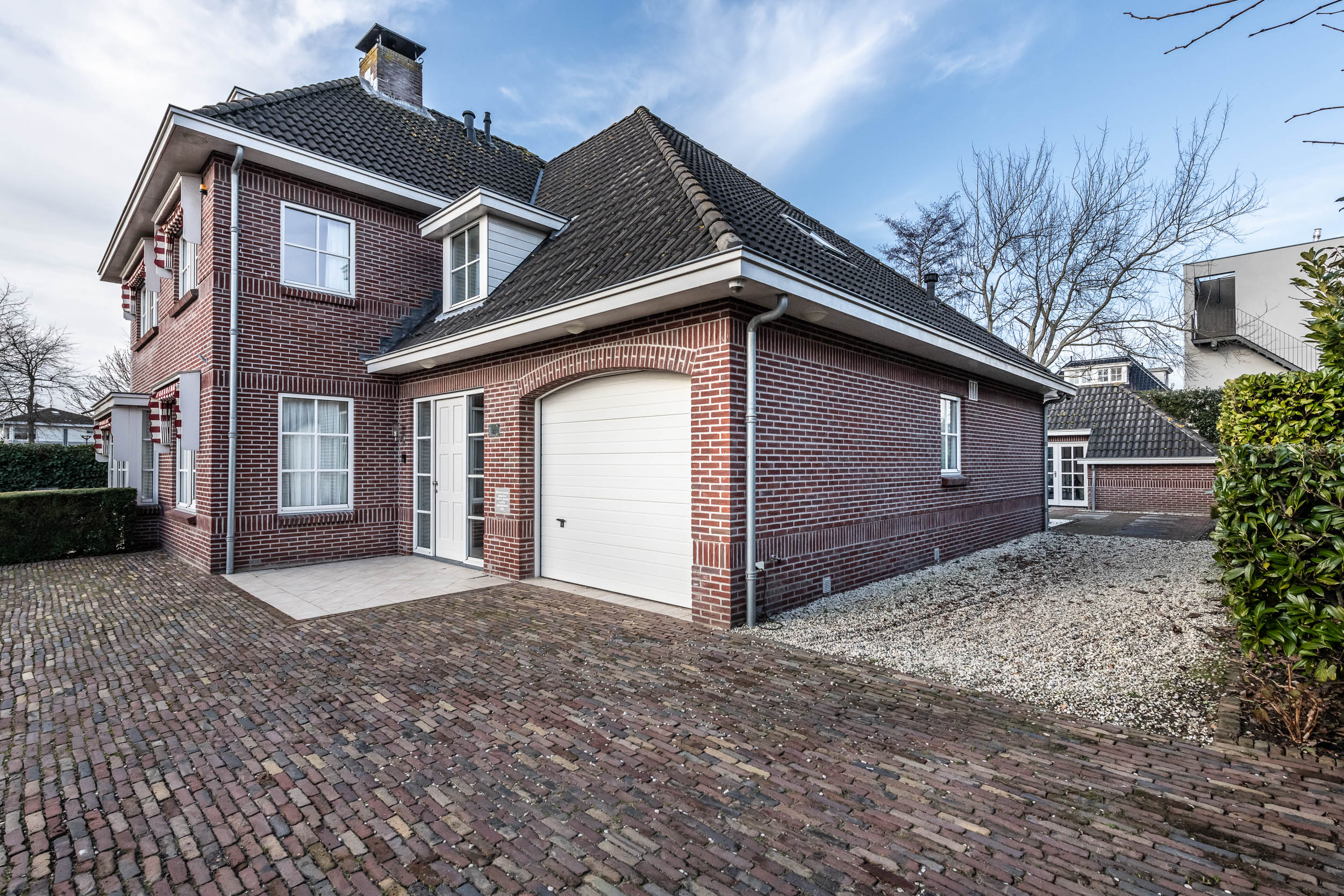 In 2003 is deze bijzondere villa op (traditionele wijze) gebouwd met hoogwaardige materialen. De villa heeft een voortuin met eigen oprit die toegang biedt tot de royale en inpandige garage en aan de achterzijde is een fraai aangelegde achtertuin met diverse terrassen en een deels overdekte veranda met terrasverwarming.