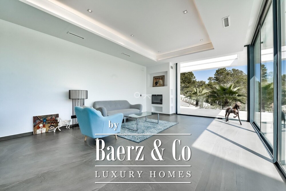 Indrukwekkende moderne luxe villa op een toplocatie met een prachtig uitzicht op de groene heuvels tot aan de zee. Op een heldere dag kan u zelfs Ibiza zien.