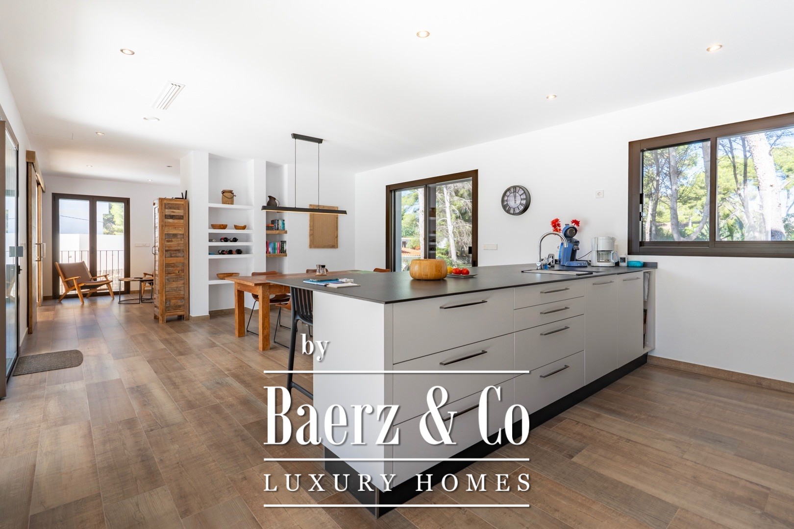 kunt opvangen. Buiten nodigt een ruim overdekt terras uit tot ontspannen momenten aan het prachtige zwembad. Daarnaast is er een verwarmde buitendouche, een tweede overdekt terras en voldoende parkeerruimte voor meerdere voertuigen. Op minder dan drie minuten wandelen bereikt u het idyllische rotsstrandje Cala Blanca en via het kustpad bent u in ongeveer twintig minuten wandelen bij het zandstrand El Arenal, met zijn levendige boulevard vol restaurants, bars en winkels. Met de wagen bereikt u dit strand op minder dan 5 minuten. In de directe omgeving, op slechts enkele minuten te voet, vindt u bovendien diverse restaurants, een apotheek, een tennisclub en een kleine supermarkt. De villa is uitgerust met gekanaliseerde airconditioning (warm/koud), vloerverwarming, een ventilatiesysteem, dubbele beglazing, elektrische rolluiken en fotovoltaïsche zonnepanelen. Het is de ideale villa voor wie op zoek is naar luxe en comfort op een steenworp afstand van het strand!