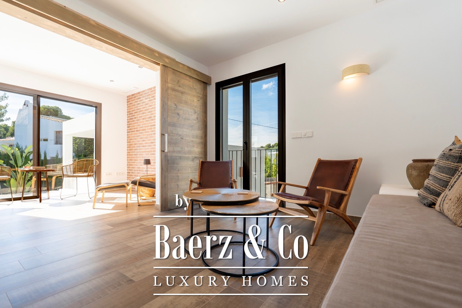 Droomt u ervan wakker te worden met het geluid van de golven van de Middellandse Zee, het zachte zeebriesje te voelen en binnen 3 minuten te voet op een idyllisch strand te staan? Dan is deze villa precies wat u zoekt. Deze moderne, recent gebouwde woning bevindt zich in een eigentijdse villawijk, direct achter het charmante rotsstrandje Cala Blanca. De villa is verdeeld over twee verdiepingen en geniet van een zuidelijke oriëntatie. Het hart van de woning is de lichte inkomhal waar zich ook de trap en een handige wasruimte bevinden. Vanuit de hal komt u in de ruime woon-/eetkamer met een volledig uitgeruste open keuken met kookeiland. Aan de andere kant van de hal bevinden zich de hoofdslaapkamer met en-suite badkamer en een tweede slaapkamer met aparte badkamer. De bovenverdieping biedt een royale tweepersoonsslaapkamer met en-suite badkamer en privé terras. Vanaf dit terras is er toegang tot een groot dakterras vanwaar u tussen de bomen door een glimp van de zee