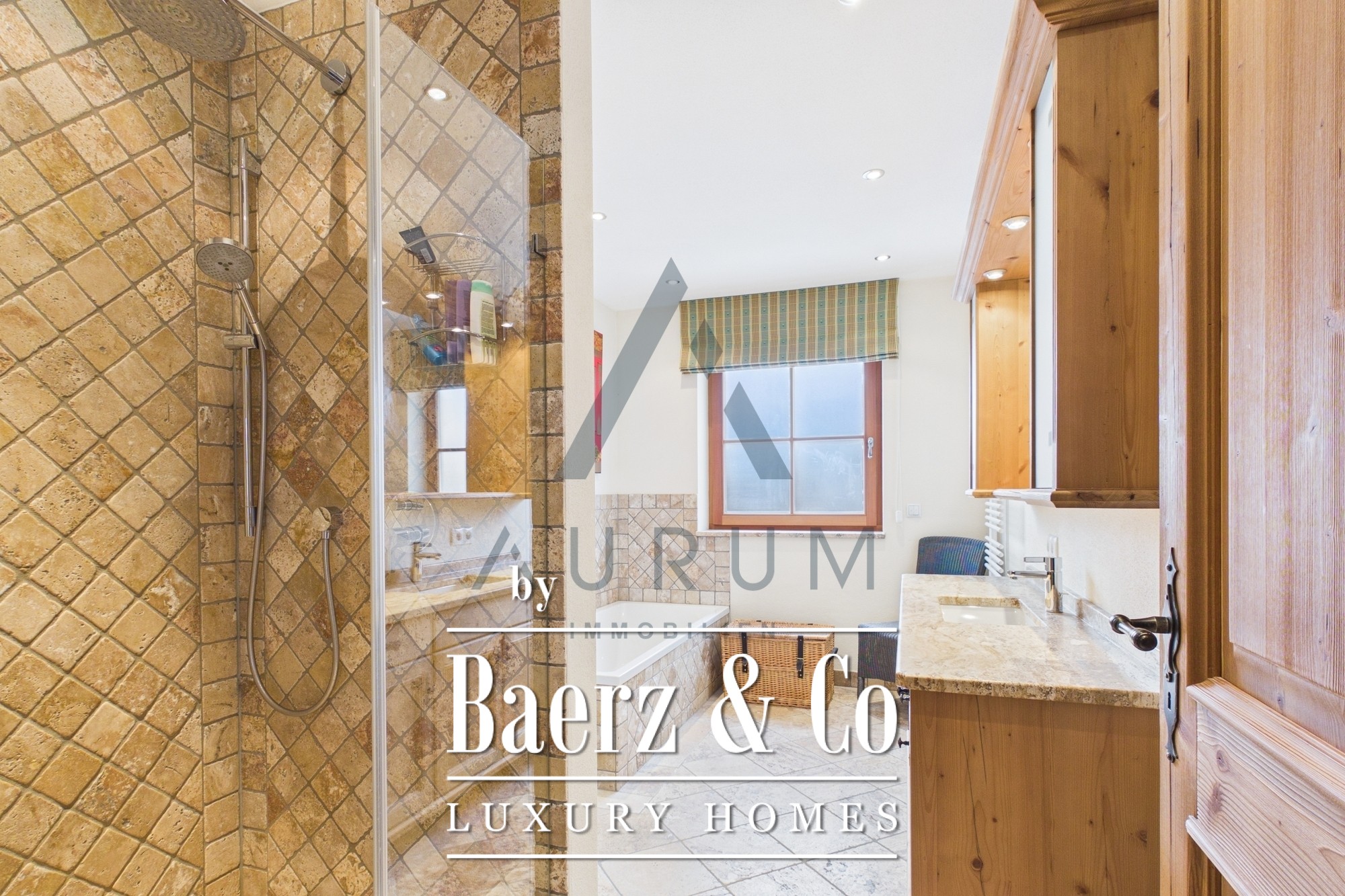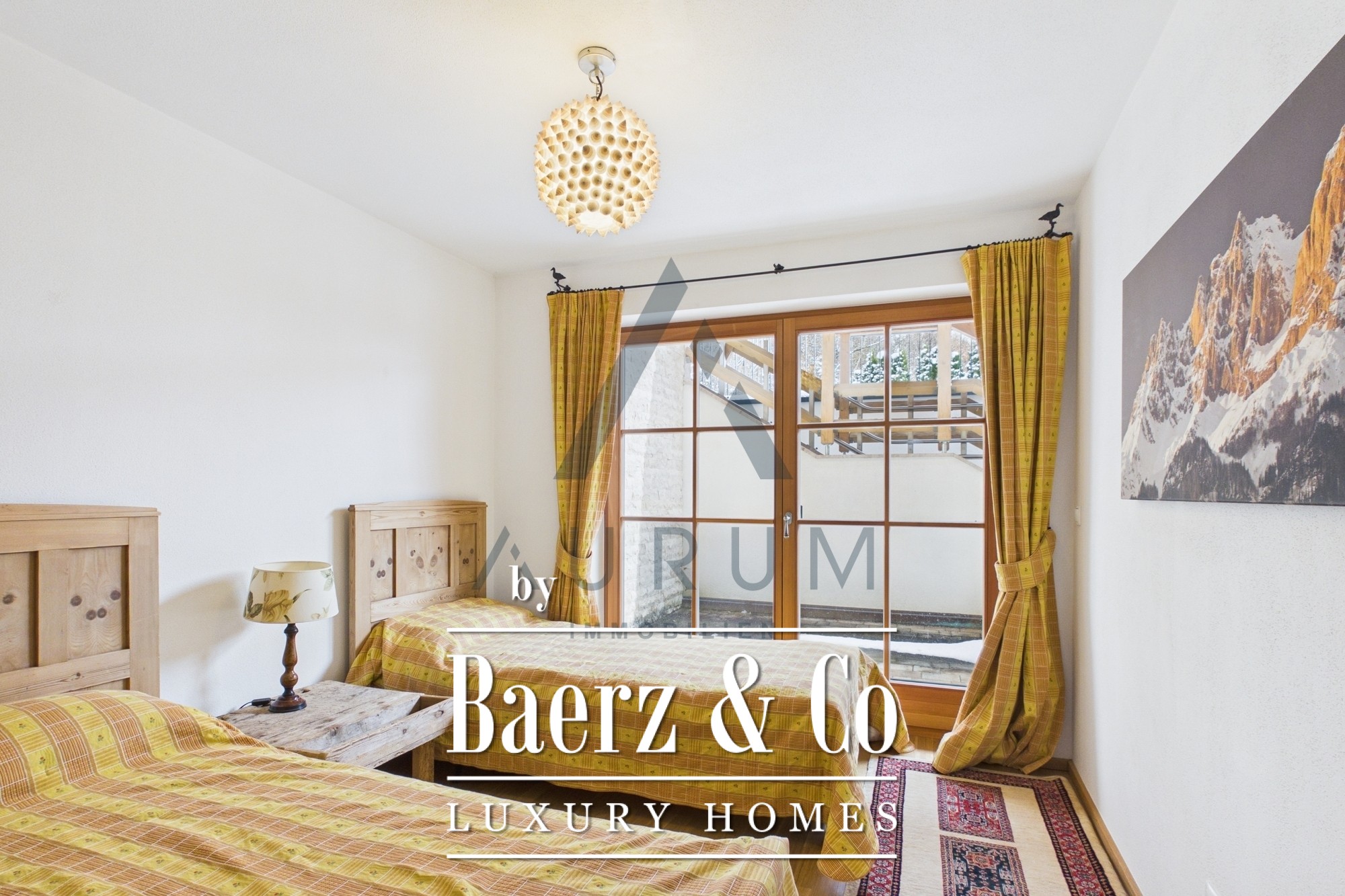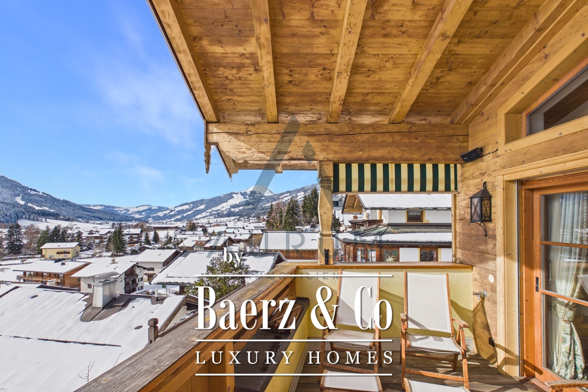 Penthouse maisonette in Kirchberg in Tirol is een zeldzaam alpine woonhuis, met 197 m² zorgvuldig ingedeelde leefruimte verdeeld over drie verdiepingen, discreet gelegen op een zonrijke plek net boven het dorpscentrum. Deze penthouse maisonette verwelkomt u met een traditioneel geïnspireerd, lichtovergoten bovenverdieping. De woon- en eetkamer, geaccentueerd door antieke houten balken en een open haard, loopt over in een landelijke keuken en een balkon dat een panoramisch uitzicht biedt op de Großer Rettenstein en het Brixental. Vloer-tot-plafond ramen laten het alpenlicht centraal staan, terwijl vloerverwarming en massief houten vloeren zorgen voor een sfeer van duurzame warmte.