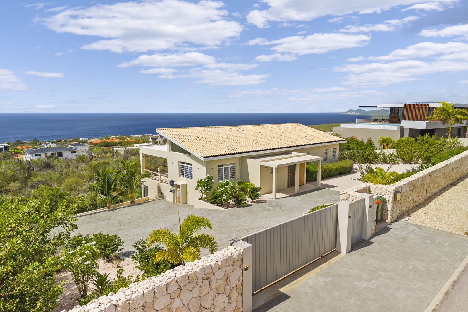 Met geen bebouwing achter de woning en een weids, panoramisch uitzicht over de Caribische Zee biedt deze villa een uitzonderlijk gevoel van privacy en rust. De horizon is hier geen detail, maar een blijvende waarde.